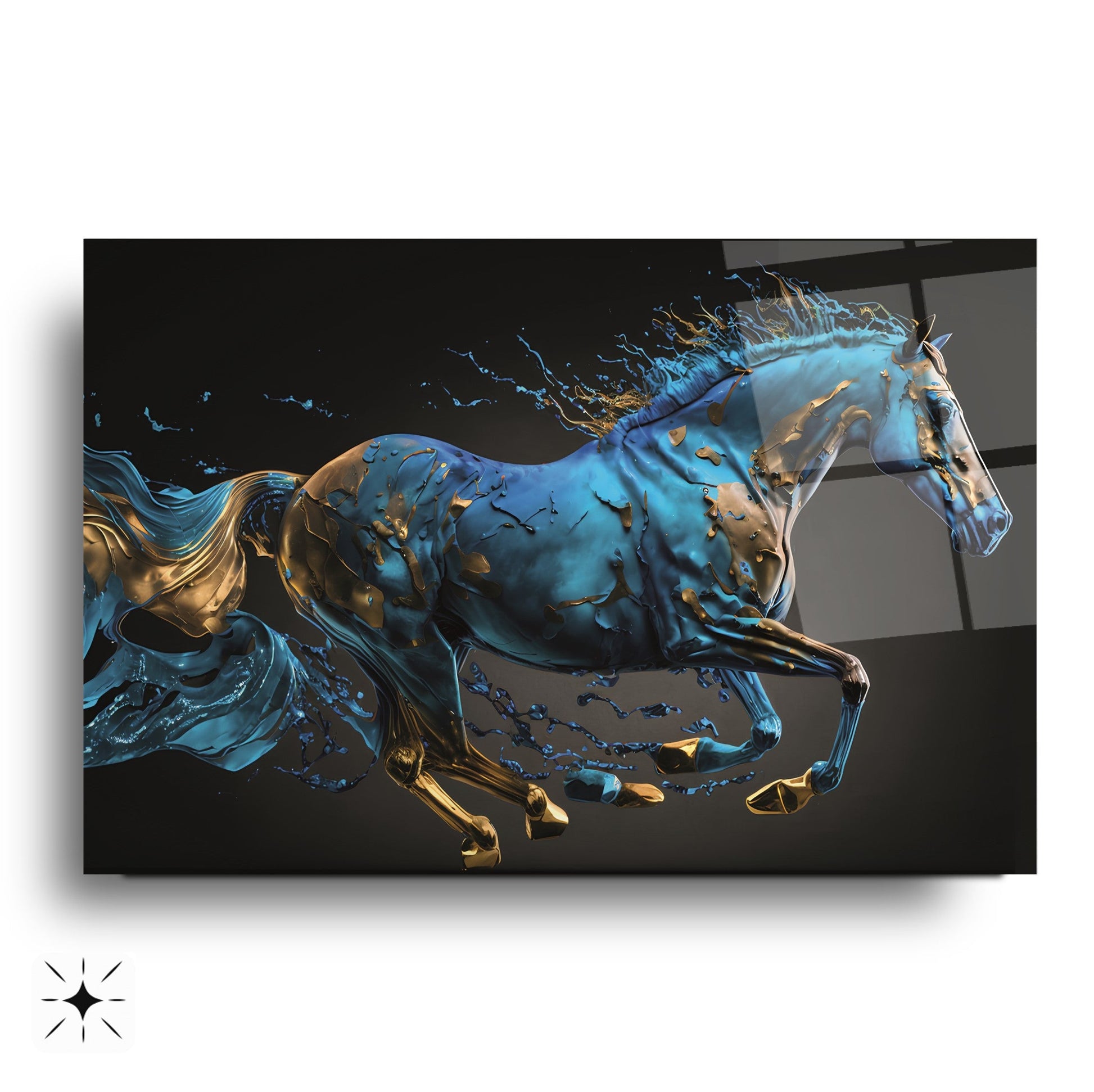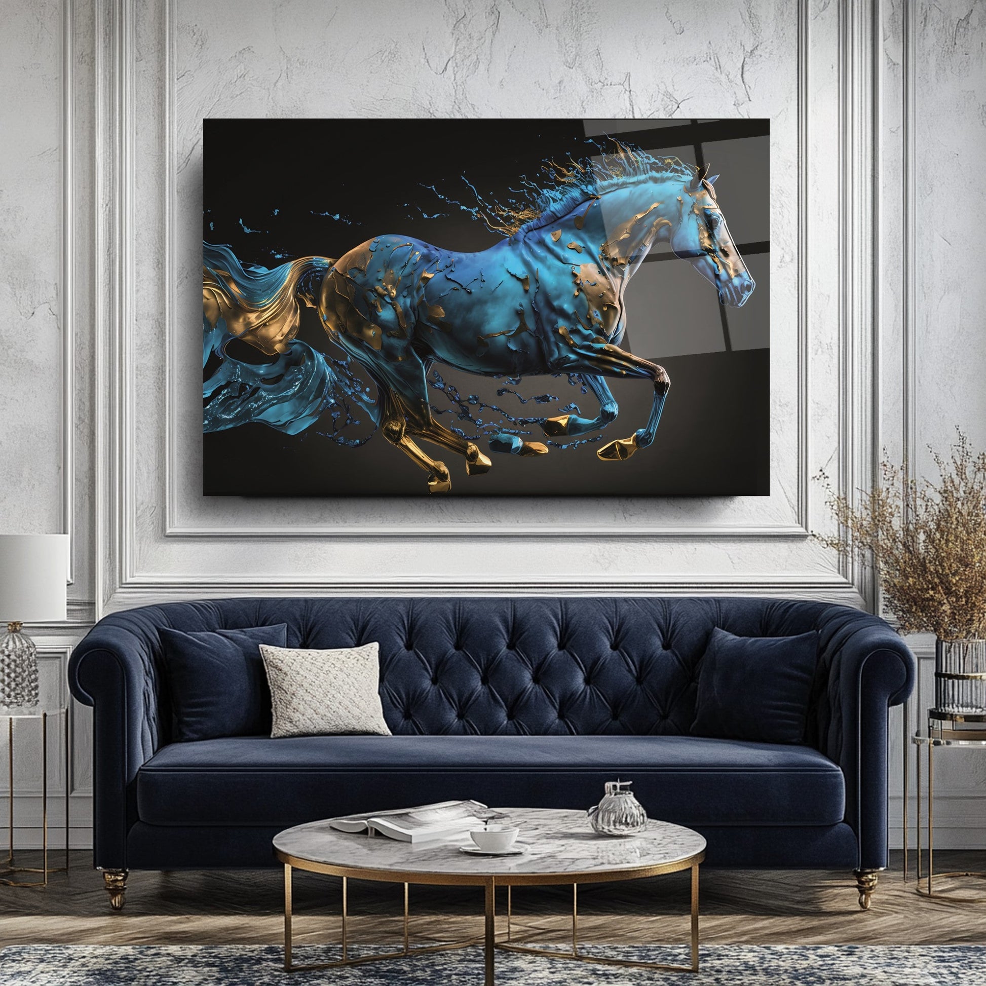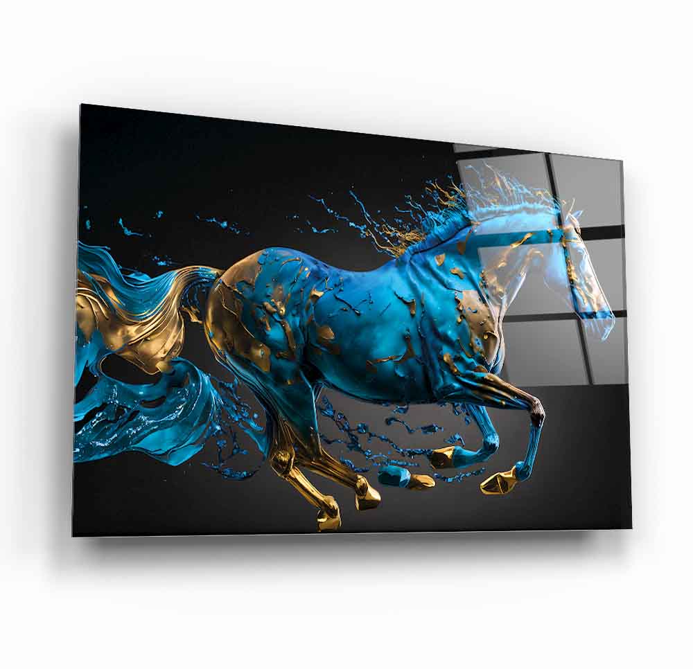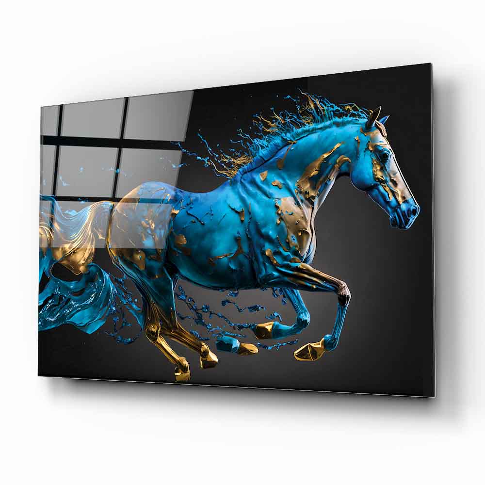 Asaletin ve Lüksün Yeni Rengi: Mavi Gold At Modern Kırılmaz Cam Tablo
