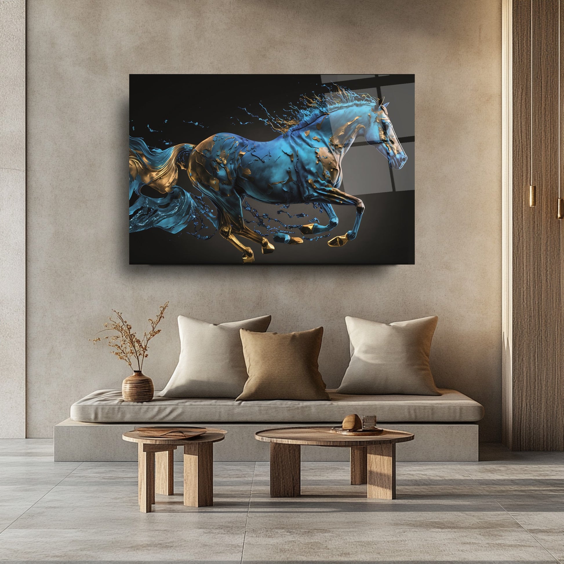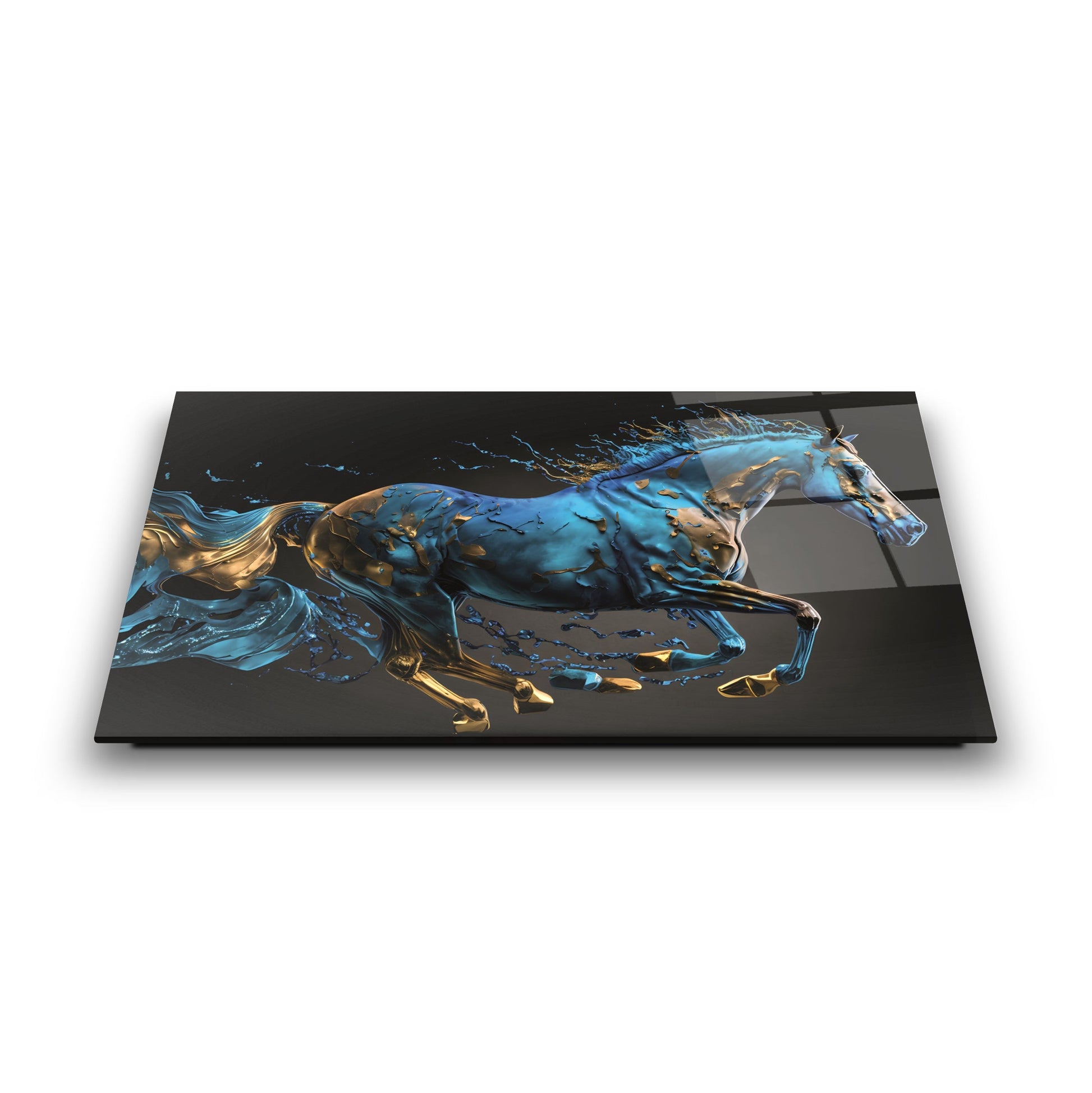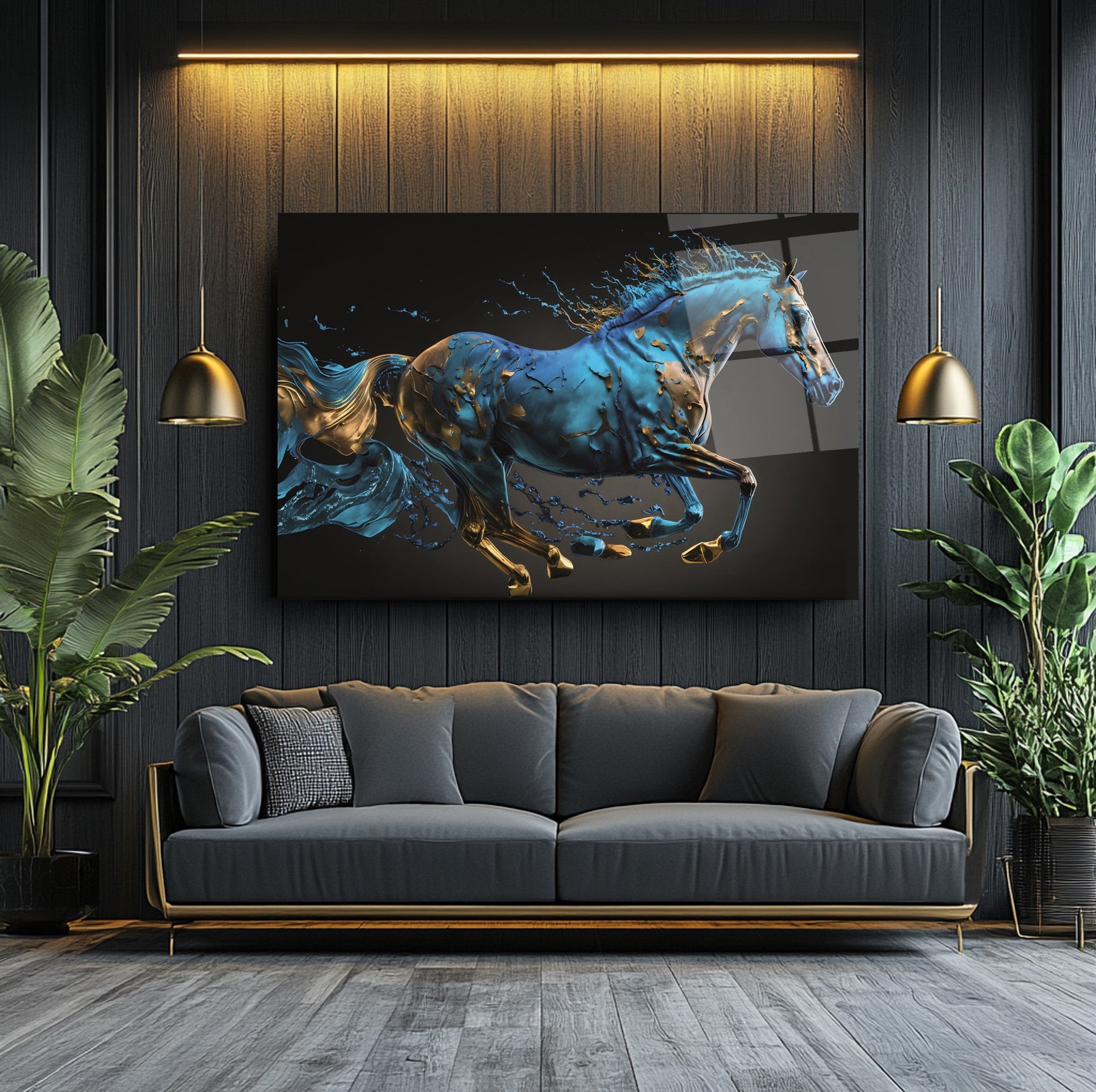 Asaletin ve Lüksün Yeni Rengi: Mavi Gold At Modern Kırılmaz Cam Tablo