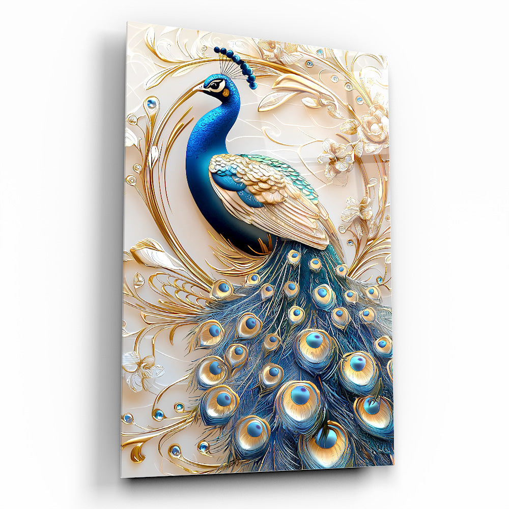 Mekanlarınıza Göz Kamaştıran Bir Zarafet: Mavi Gold Detaylı Tavus Kuşu Cam Tablo