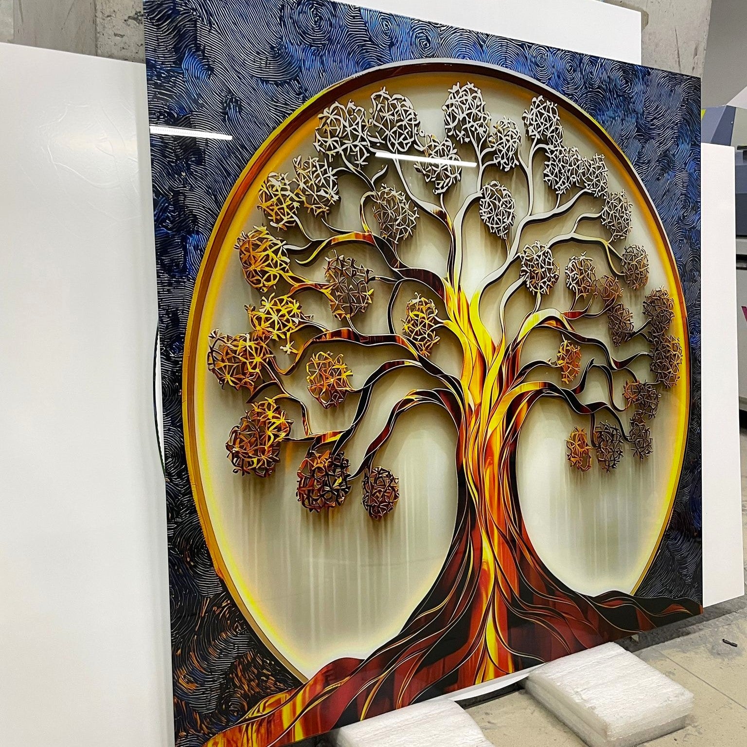 Gold detaylarla zenginleştirilmiş mavi tonlardaki hayat ağacı tasarımı, mekânlara derin anlam ve estetik katıyor. CamDeko kalitesiyle kırılmaz temperli cam üzerine UV baskı teknolojisiyle hazırlanan 3D kabartmalı bu cam tablo, yaşam alanlarınıza sofistike ve huzurlu bir atmosfer sunar. Evlerden ofislere, çalışma alanlarından özel mekanlara kadar geniş kullanım alanı bulunan ürün, dayanıklı yapısıyla uzun yıllar boyunca ilk günkü canlılığını ve kalitesini korur. Hem anlam hem de şıklık arayanlar için ideal bir dekorasyon seçeneğidir.
