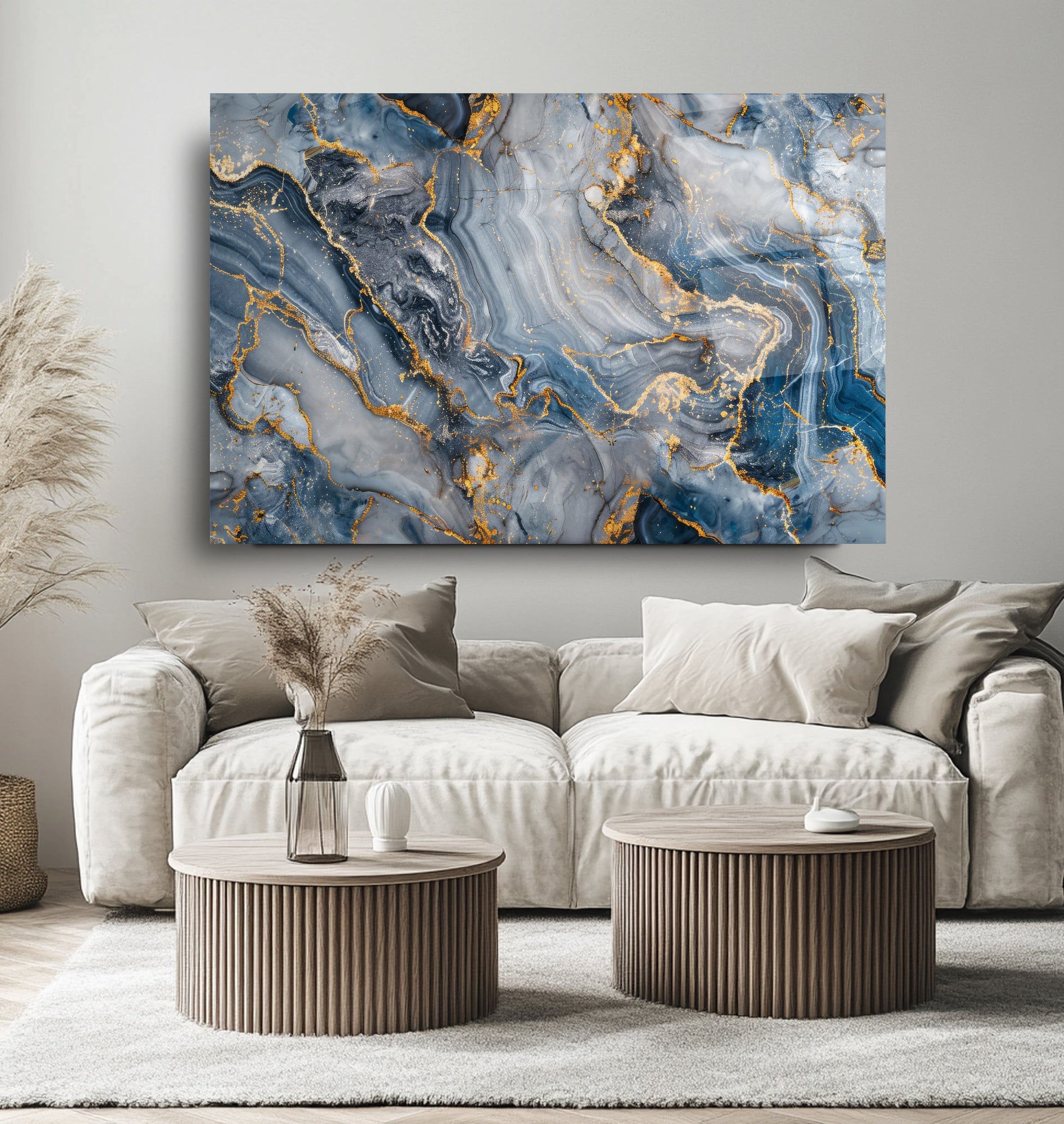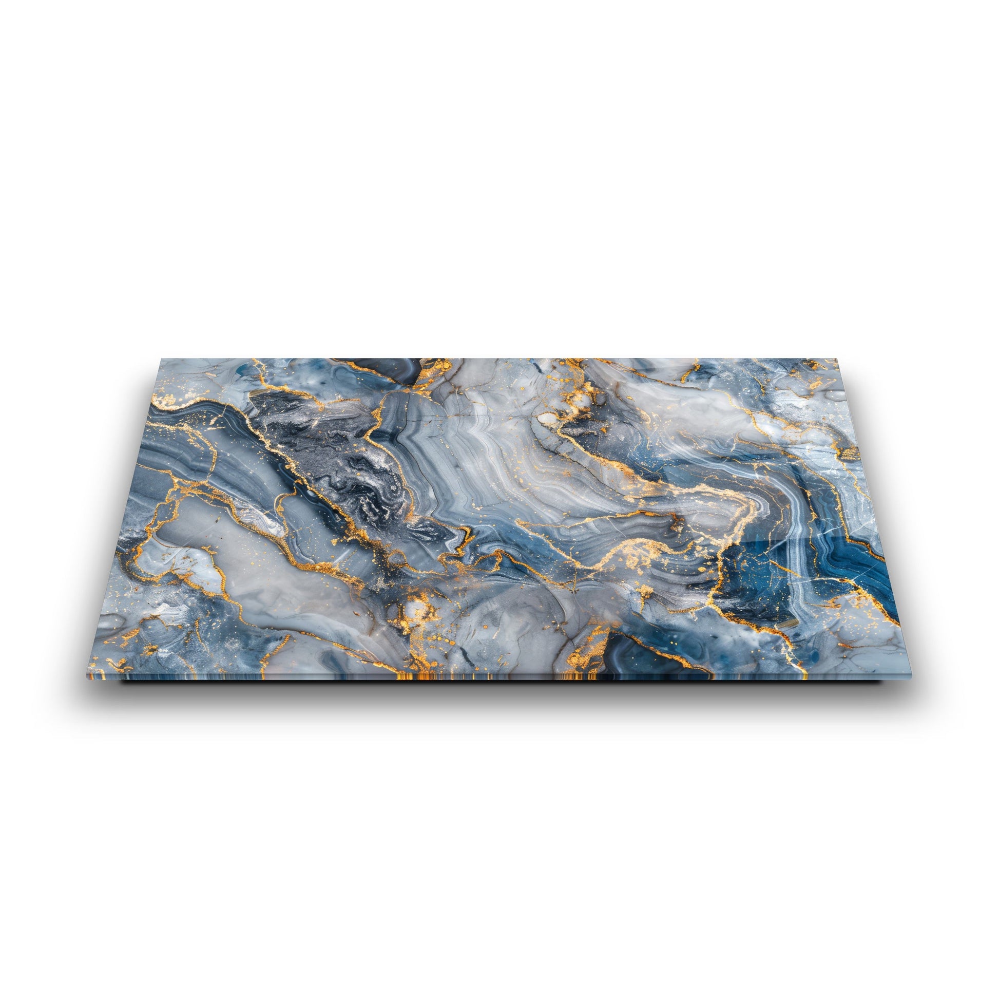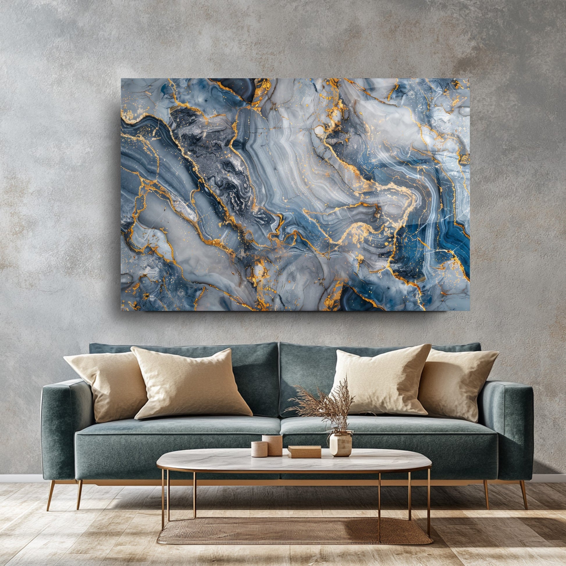 Camdeko’nun Mavi‑Gold Mermer Soyut Cam Tablo, mermer dokusunun derin mavileriyle altın detayların zarif uyumunu evinize taşıyor. Kare formdaki minimal tasarım, salon, yatak odası ya da ofiste etkileyici bir odak noktası oluşturur. UV baskı teknolojisi sayesinde her ton canlı, her detay net; kırılmaz temperli cam yapısı ise dayanıklılık sunar. Modern iç mekanlara şıklık katmak isteyenler için kolay montaj ve uzun ömürlü kullanım özellikleriyle ideal bir tercihtir.