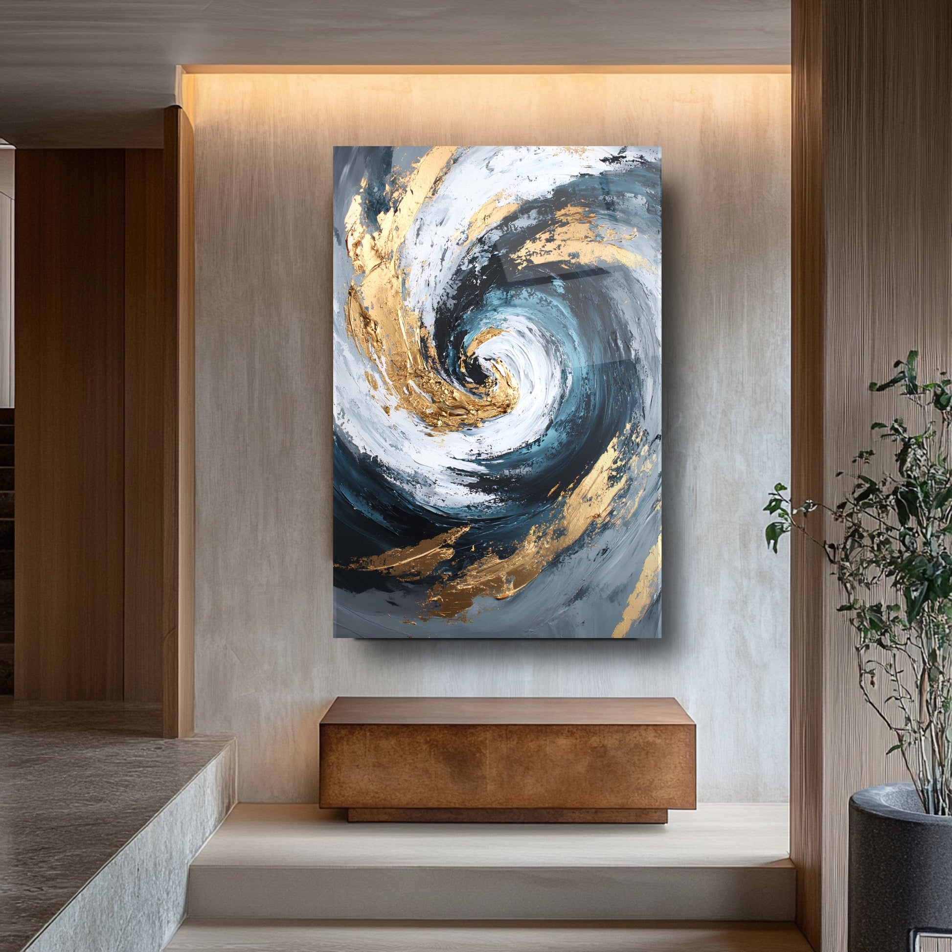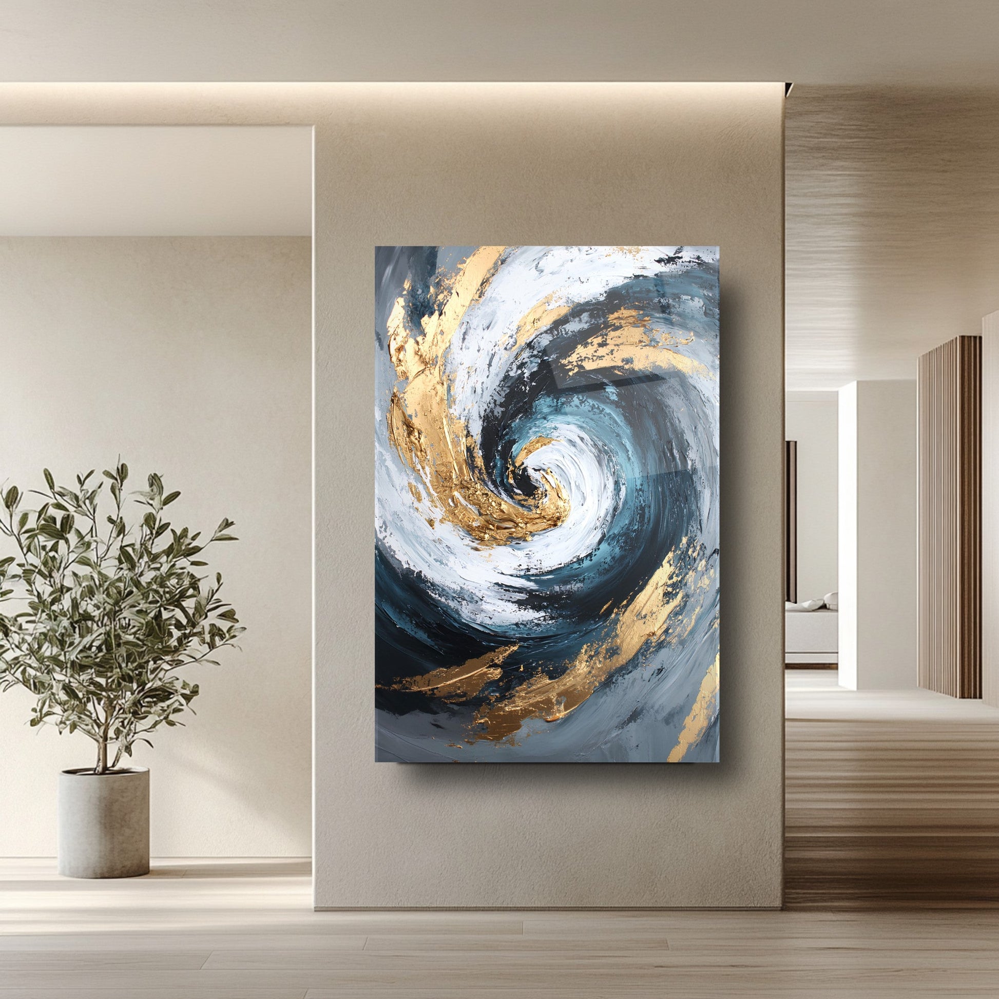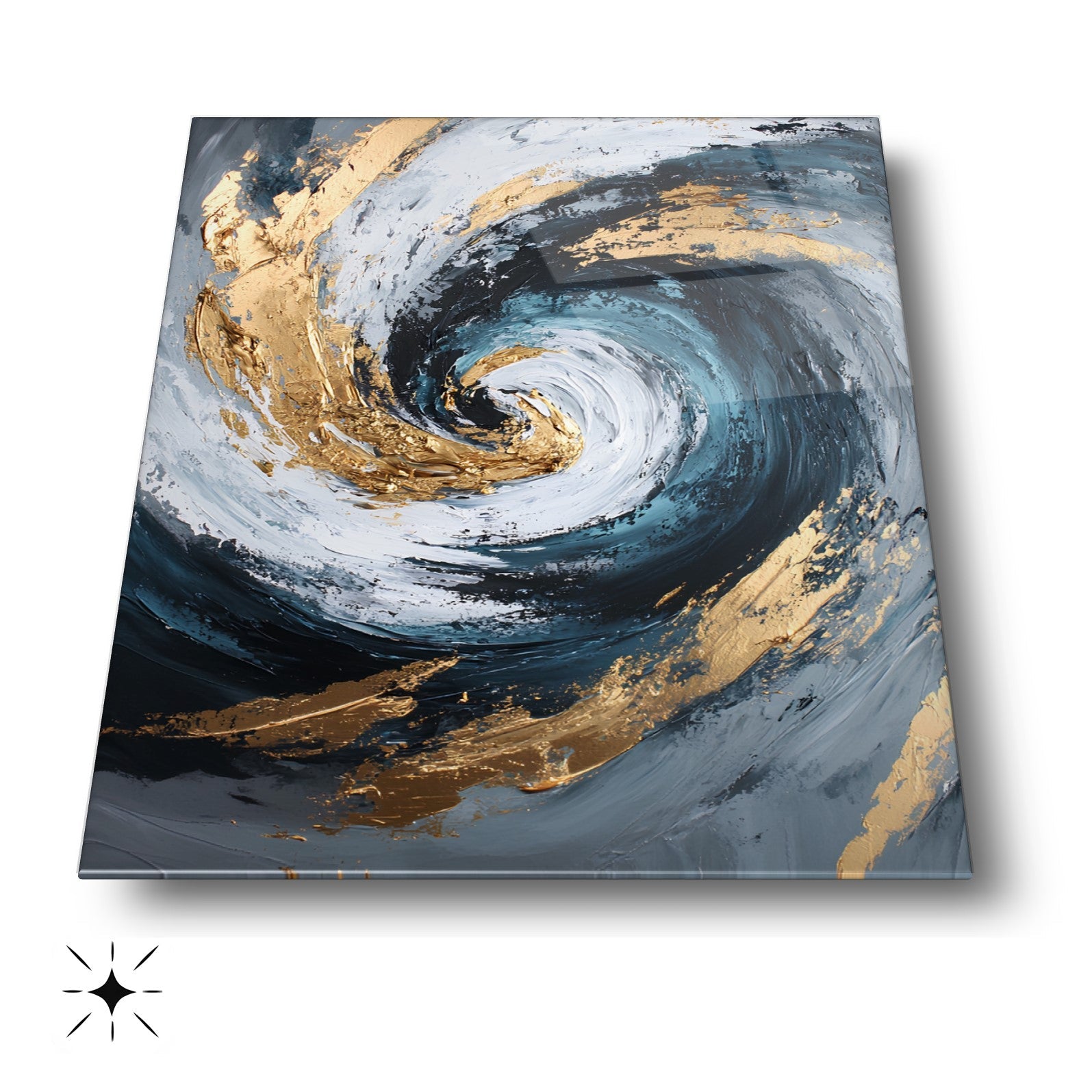 Evinize veya ofisinize modern bir dokunuş katacak bu kırılmaz cam tablo, dayanıklı temperli camdan üretilmiş gerçek bir cam tablodur. Mavi, gold ve siyah renklerin kabartma desenlerle birleştiği soyut tasarım, şıklığı ve estetiği mekanlarınıza taşır. Uzun ömürlü ve kaliteli yapısıyla salon ve çalışma alanlarında mükemmel dekorasyon seçeneğidir.