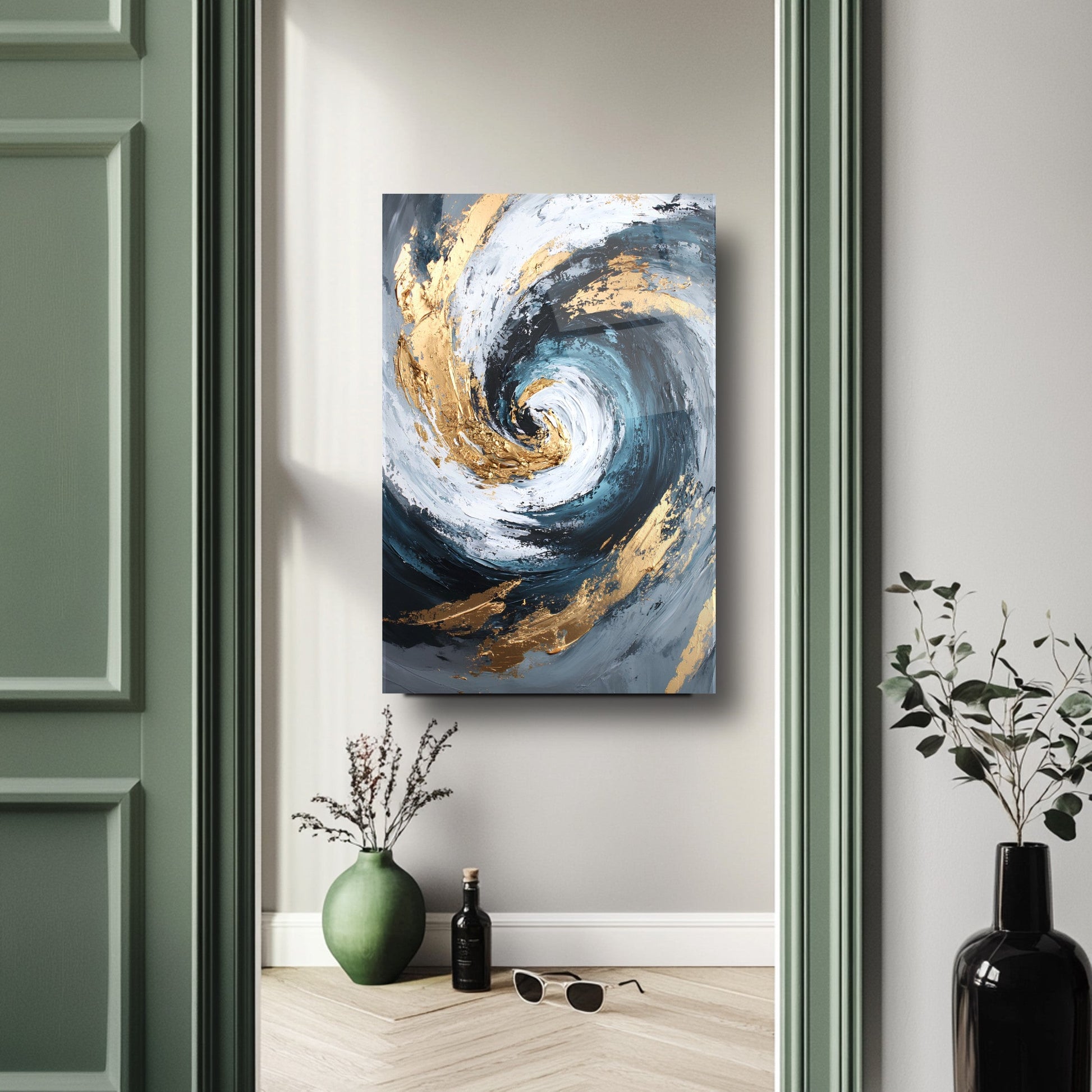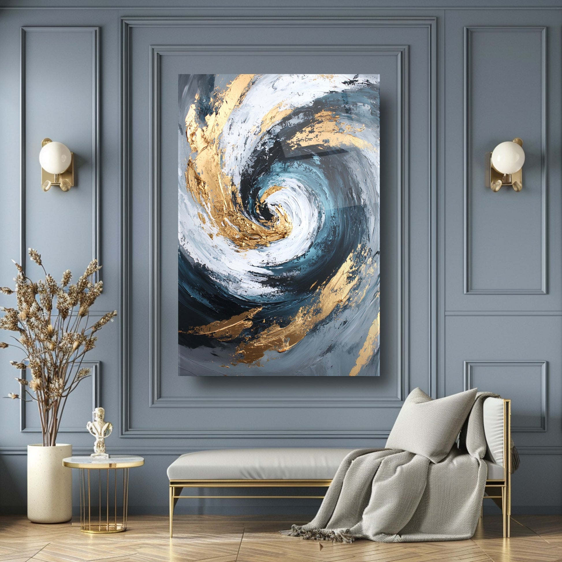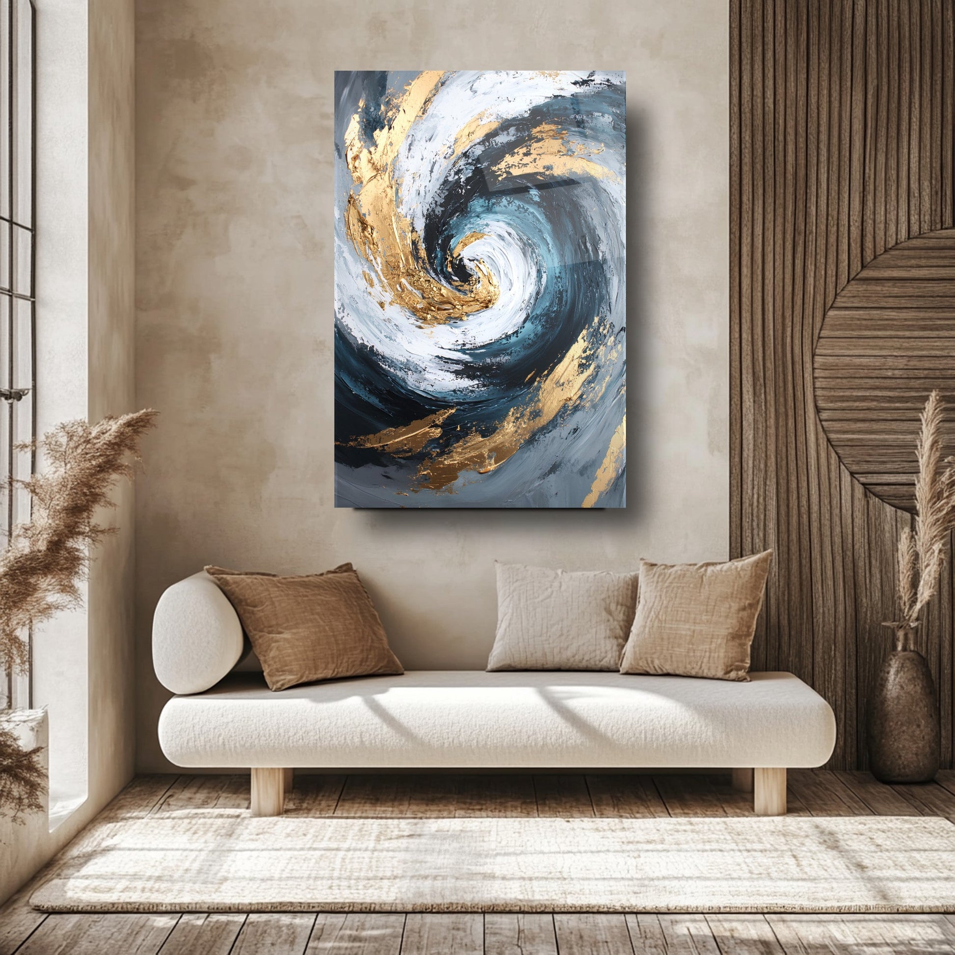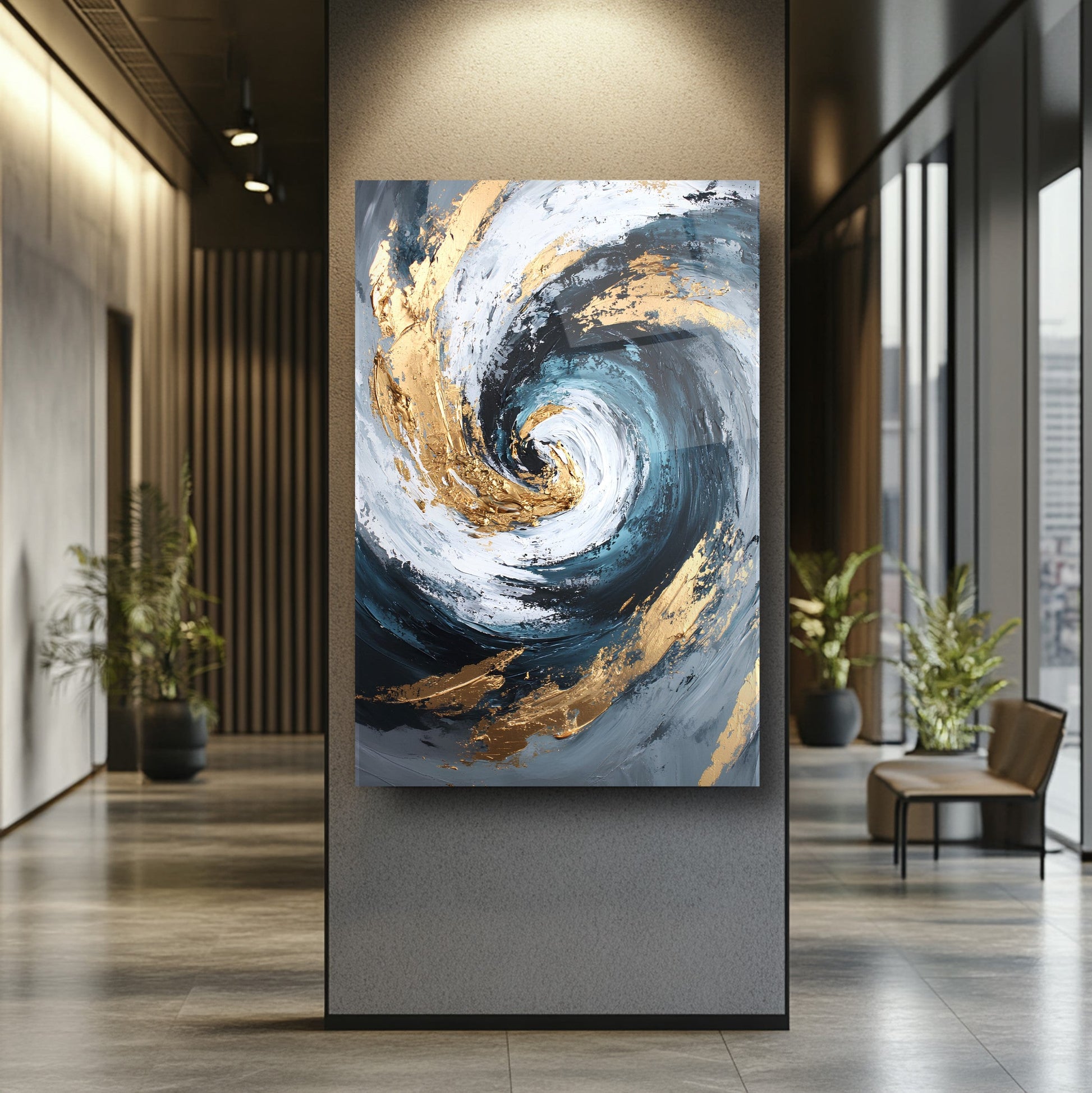 Evinize veya ofisinize modern bir dokunuş katacak bu kırılmaz cam tablo, dayanıklı temperli camdan üretilmiş gerçek bir cam tablodur. Mavi, gold ve siyah renklerin kabartma desenlerle birleştiği soyut tasarım, şıklığı ve estetiği mekanlarınıza taşır. Uzun ömürlü ve kaliteli yapısıyla salon ve çalışma alanlarında mükemmel dekorasyon seçeneğidir.