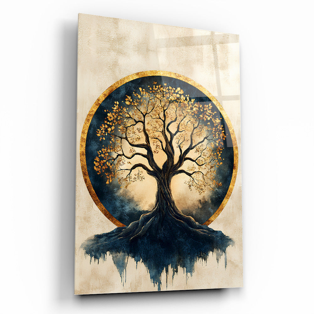 Yaşamın Sonsuz Döngüsü: Mavi Gold Yaşam Hayat Ağacı Cam Tablo