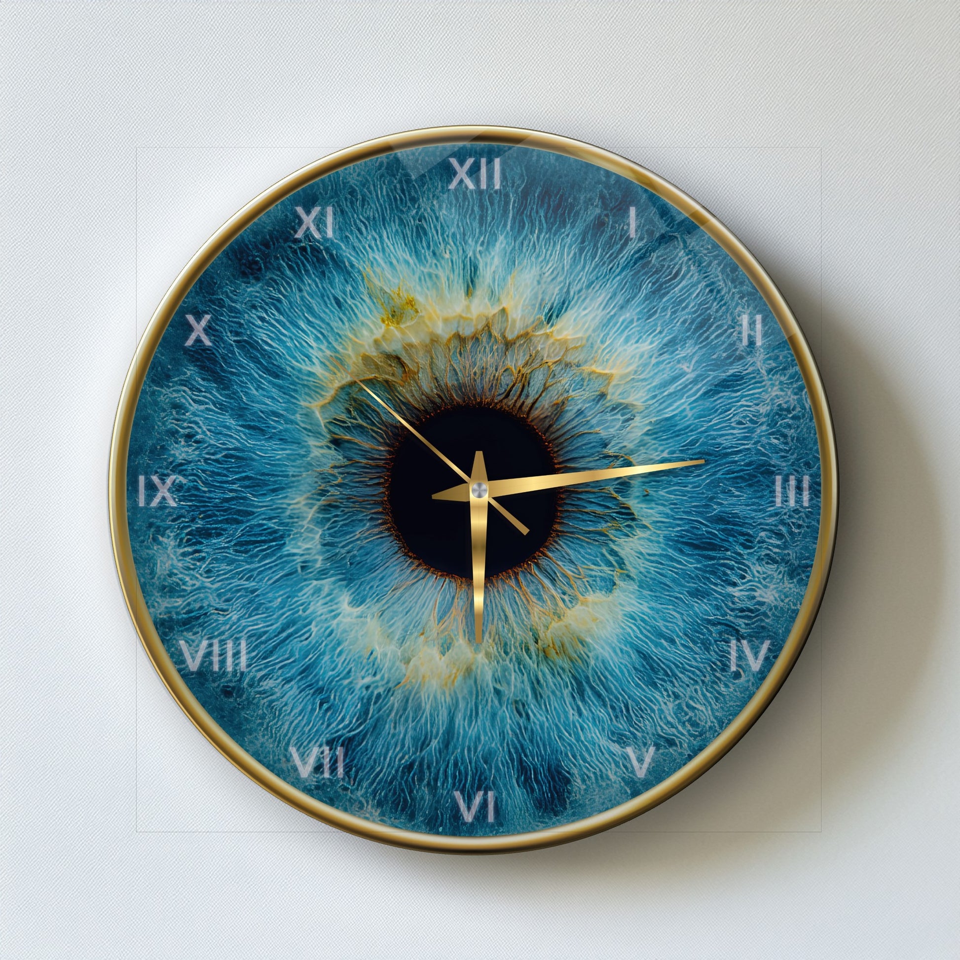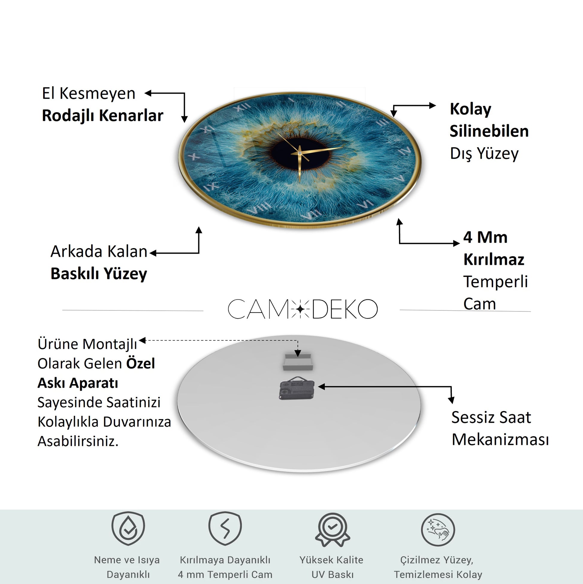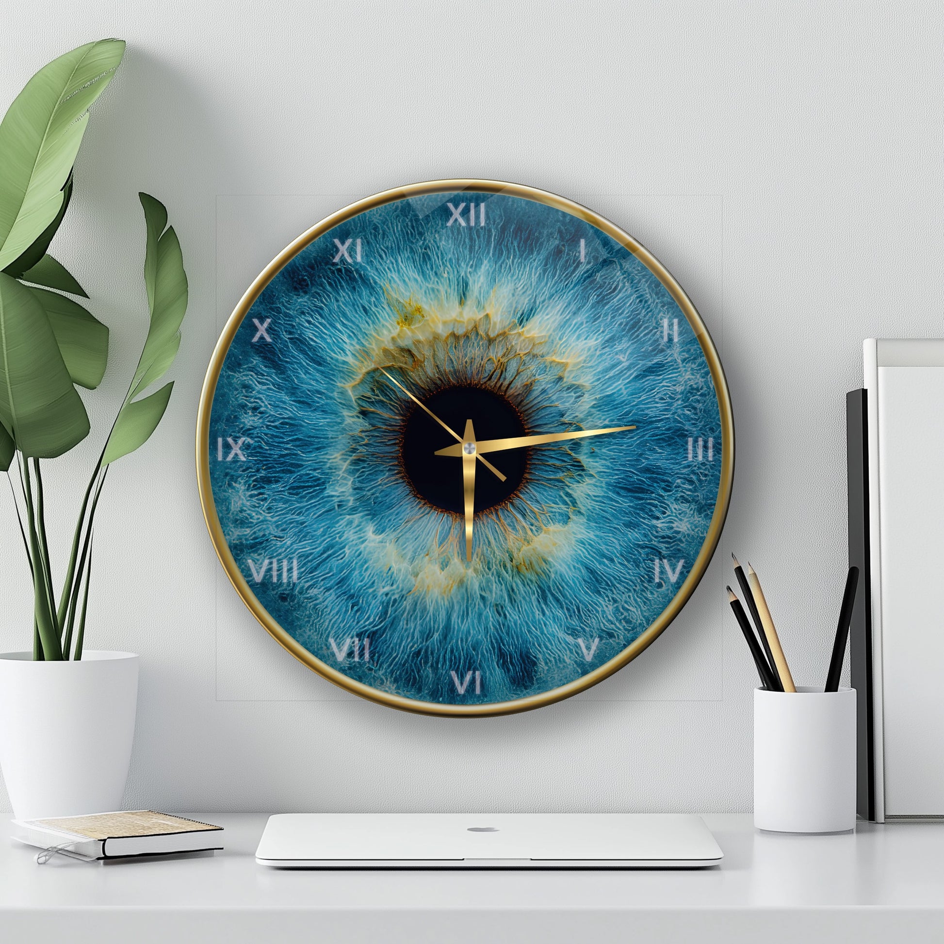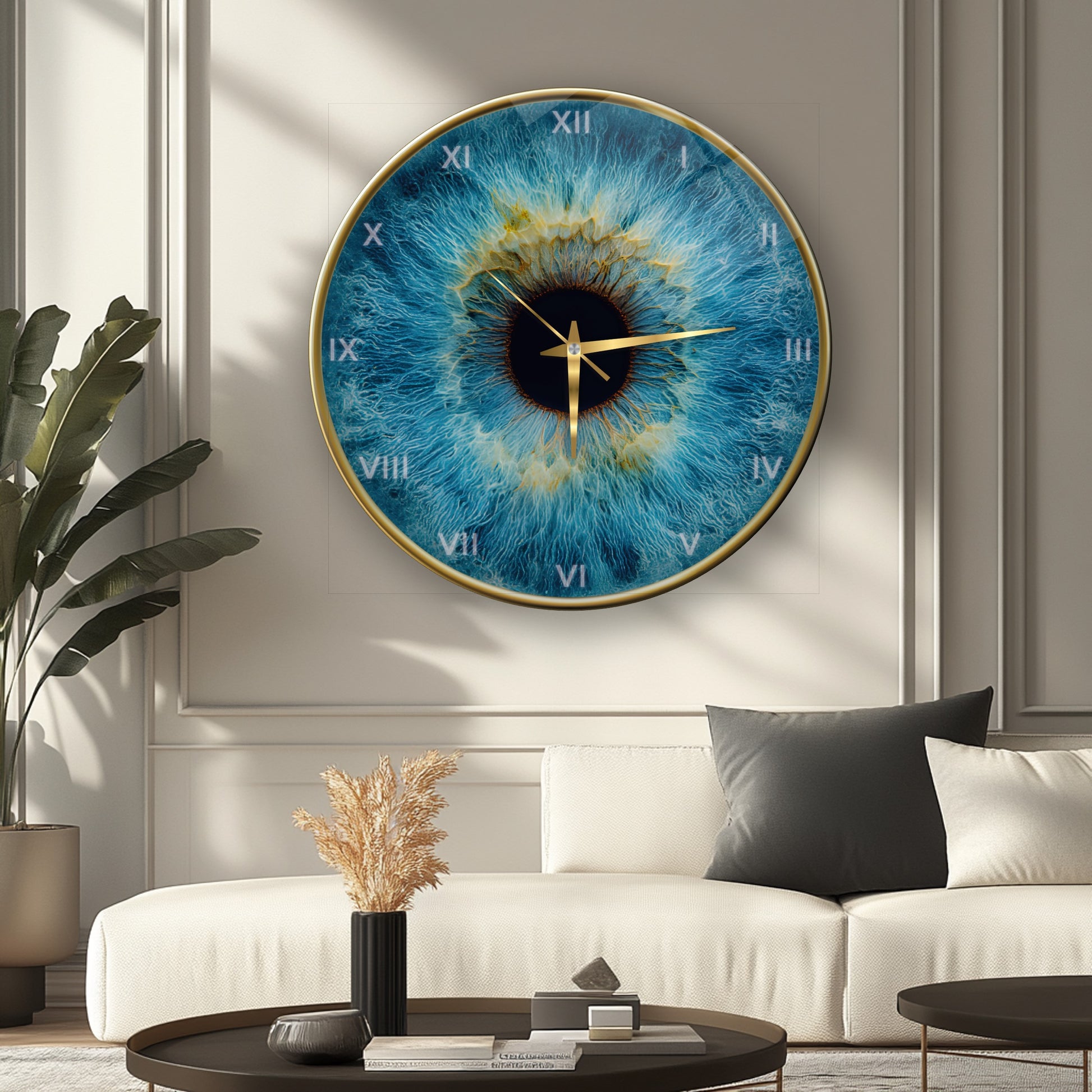 Mavi Göz Bebeği İris Cam Duvar Saati