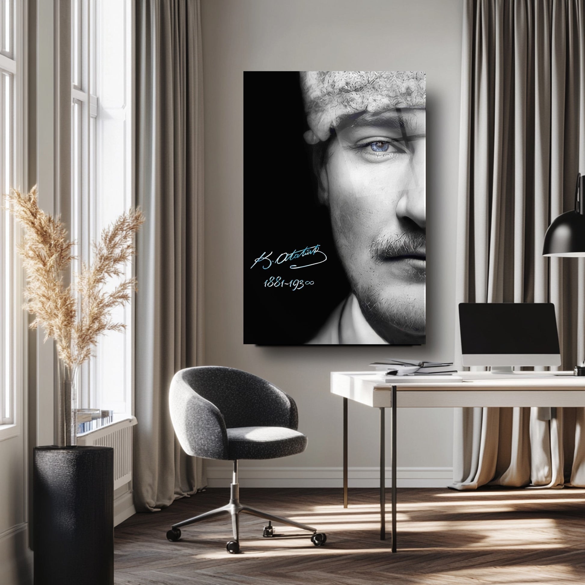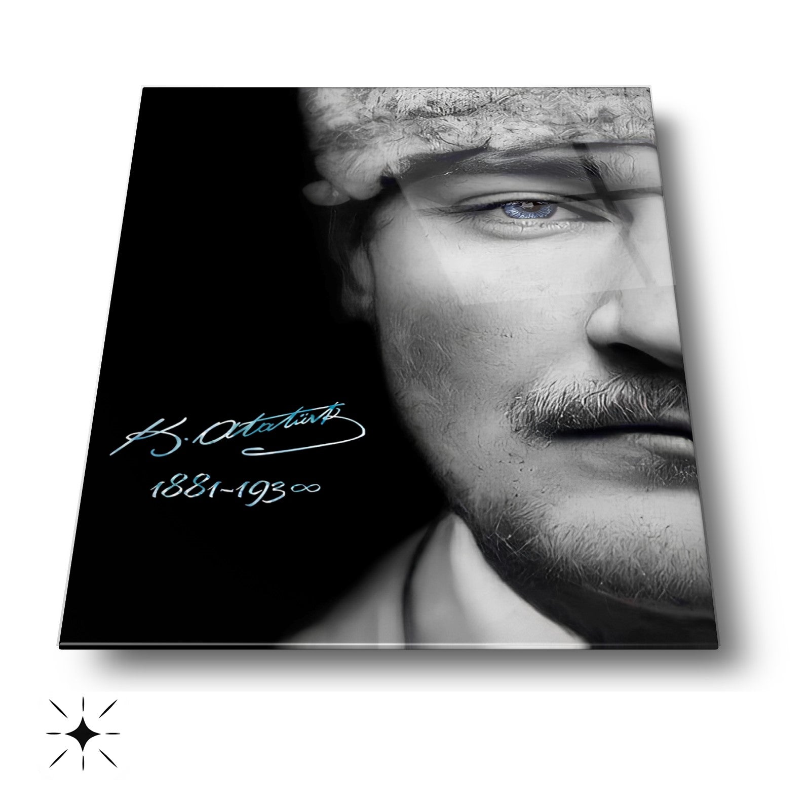 Liderin İmzasıyla Özel Bir Eser: Mavi Gözlü Atatürk İmzalı Cam Tablo