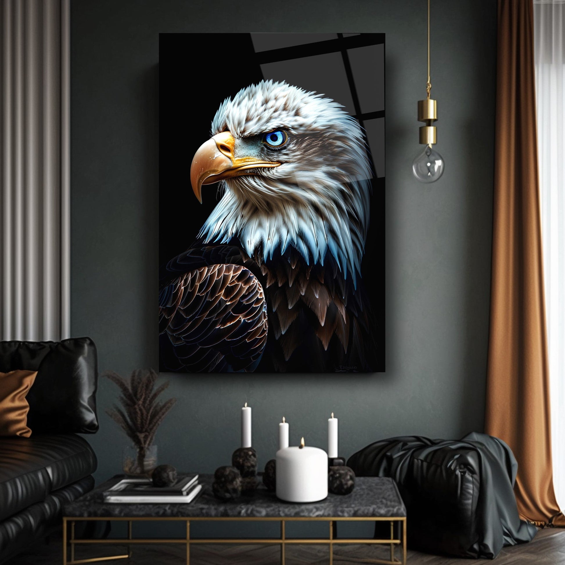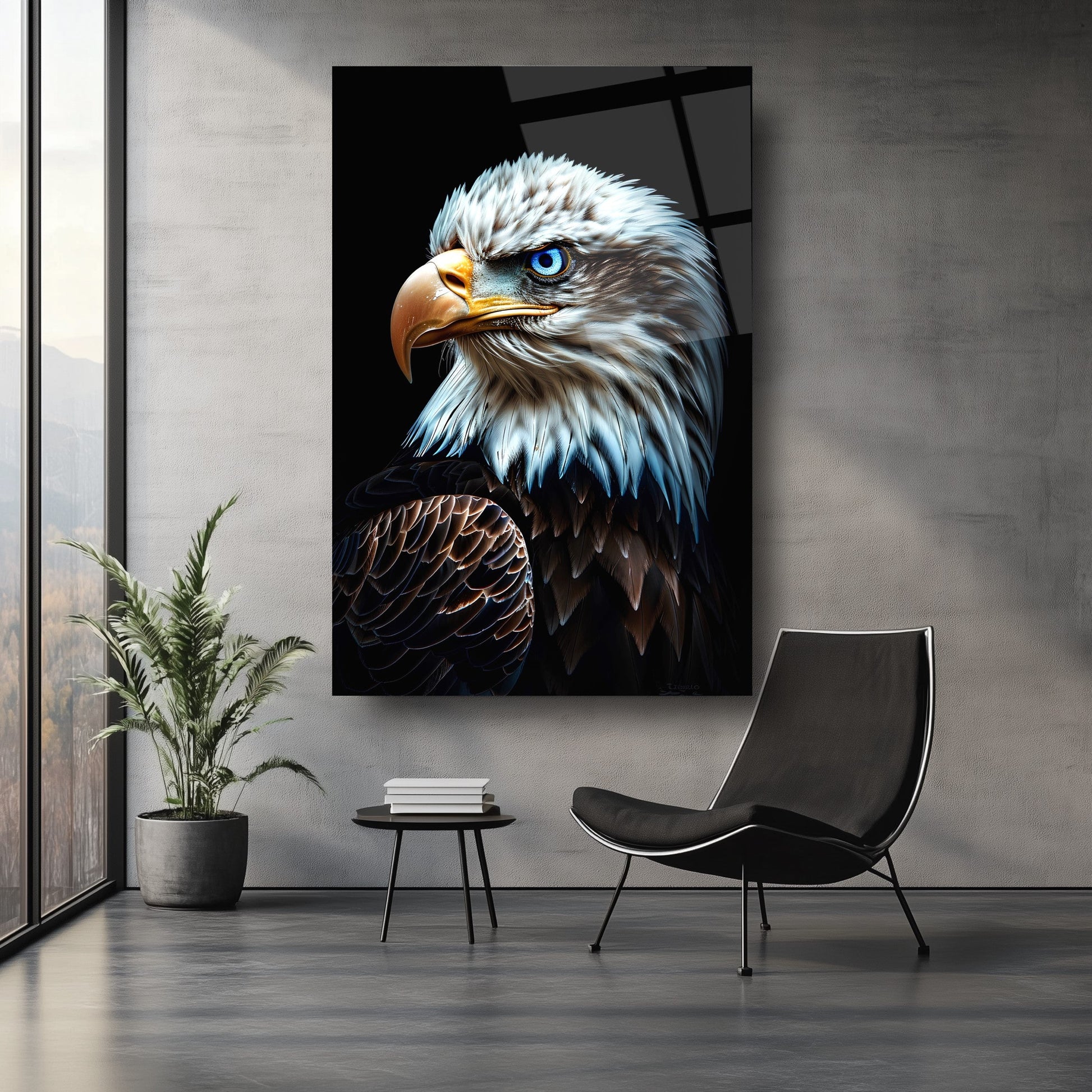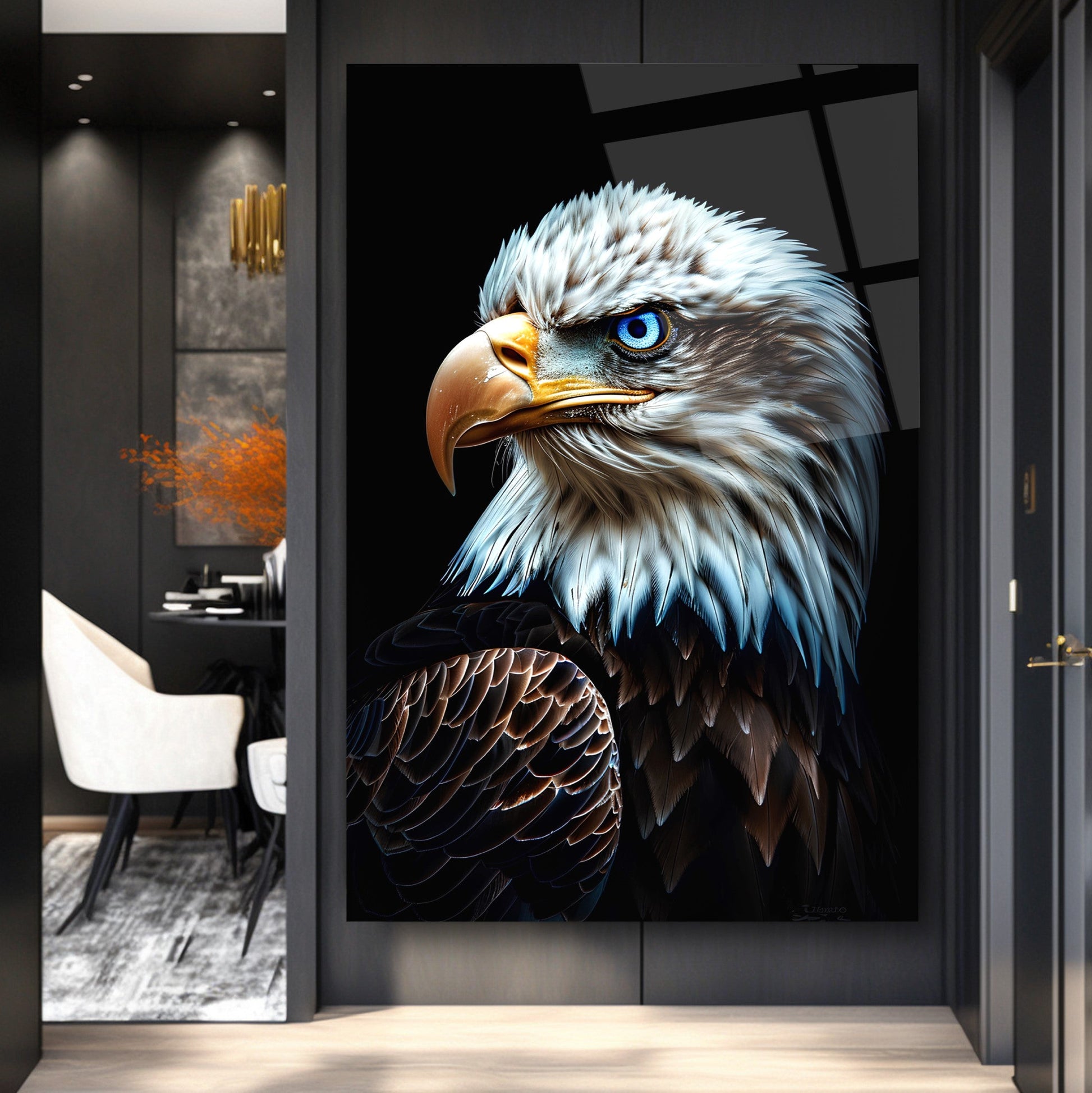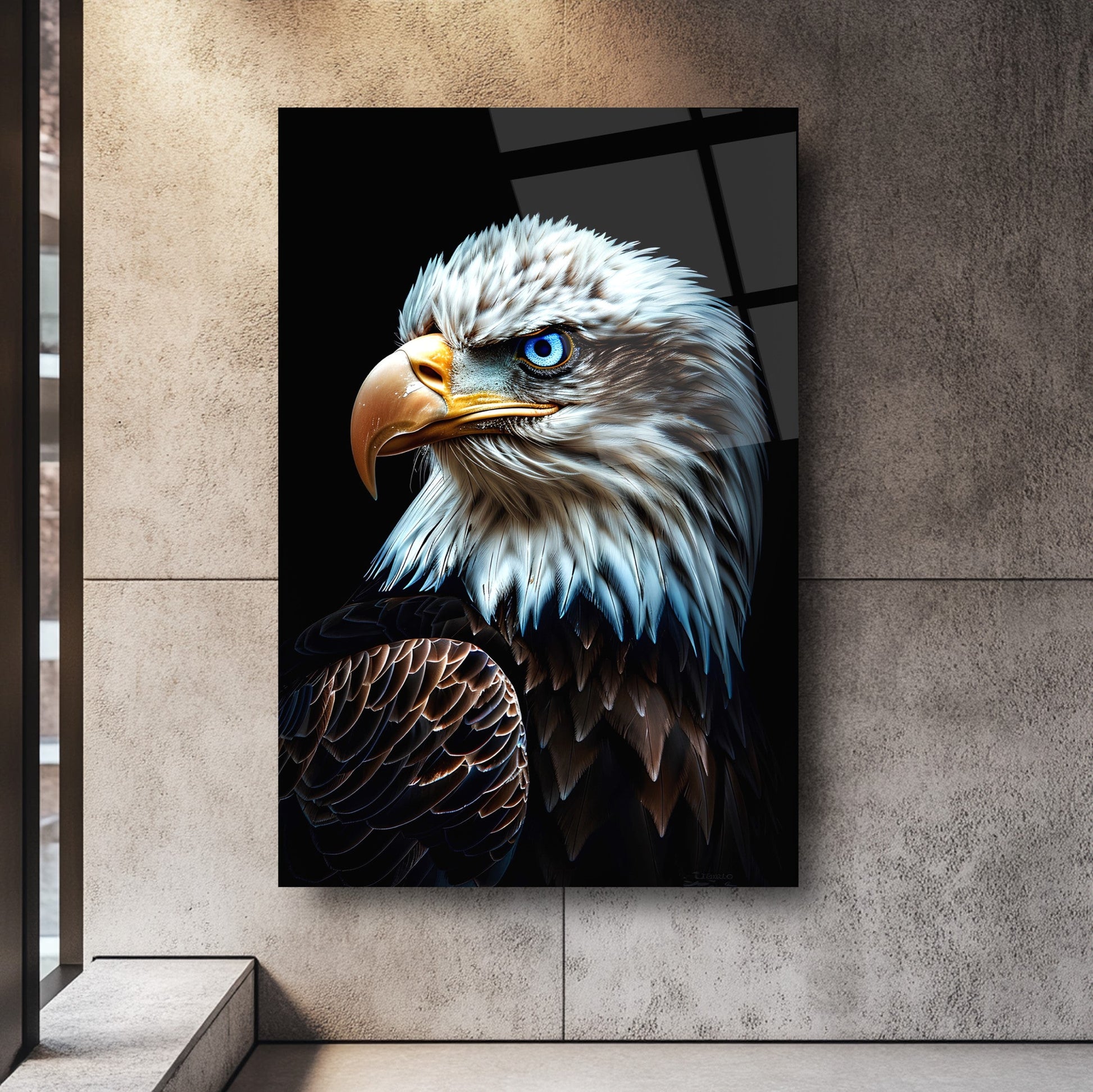 Mavi gözleriyle dikkat çeken bu gerçek cam tablo, kartalın gücünü ve özgürlüğünü simgeler. Siyah ve mavi tonların uyumuyla tasarlanan bu kırılmaz cam tablo, modern yaşam alanlarına etkileyici bir dokunuş katar. Hem dayanıklı hem estetik olan bu cam tablo, stil sahibi mekanlar için eşsiz bir dekorasyon tercihidir.