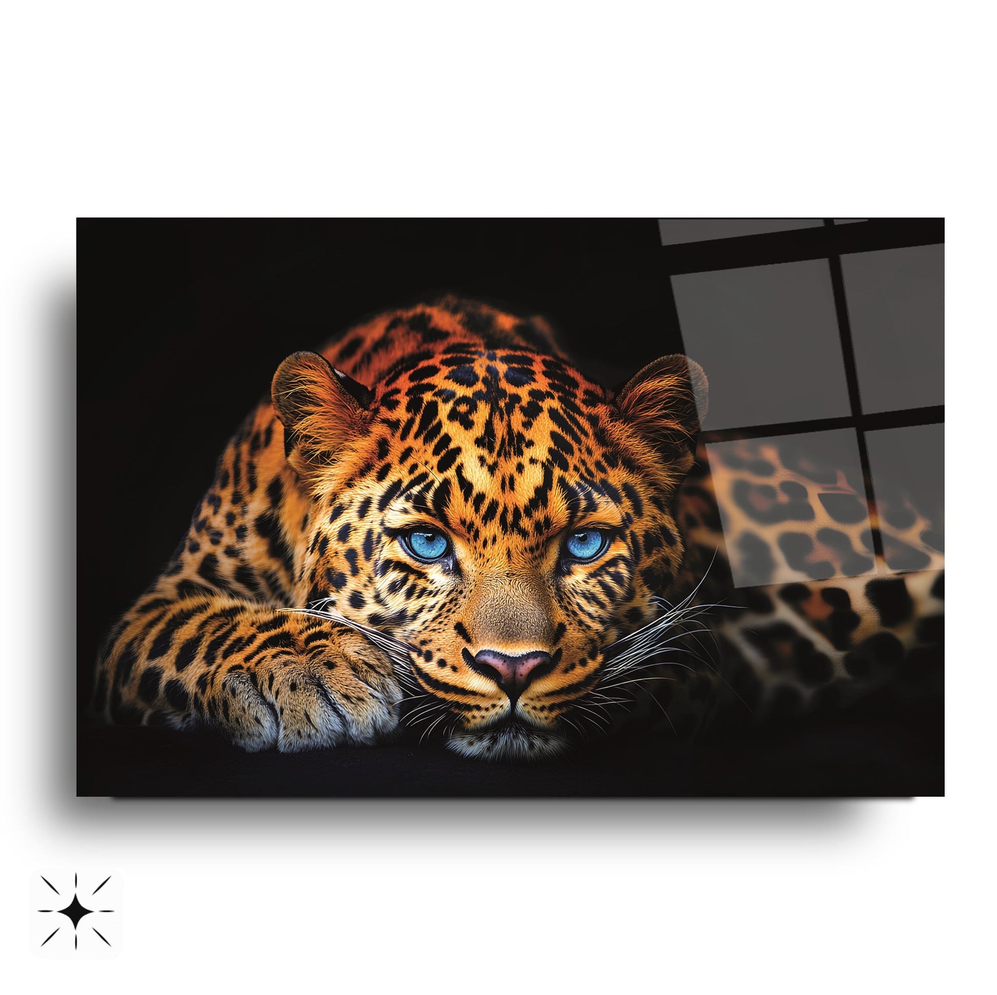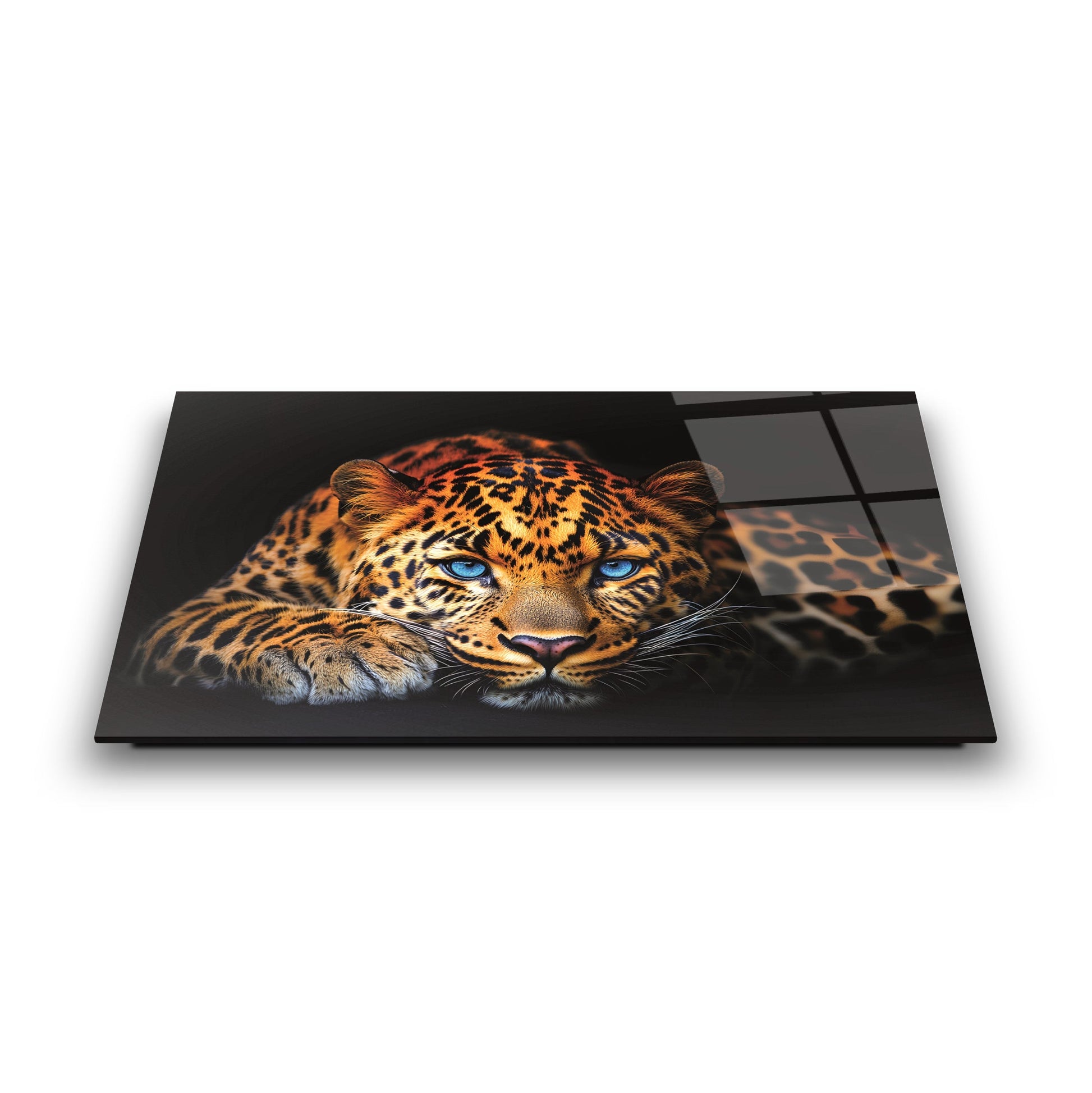 CamDeko'dan mekanlarınıza doğanın güçlü enerjisini ve sanatsal bir ihtişam katan özel bir eser: Mavi Gözlü Leopar Gerçek Kırılmaz Modern UV Baskı Temperli Cam Tablo! Vahşi yaşamın ve ormanların eşsiz gücünü simgeleyen mavi gözlü leopar figürü, dinamik duruşu ve modern tasarımıyla ev, ofis veya çalışma alanlarınıza büyüleyici bir atmosfer katıyor.