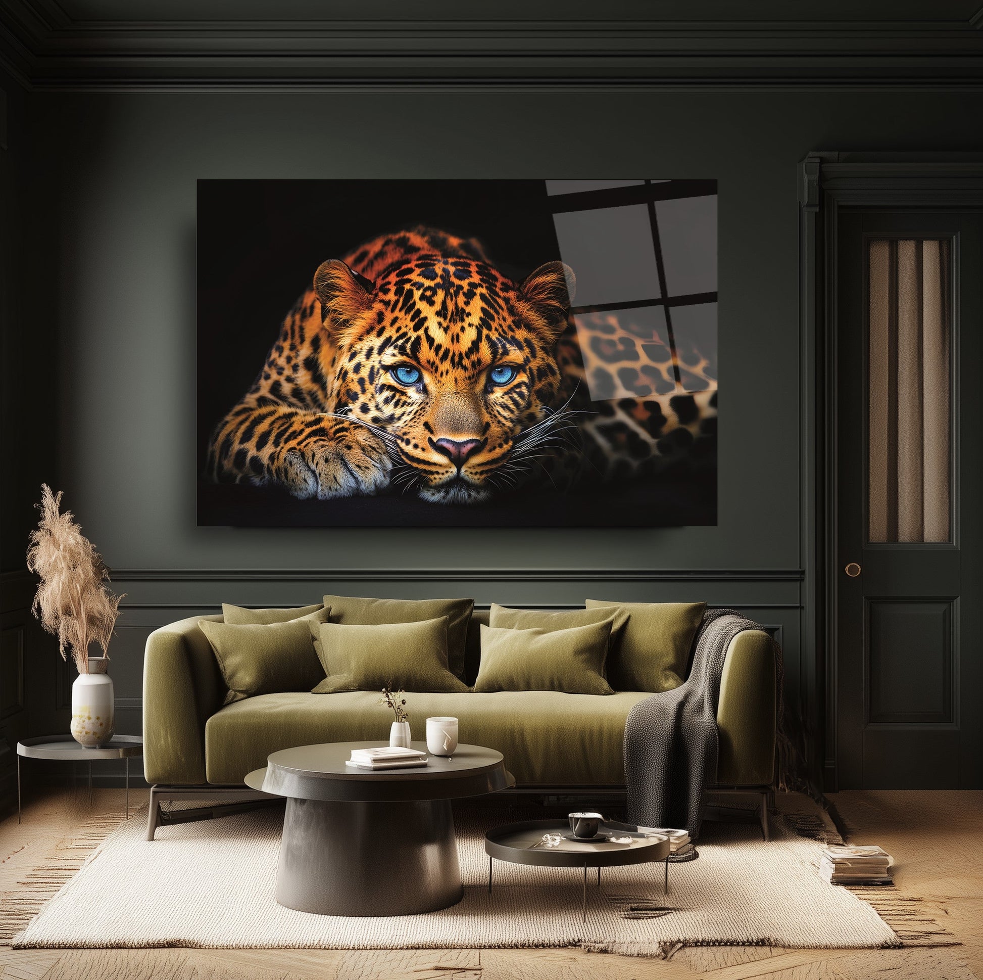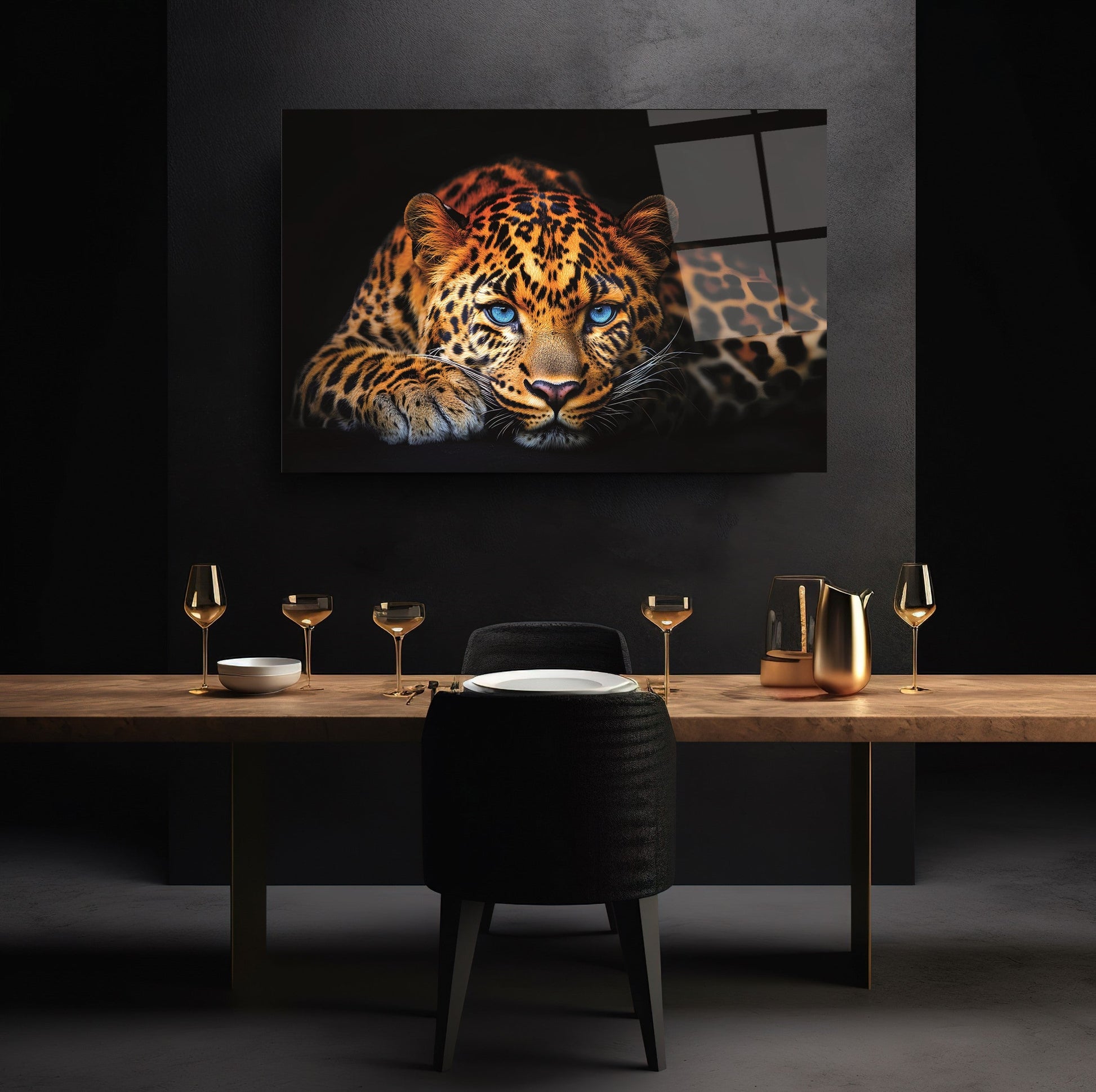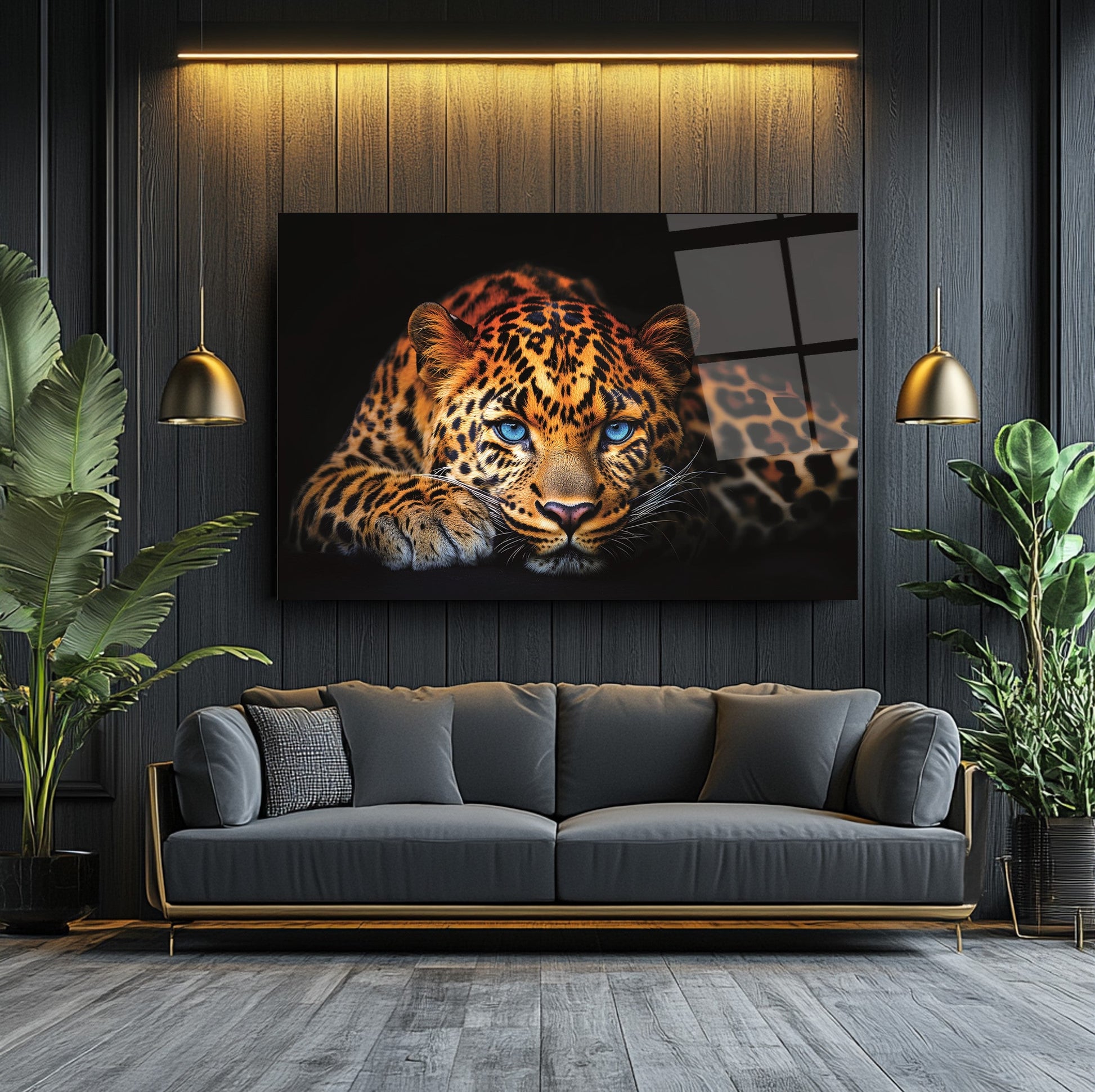 Vahşi Doğanın Göz Alıcı Lideri: Mavi Gözlü Leopar Modern Kırılmaz Cam Tablo