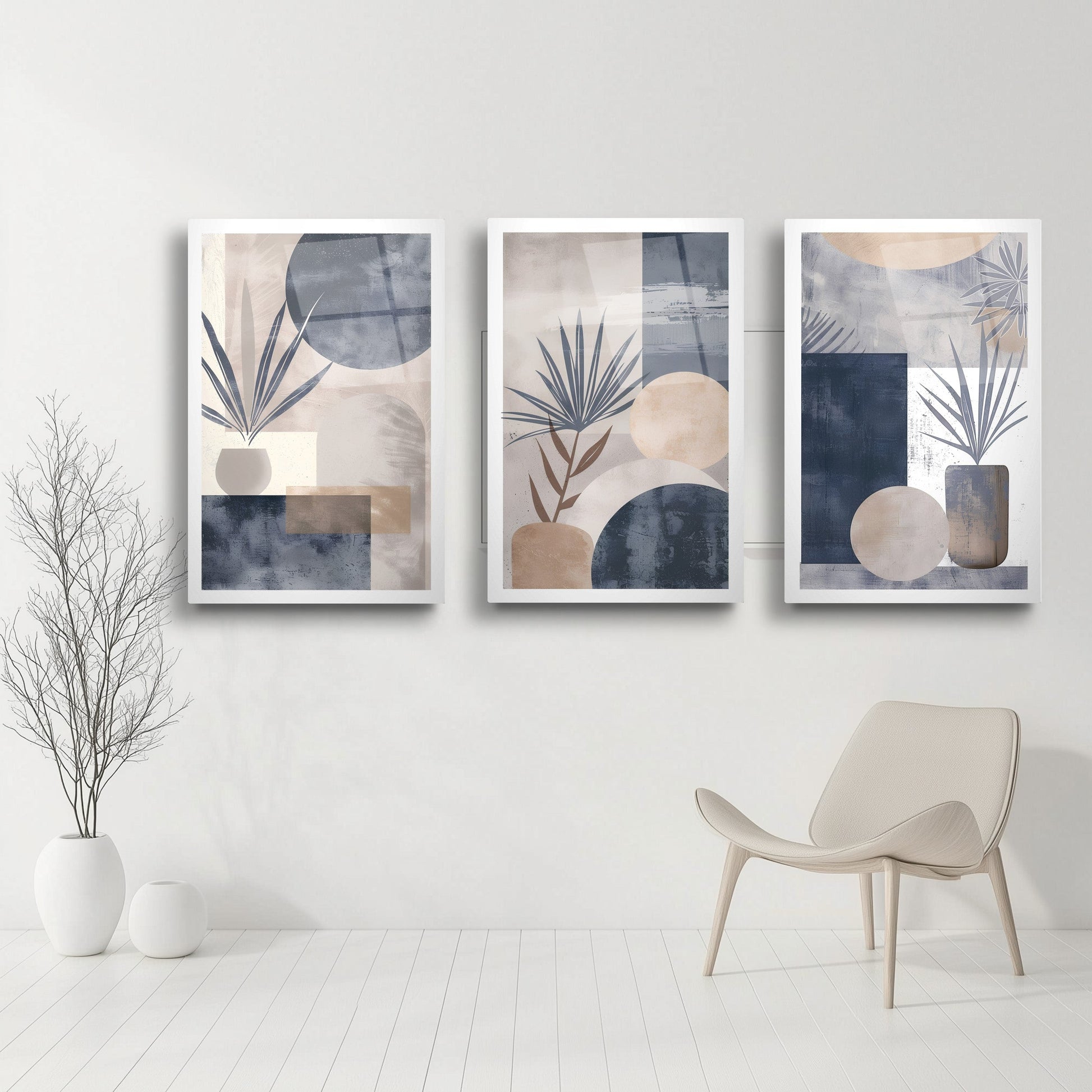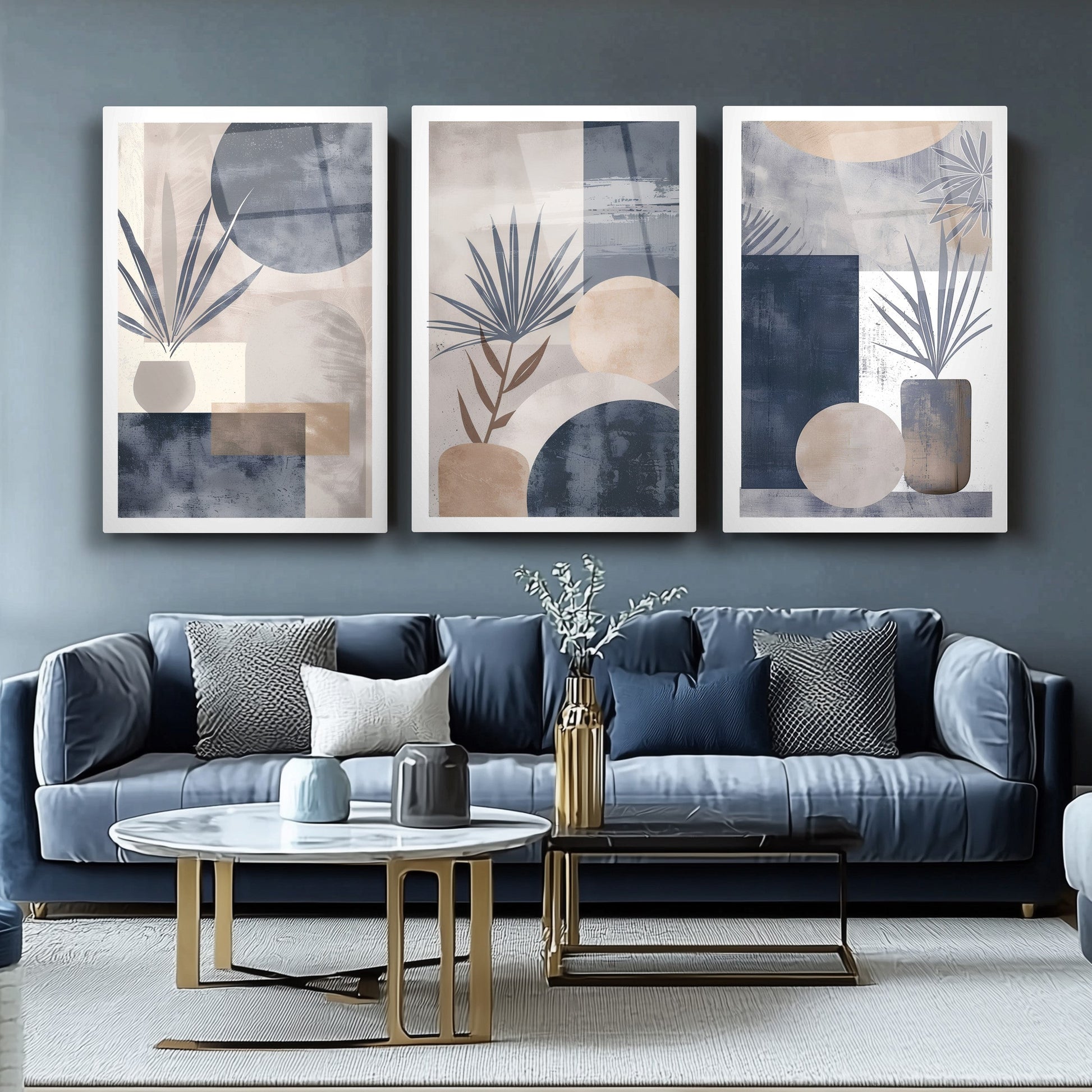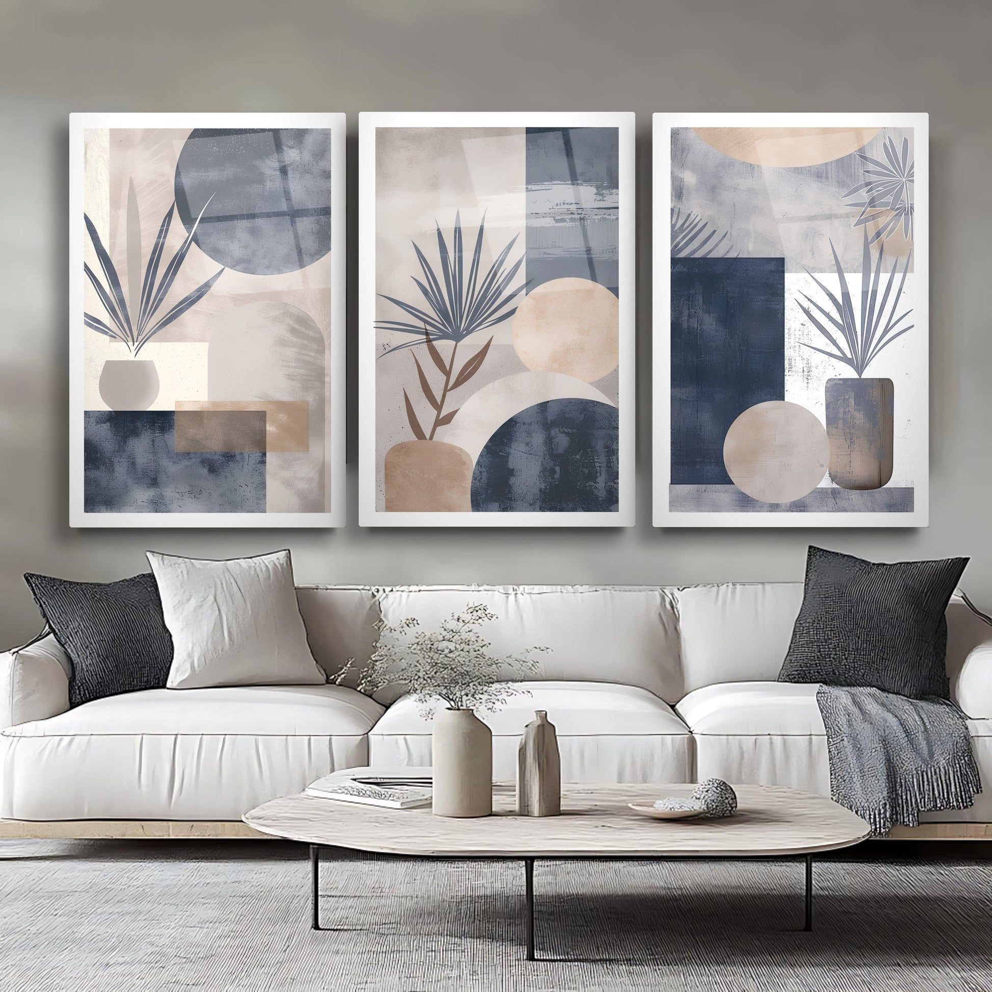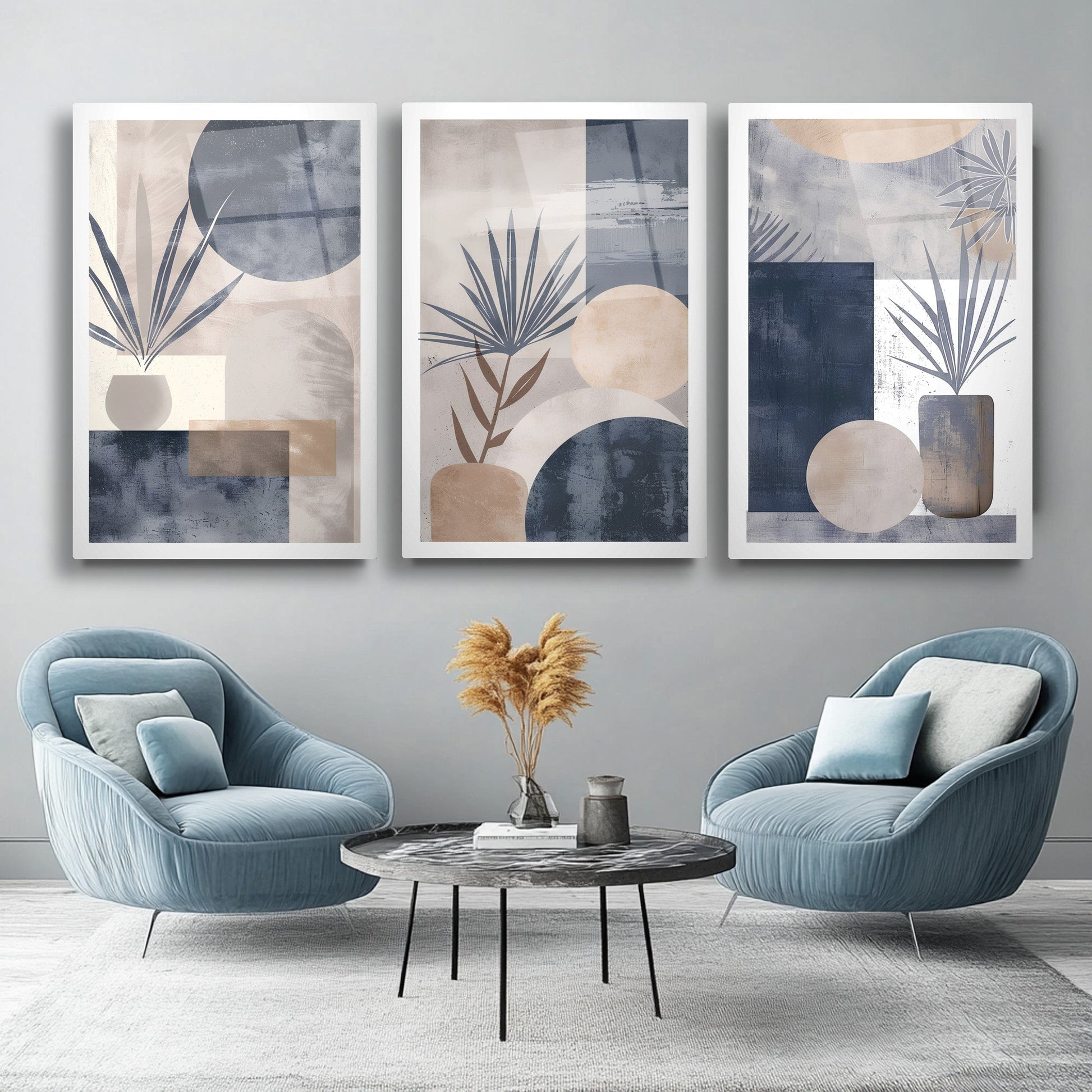 Mavi ve gri tonlarının hâkim olduğu soyut boho desenler, bu büyük boy kırılmaz cam tablo setine sade ve modern bir hava kazandırır. Minimal tarz sevenler için özel olarak tasarlanan bu eser, salon dekorasyonu için şık bir tamamlayıcıdır. Temperli cam yapısıyla uzun ömürlüdür. Renk uyumu ve zarif detaylarıyla yaşam alanınıza dinginlik ve estetik bir dokunuş katar.