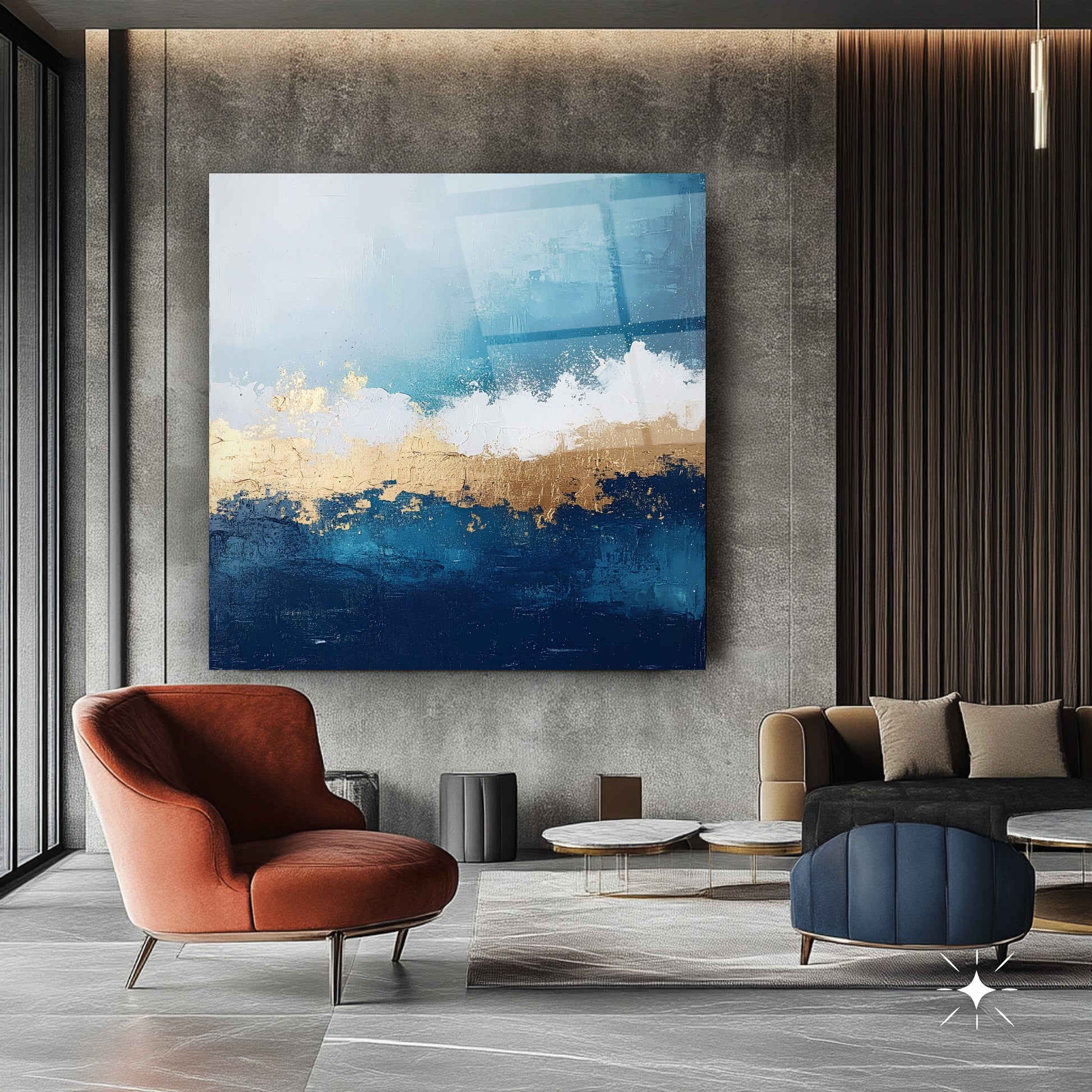 Mavi, lacivert ve gold renklerin zarif birleşimiyle oluşturulan bu soyut cam tablo, modern yaşam alanlarına şıklık ve derinlik katıyor. CamDeko kalitesiyle kırılmaz temperli cam üzerine UV baskı teknolojisiyle hazırlanan ürün, zengin renk geçişleri ve özgün desenleriyle mekâna sofistike bir atmosfer sunar. Evlerden ofislere, otel lobilerinden özel tasarım mekanlara kadar geniş kullanım alanına sahip olan bu tablo, dayanıklı yapısıyla uzun yıllar boyunca ilk günkü kalitesini korur. Modern dekorasyon anlayışına özgünlük ve estetik katmak isteyenler için ideal bir tercihtir.