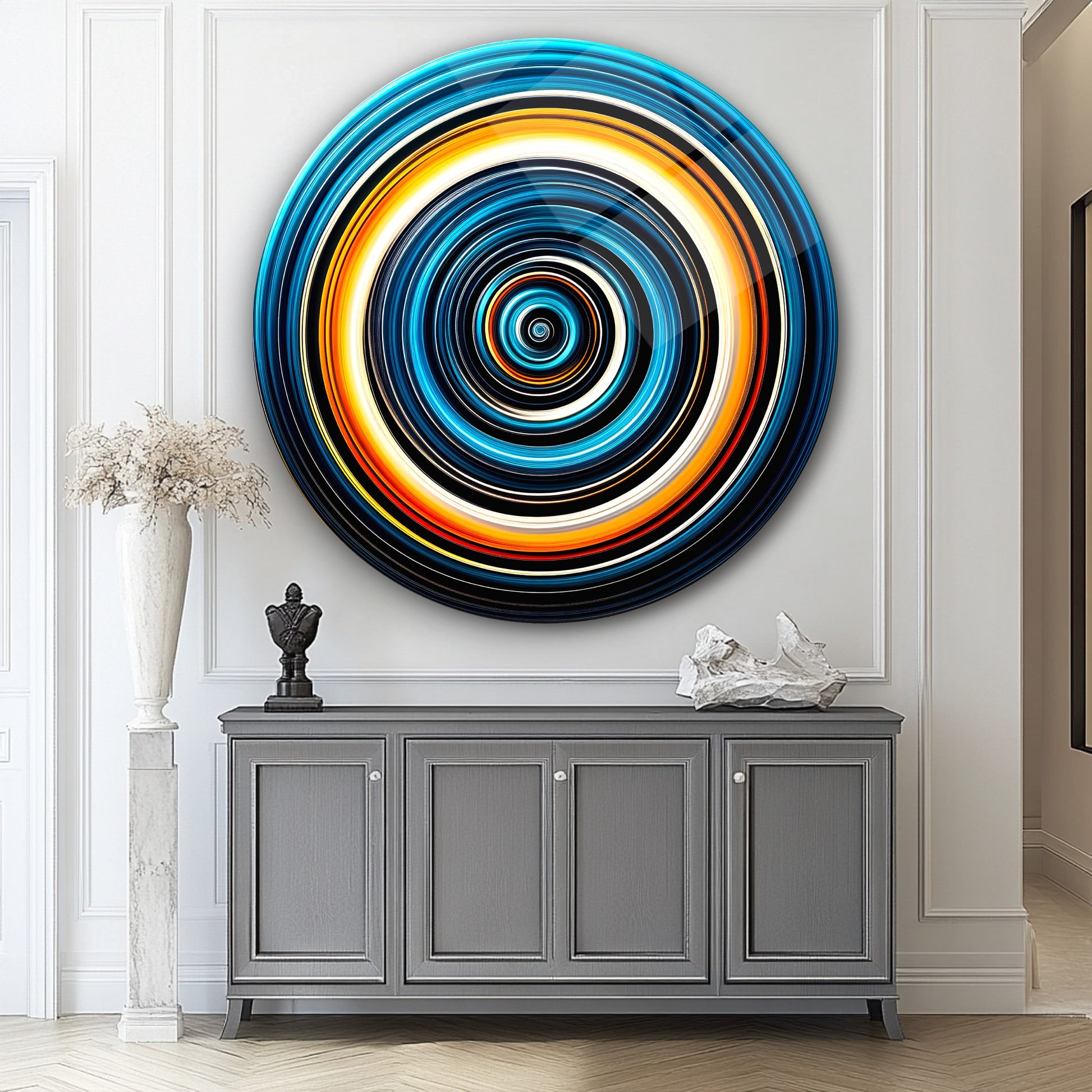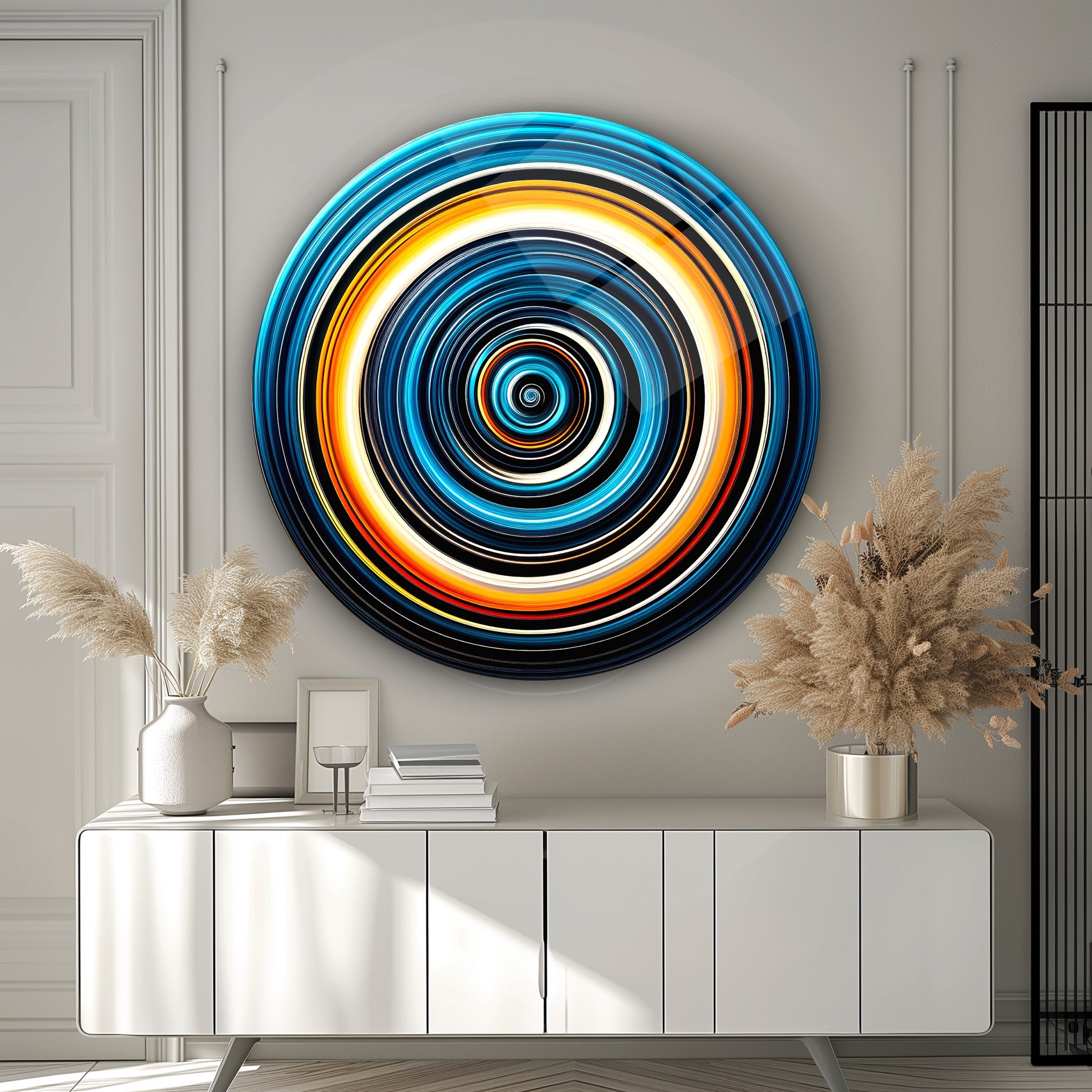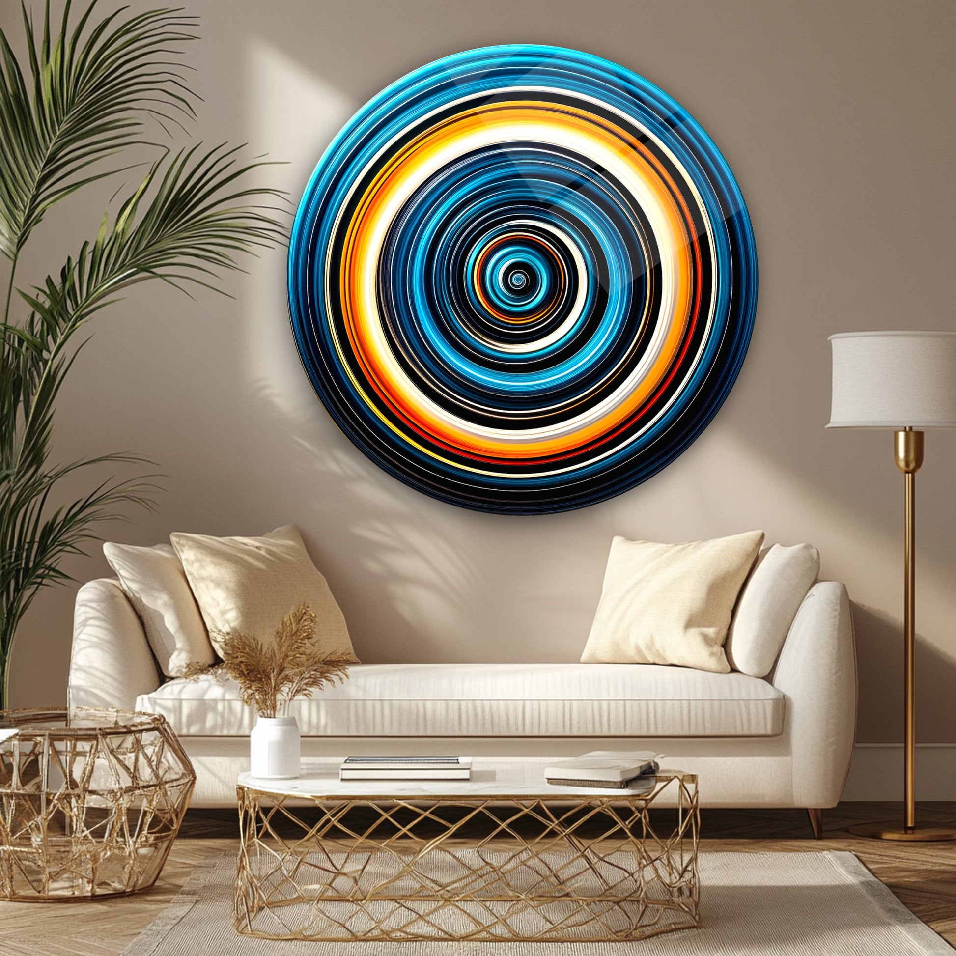 Soyut Renkli Halkalar Yuvarlak Cam Tablo