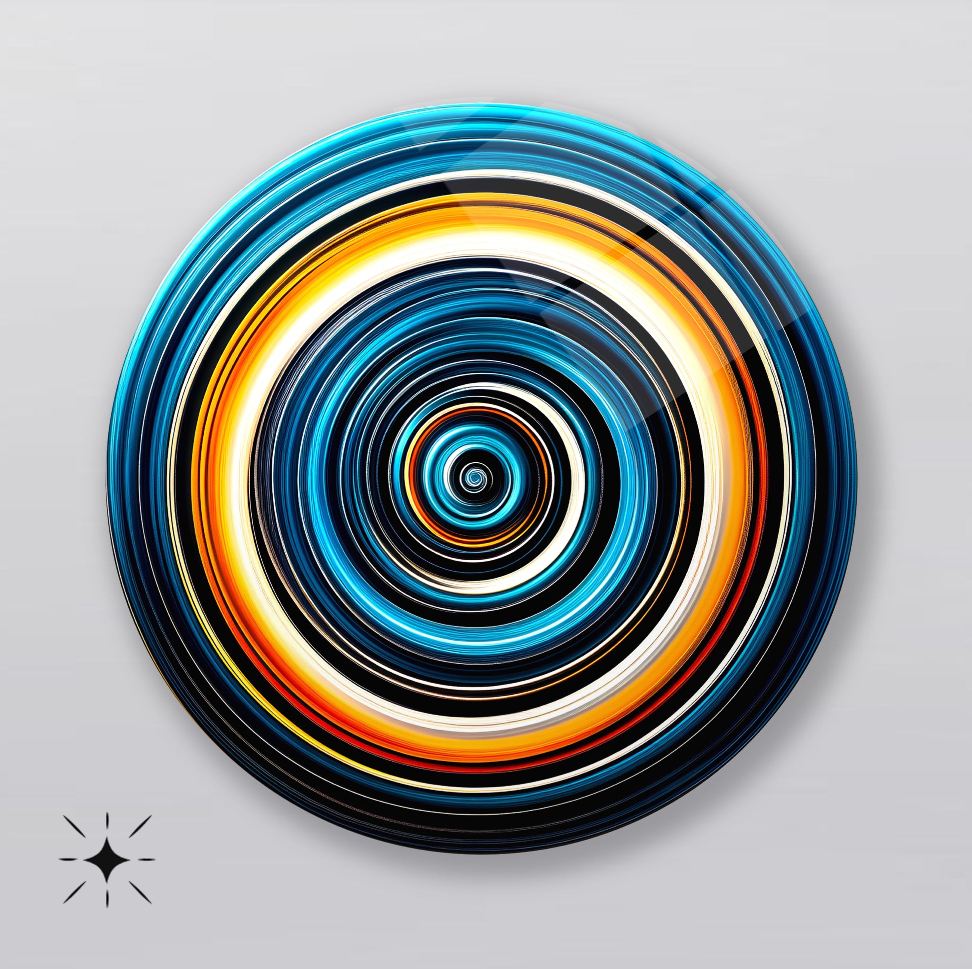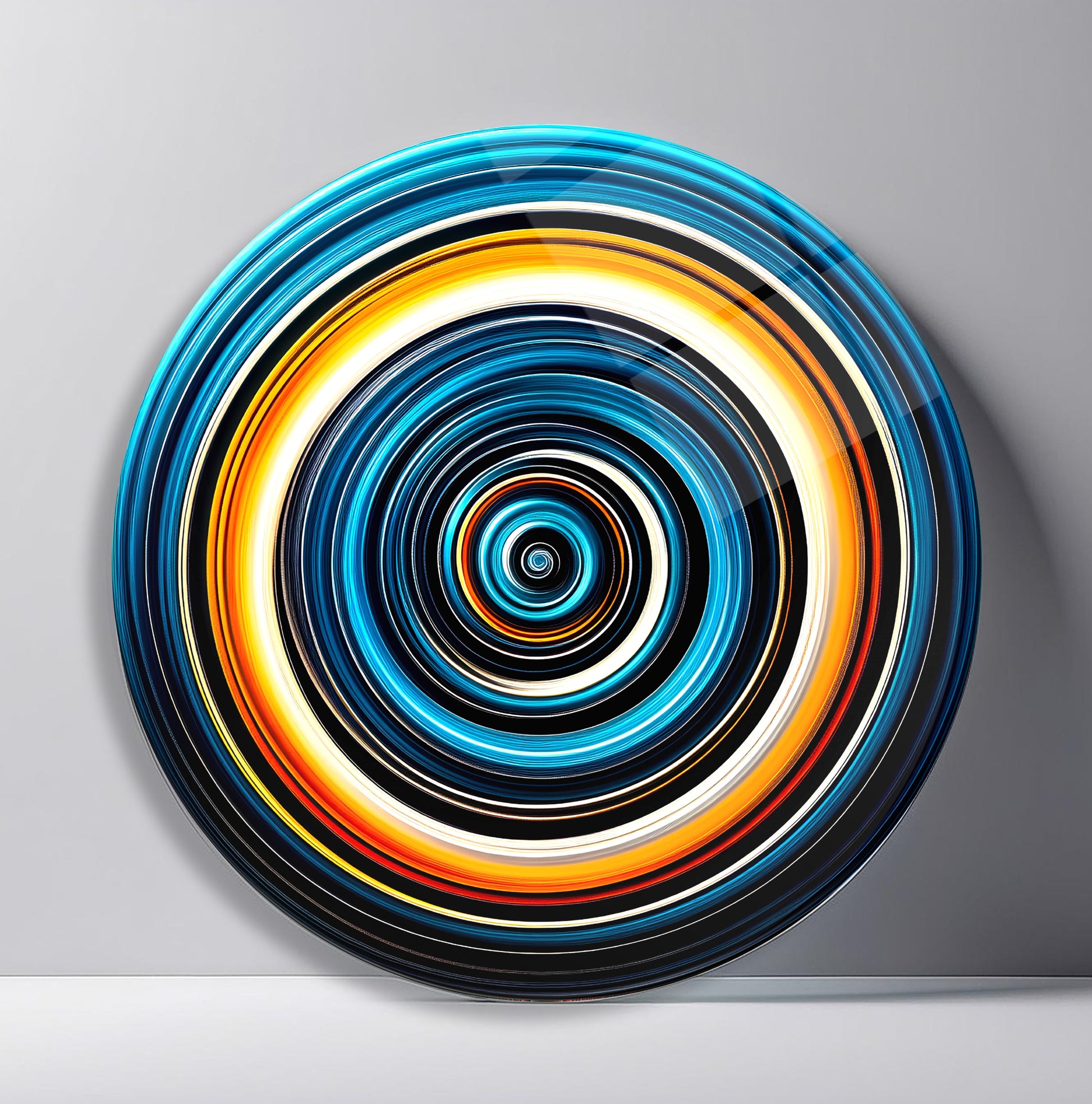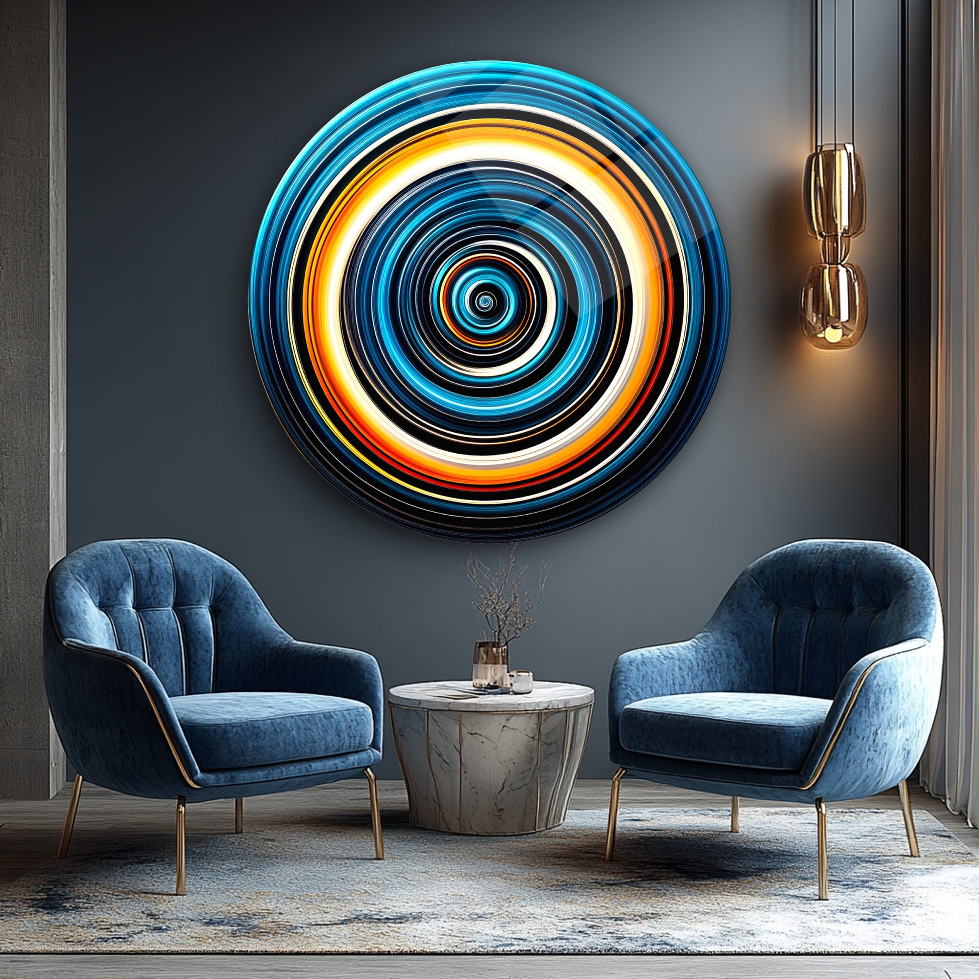 Soyut Renkli Halkalar Yuvarlak Cam Tablo