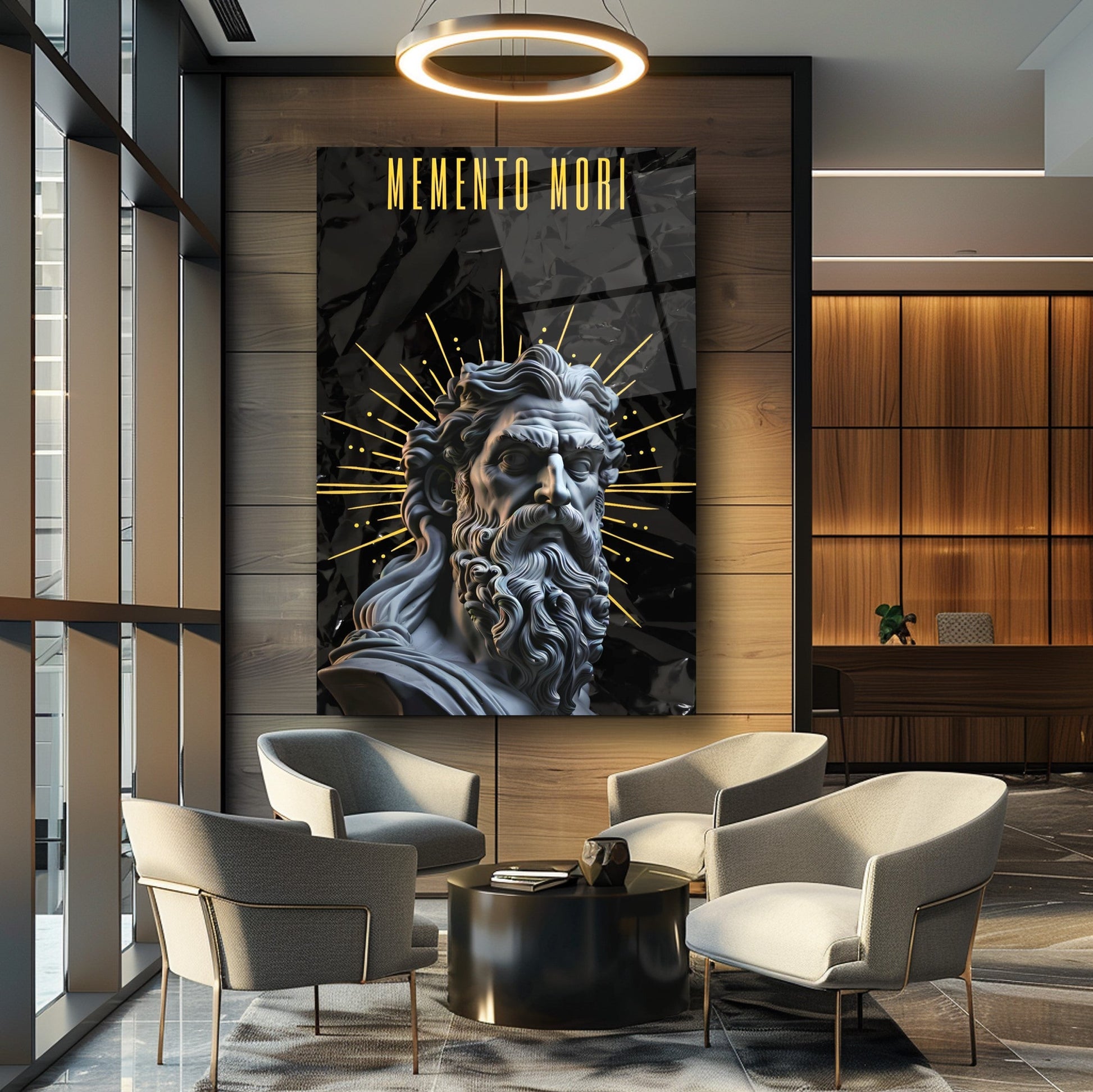 CamDeko'dan ev ve iş yerlerinize derinlik ve sanatsal bir hava katan özel bir eser: Memento Mori Sanatsal Gold Detay Heykel Temperli Modern Kırılmaz Cam Tablo! "Ölümü Hatırla" felsefesini modern sanatla buluşturan, altın detaylı heykelsi figürüyle yaşam alanlarınıza düşündürücü ve zarif bir atmosfer katın.