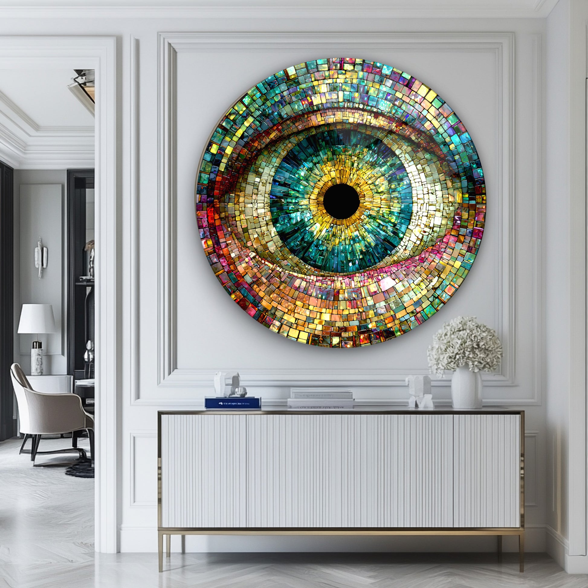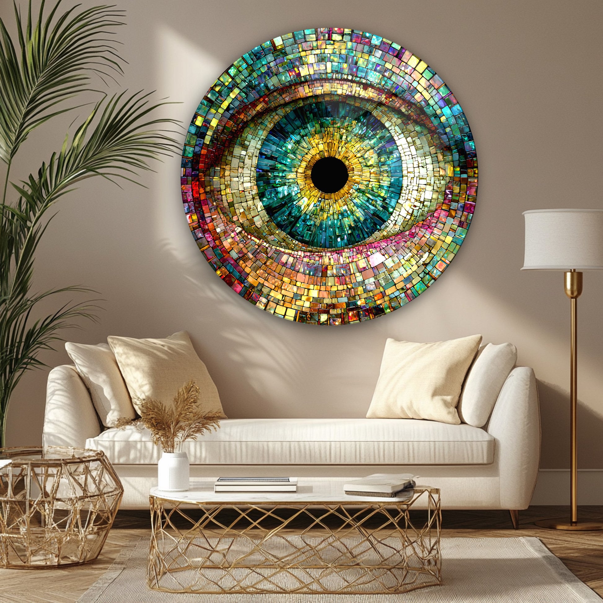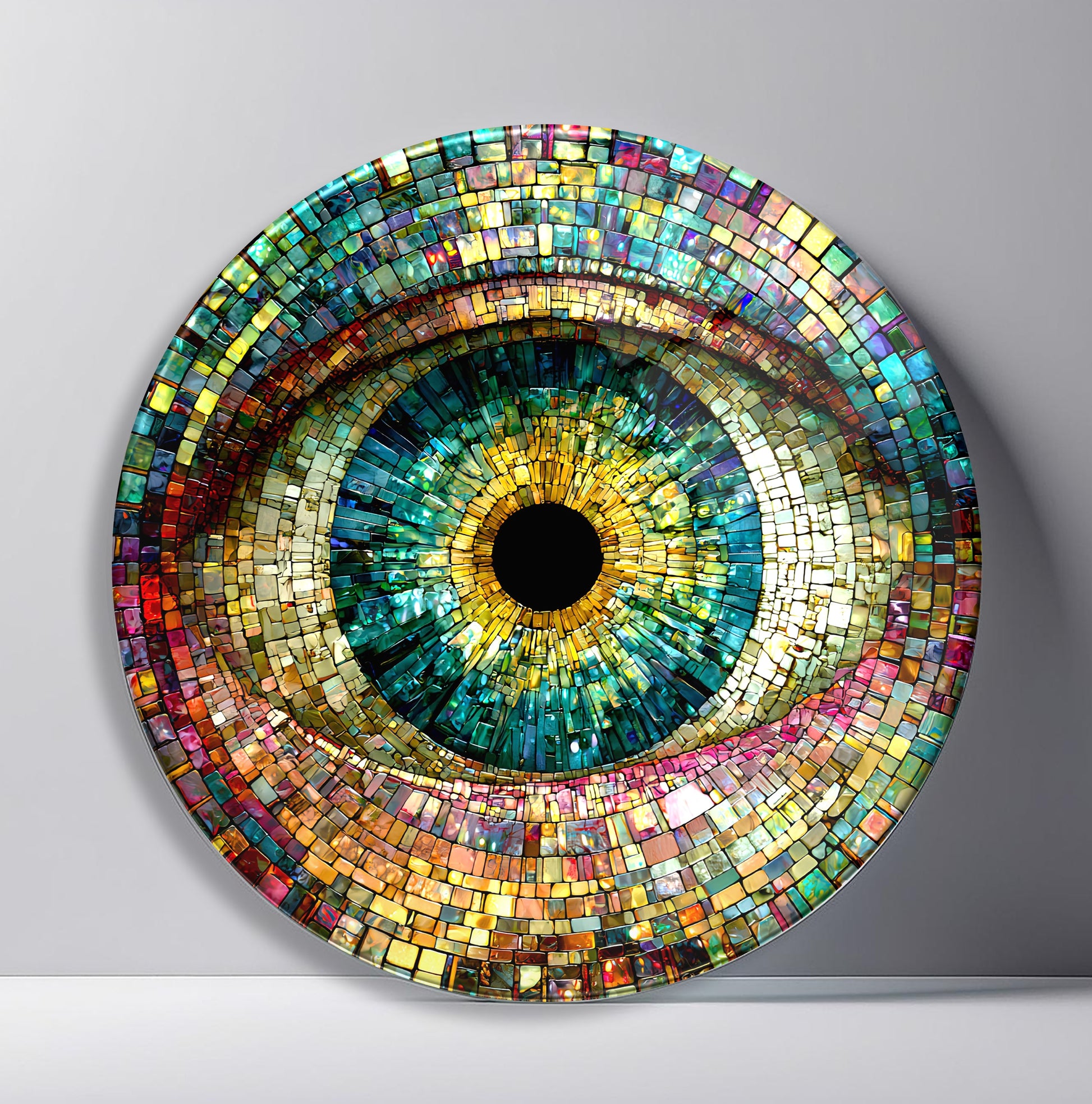 Mozaik Göz Bebeği Yuvarlak Cam Tablo