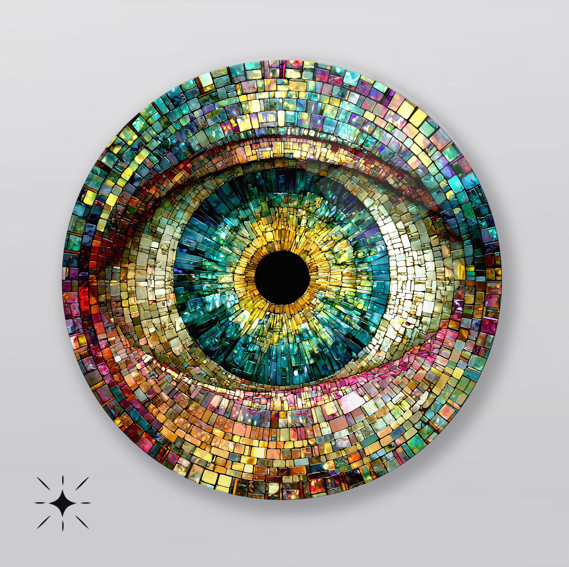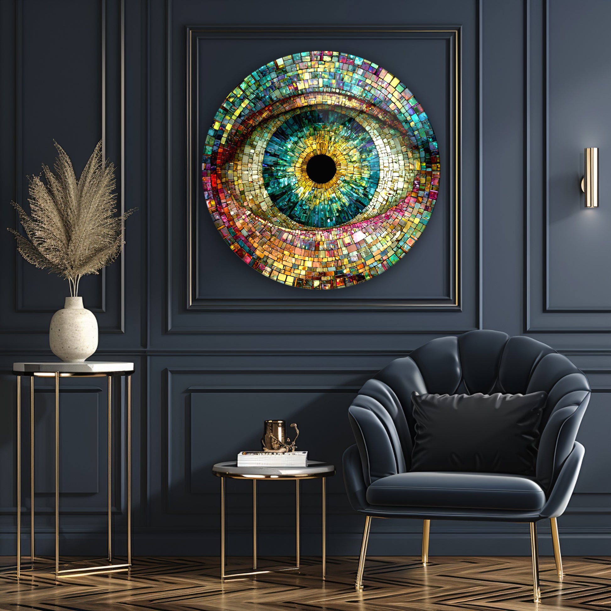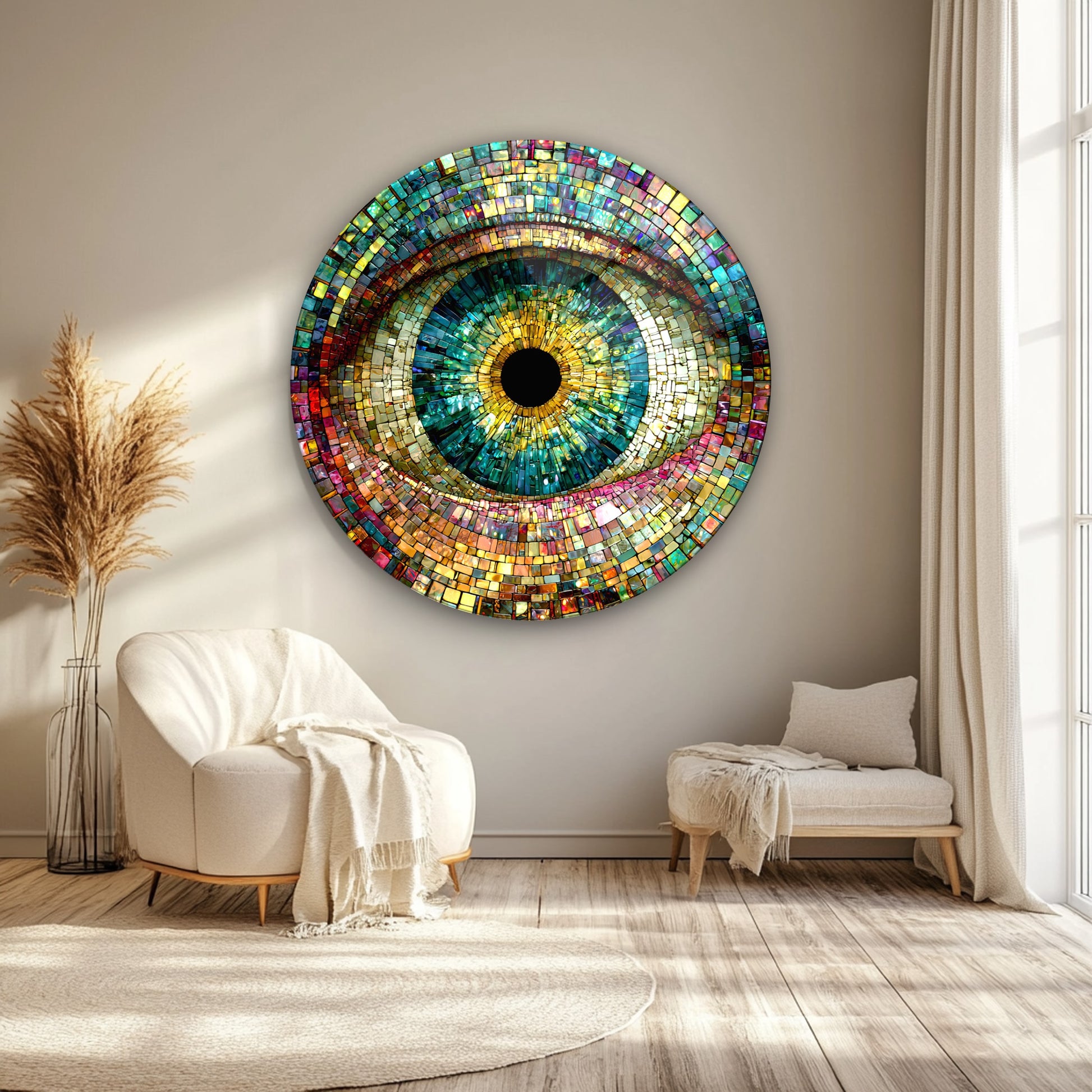 Mozaik Göz Bebeği Yuvarlak Cam Tablo