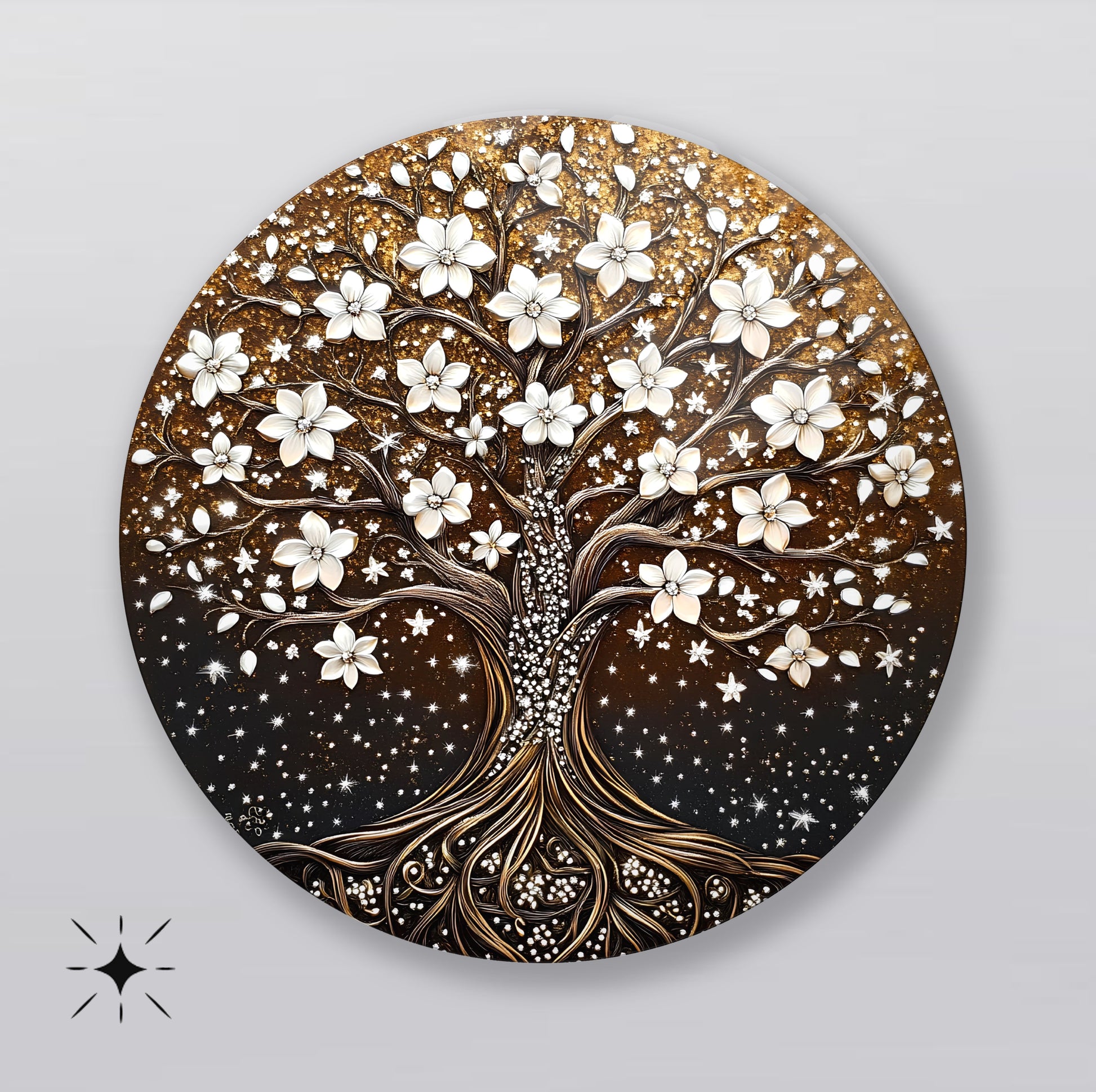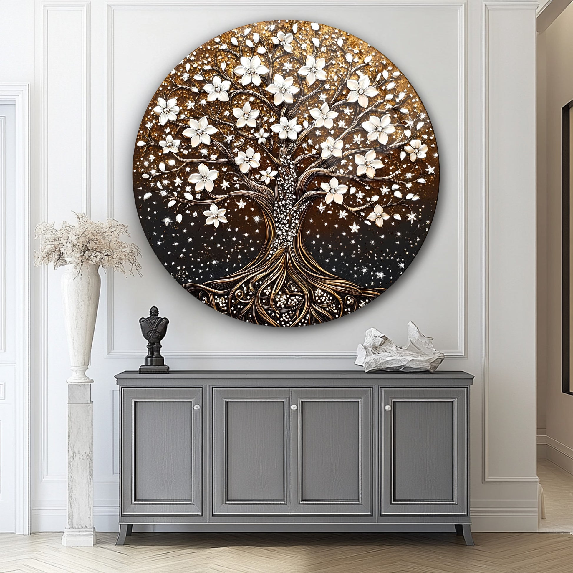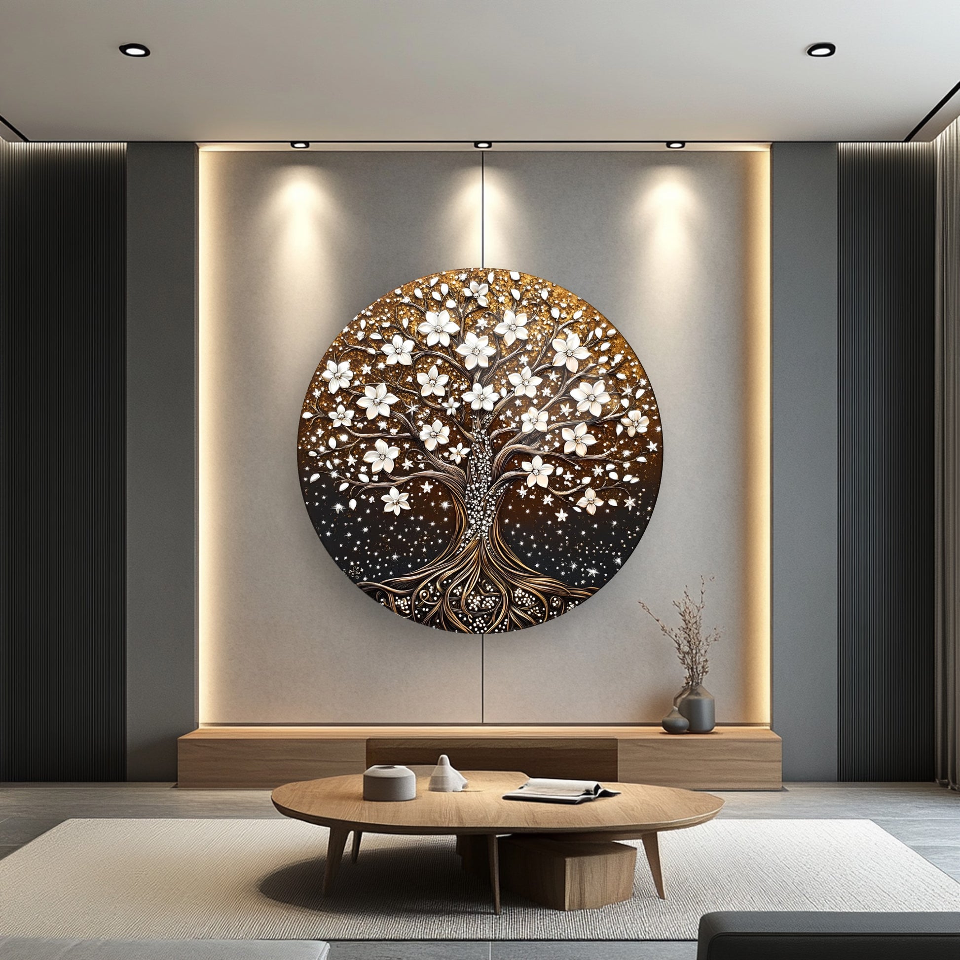 Çiçekli Hayat Ağacı Yuvarlak Cam Tablo