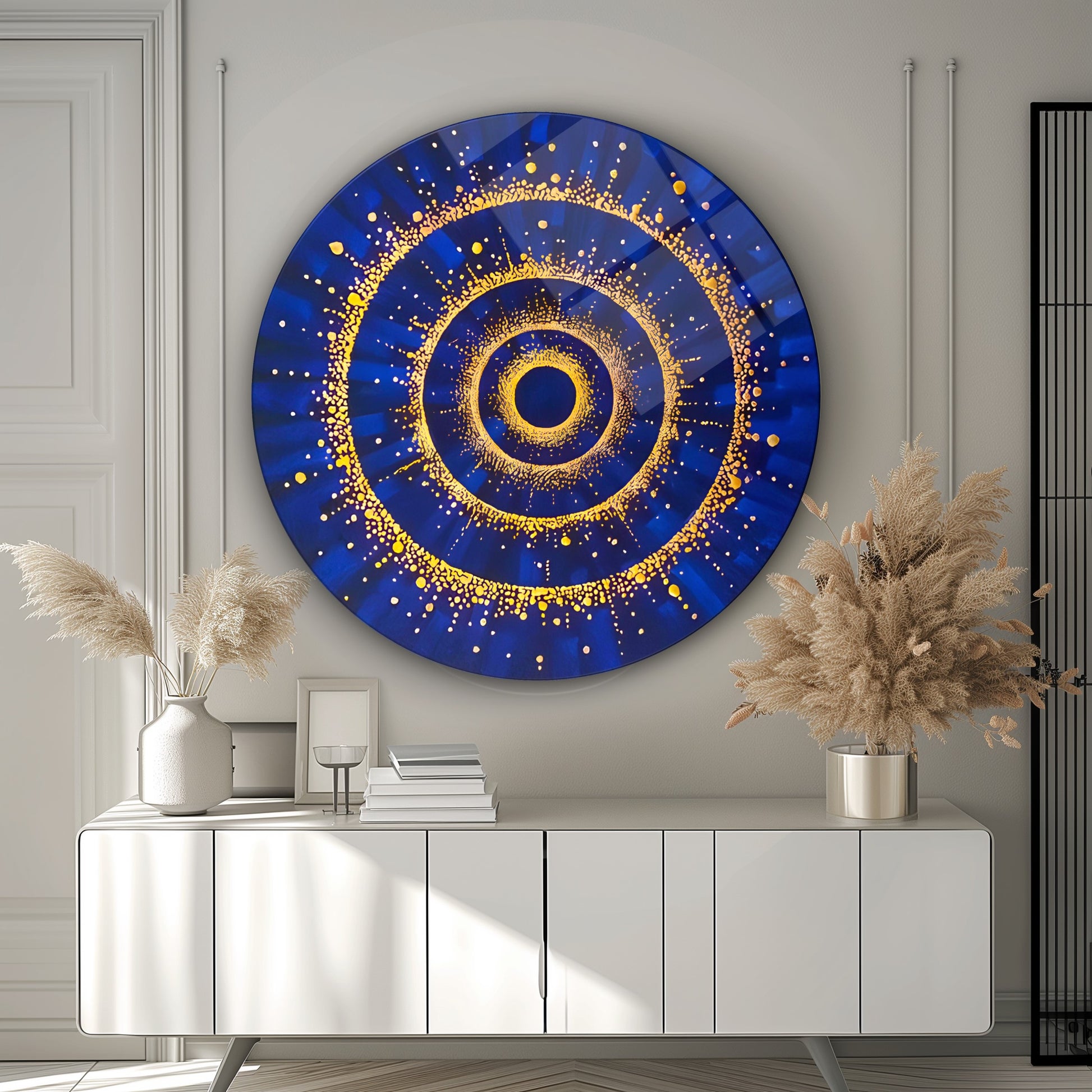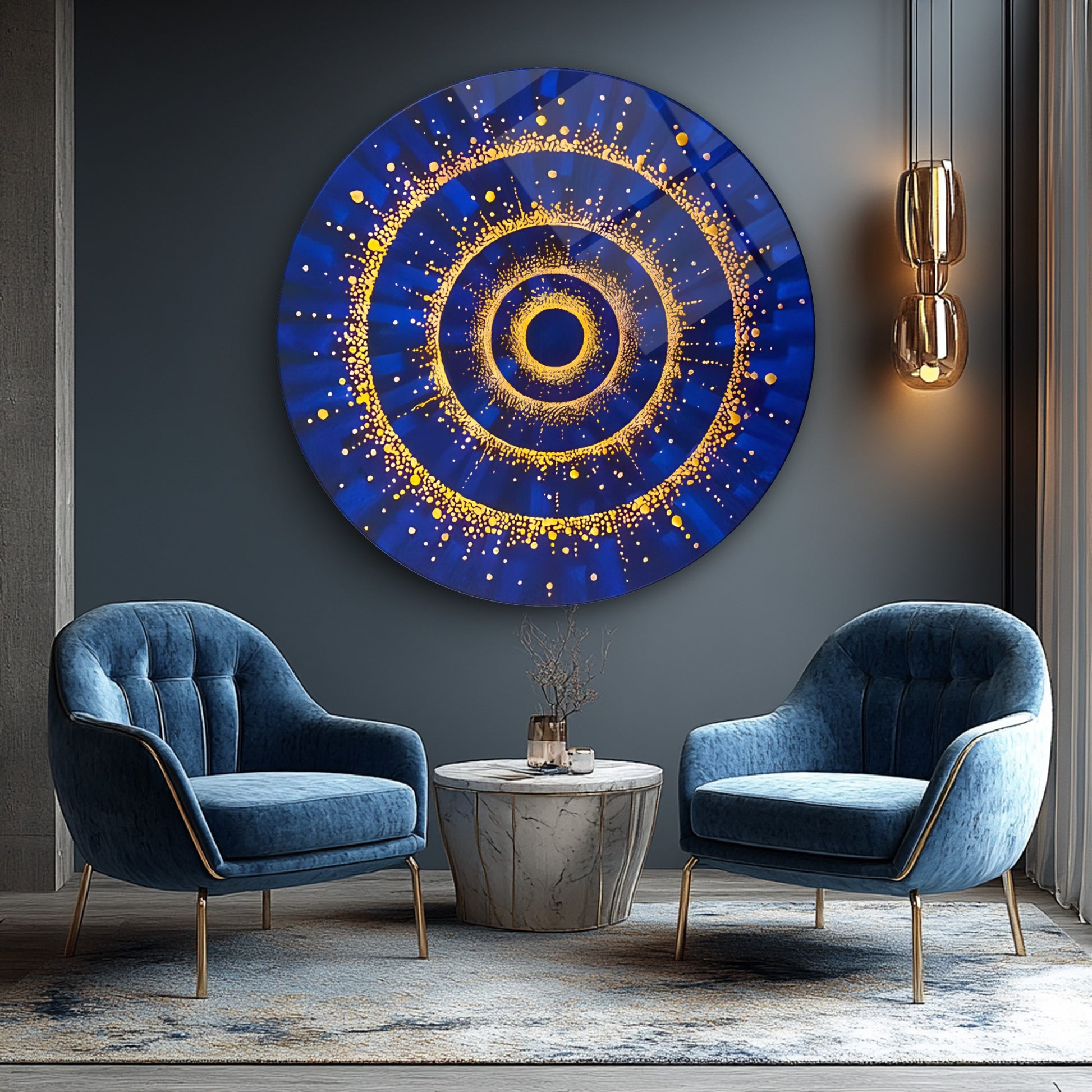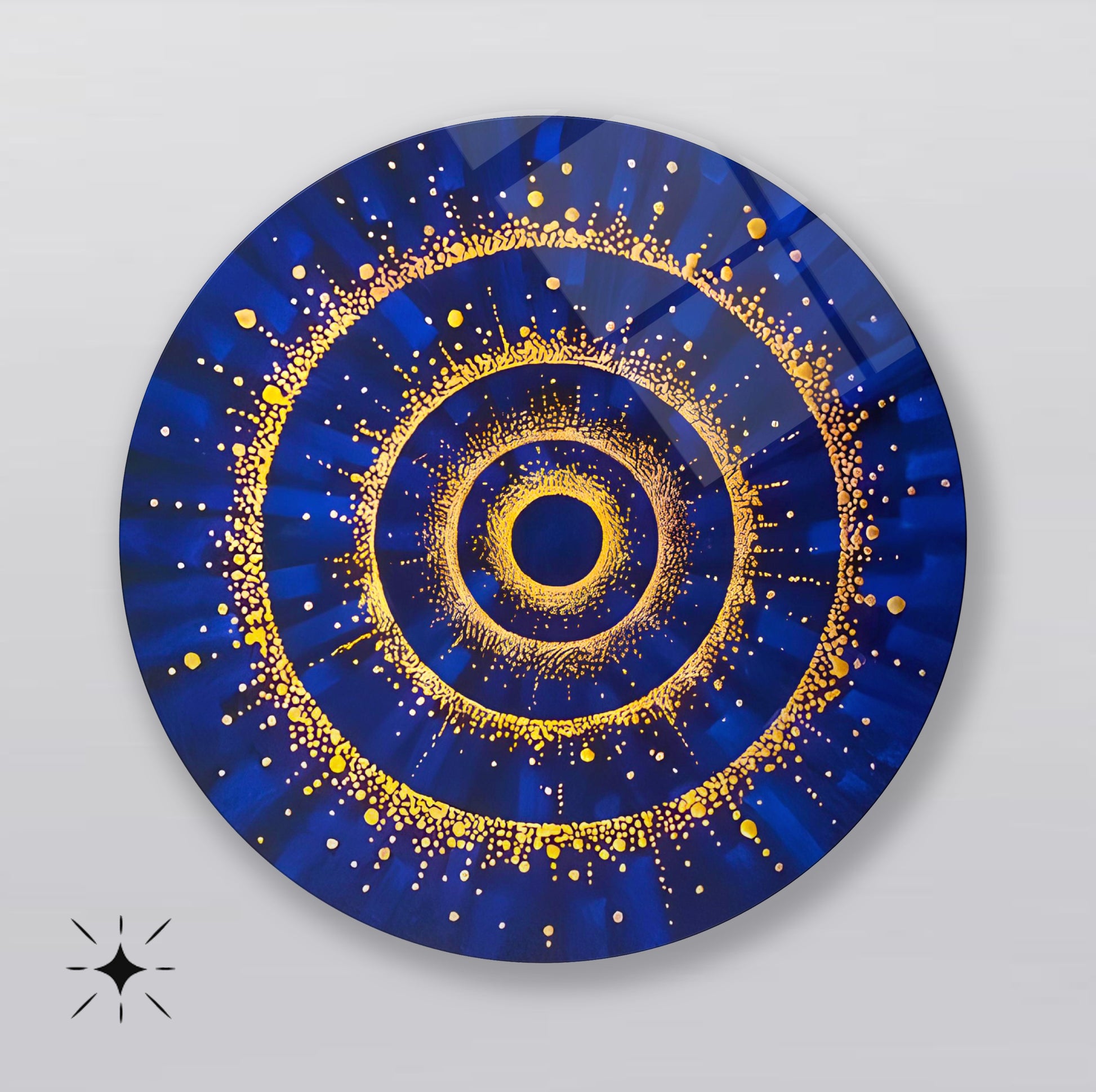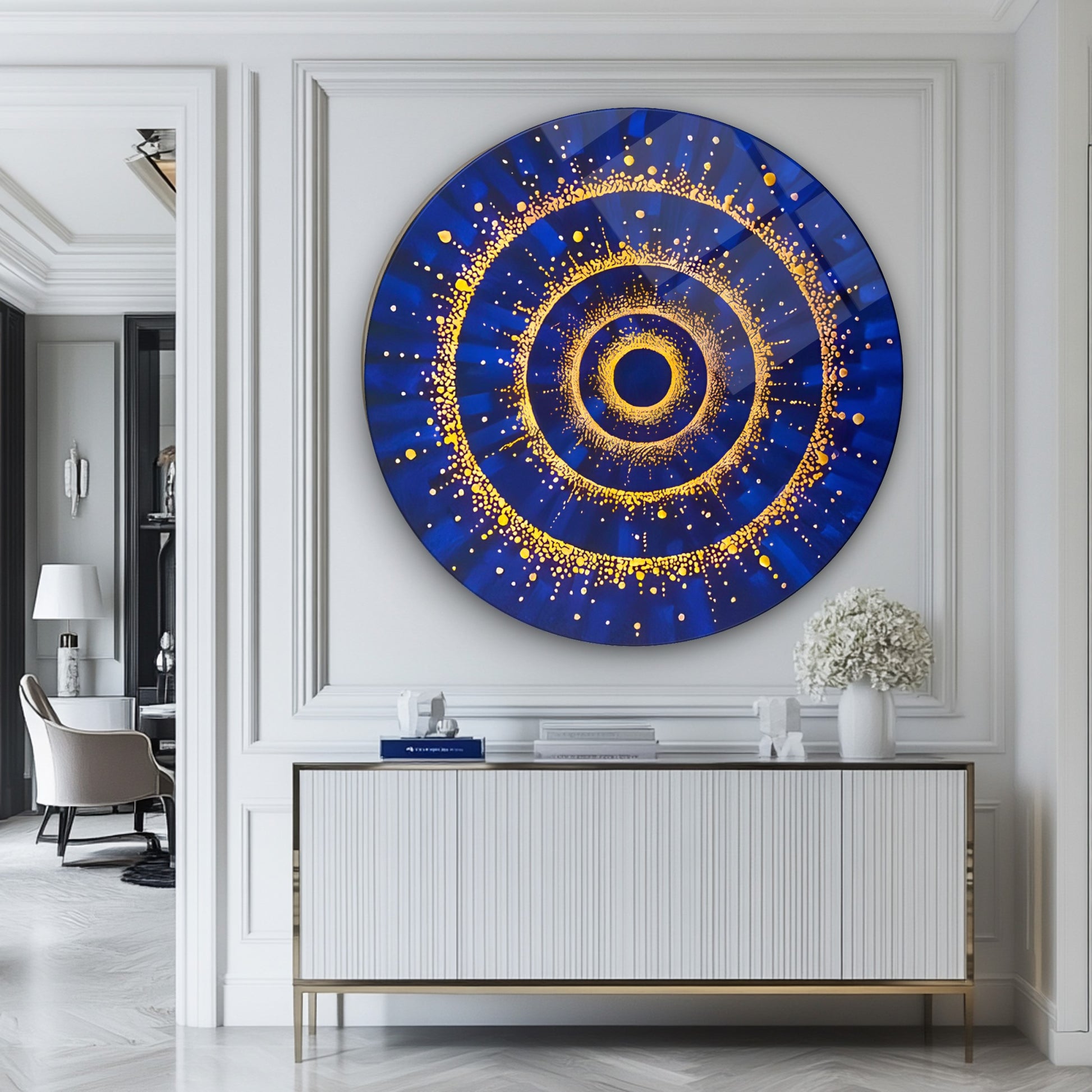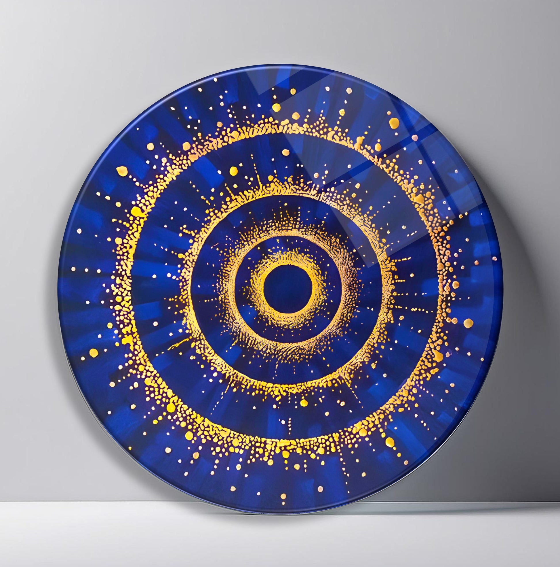 Soyut Mavi Gold Yuvarlak Cam Tablo