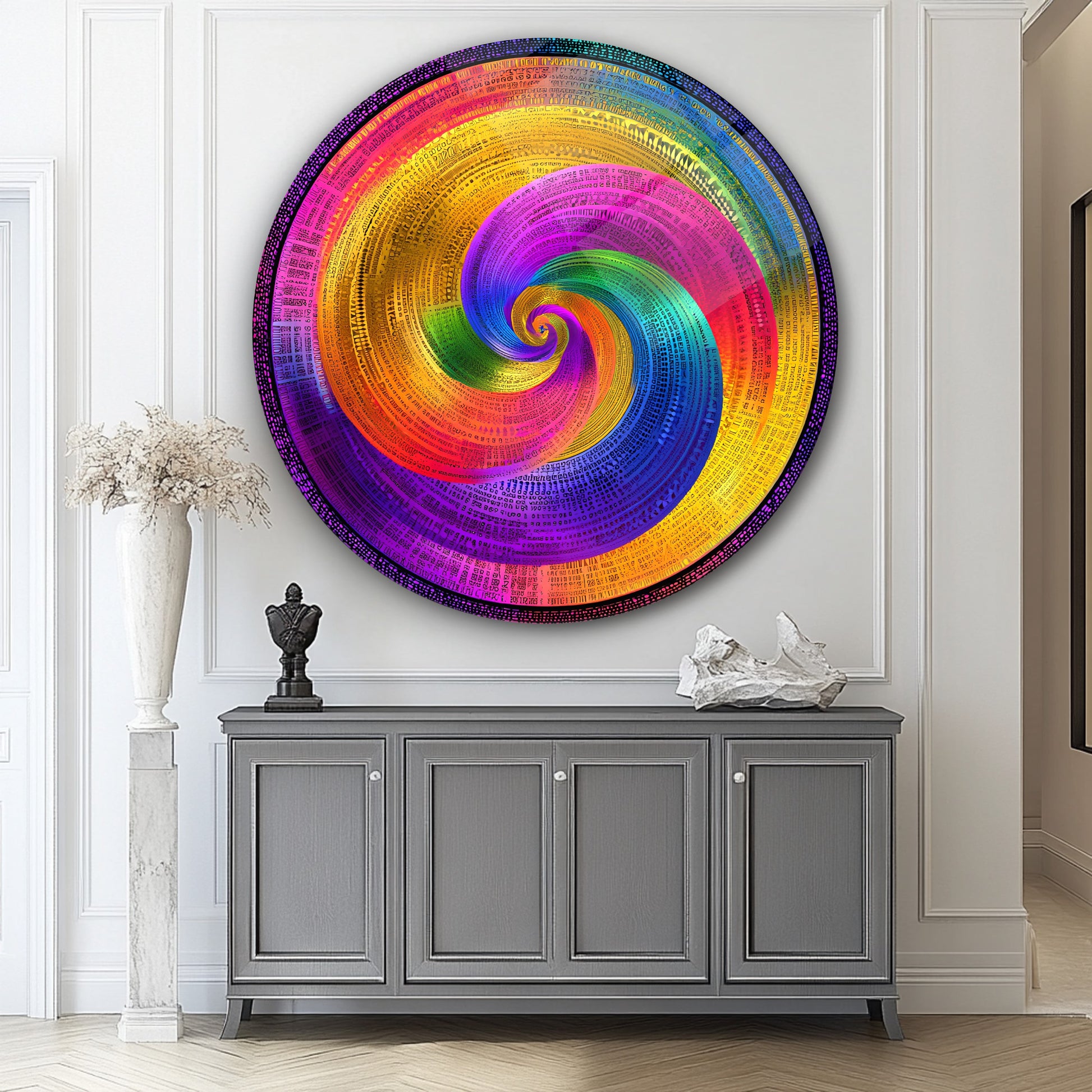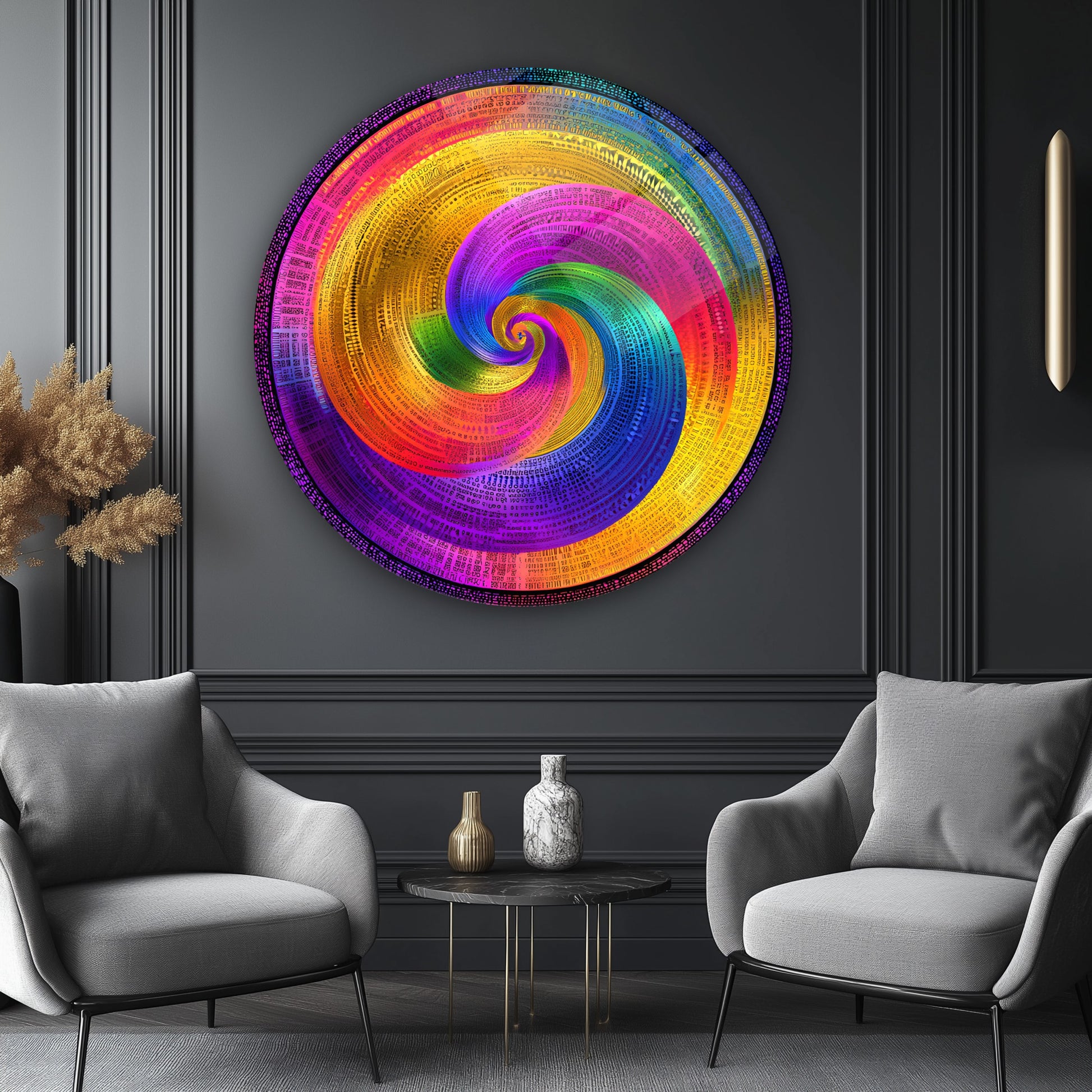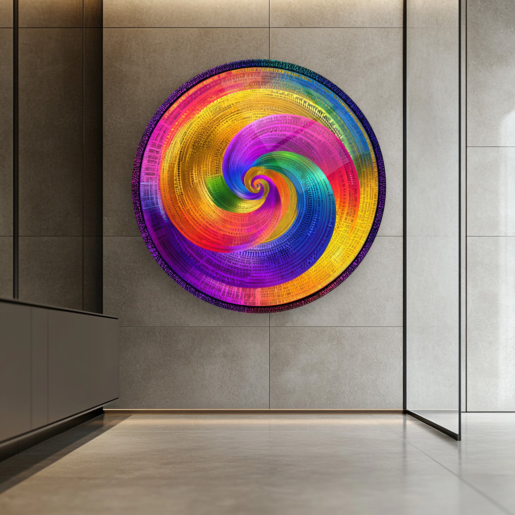 Neon Renkli Soyut Yuvarlak Cam Tablo