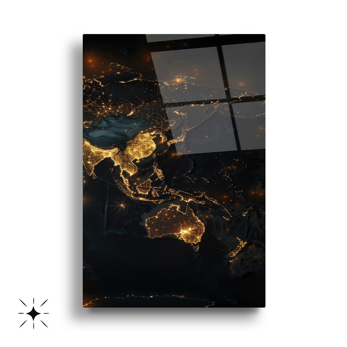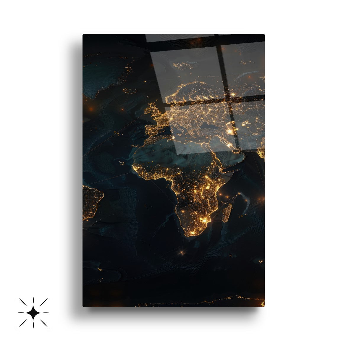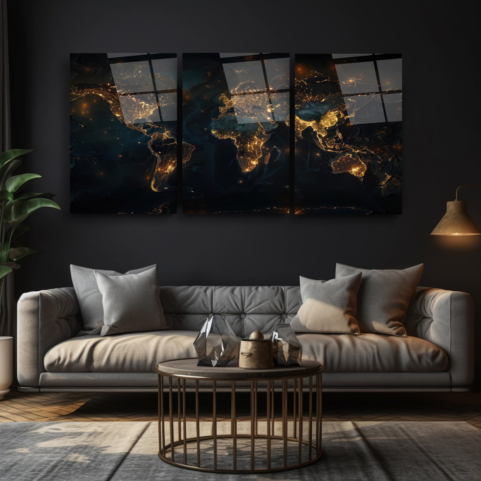 Siyah Gold Dünya Haritası Üçlü Set Cam Tablo