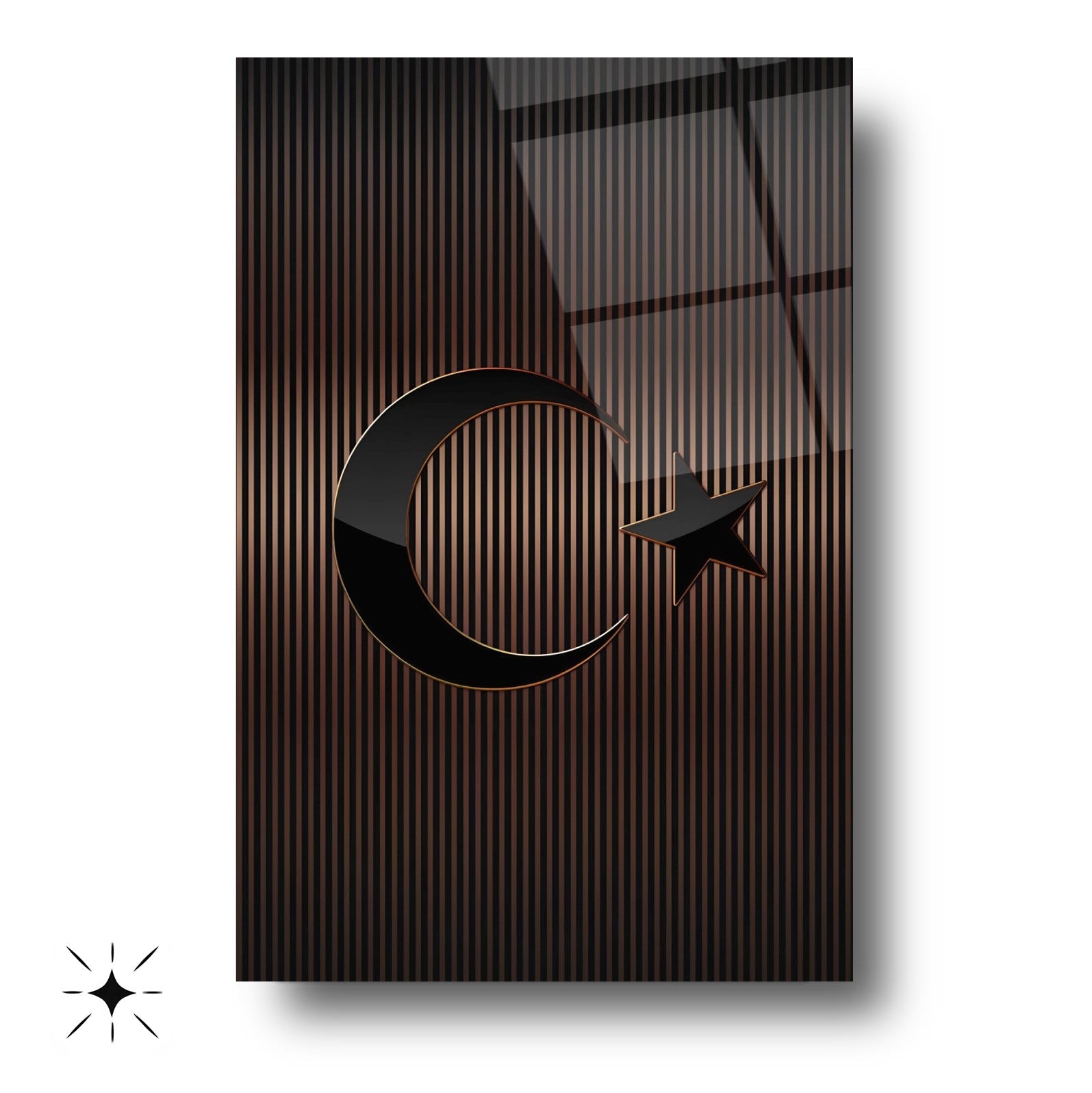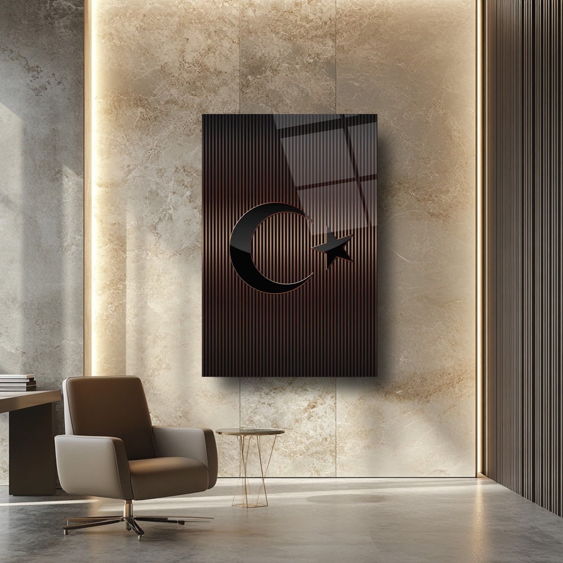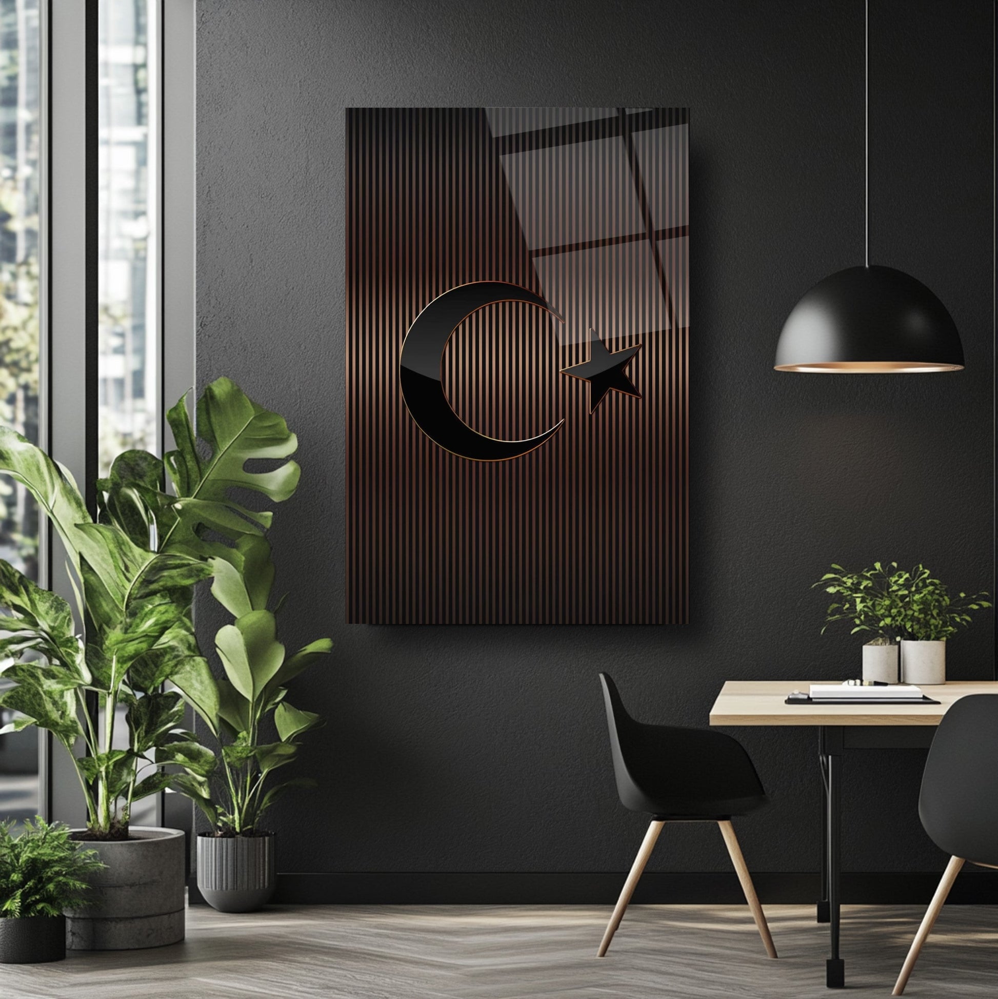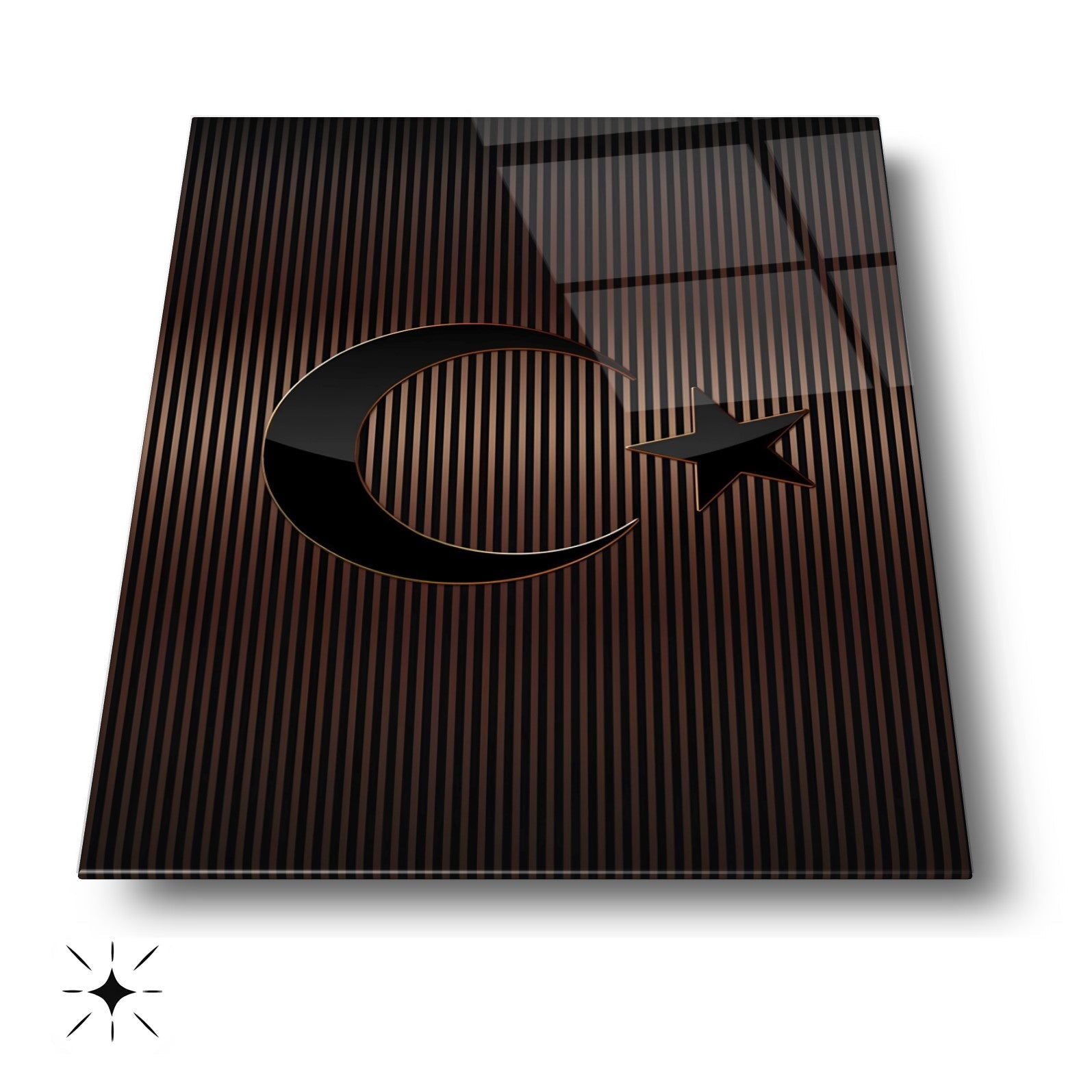 Mekânınıza prestijli bir dokunuş katın! Kahverengi tonlarındaki çizgili desen, Türk Bayrağı'nın zarif bir yorumunu sunar. Ofis ve makam odalarınızda şıklığıyla öne çıkar. UV baskı teknolojisiyle uygulanan yüksek çözünürlüklü baskı, renklerin solmasını engeller ve uzun ömürlü kullanım sağlar. Kırılmaz temperli cam yüzeyi, suya, neme ve çizilmeye karşı dayanıklıdır. Kolay montajı sayesinde hemen duvarınıza asılabilir. Evinize veya iş yerinize modern bir atmosfer kazandırmak için bu tablo mükemmel bir tercih olacaktır.