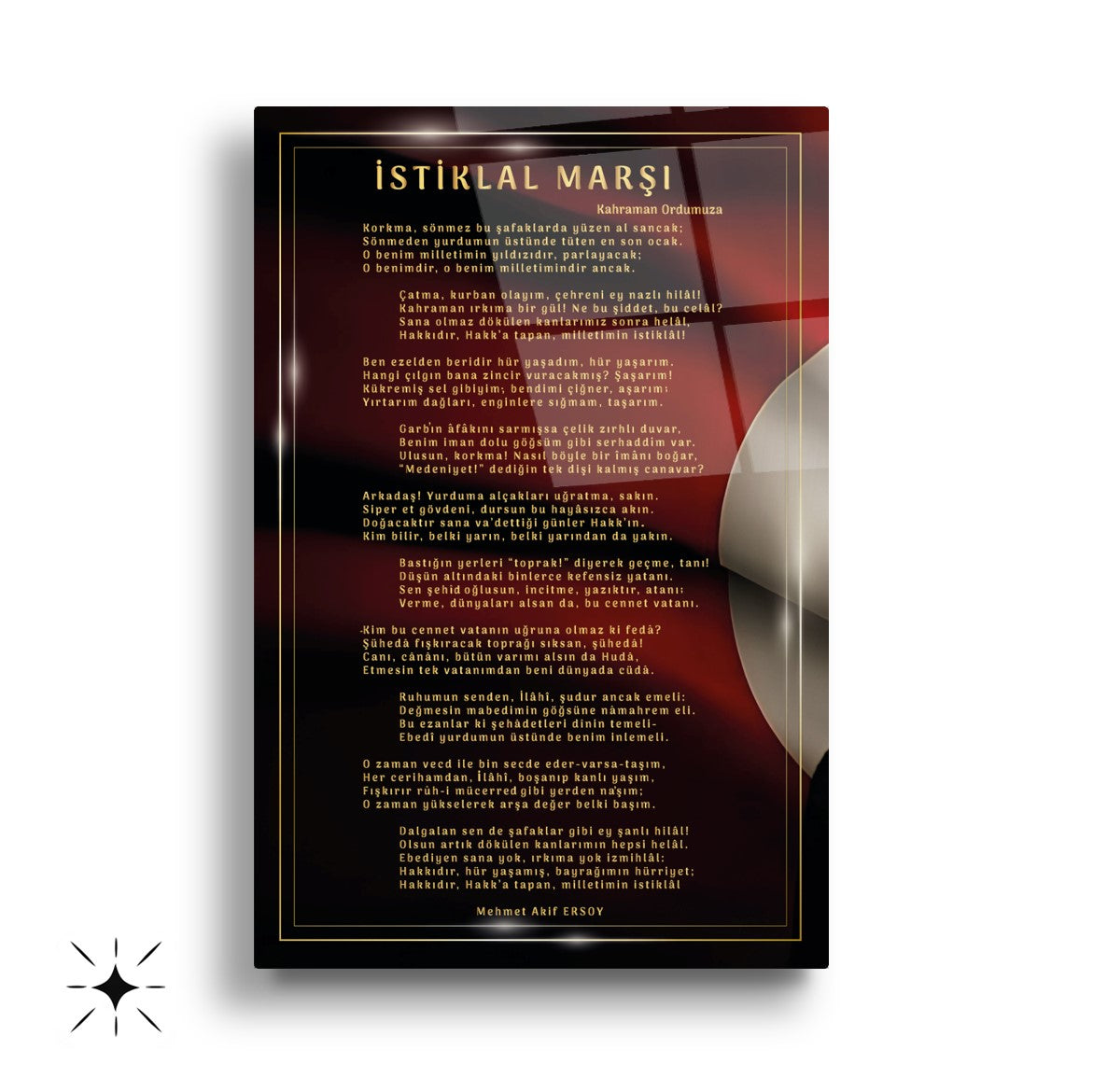 Okullar, kolejler, makam odaları ve kurumsal ofisler için özel olarak tasarlanmış bu modern üçlü set gerçek cam tablo ile mekanlarınıza anlam katın. Atatürk köşesi ve makam odası dekorasyonu arayışında olanlar için mükemmel bir seçim olan bu set, İstiklal Marşı'mızın coşkusunu ve Atatürk'ün Gençliğe Hitabesi'nin yol gösteren sözlerini bir araya getiriyor.