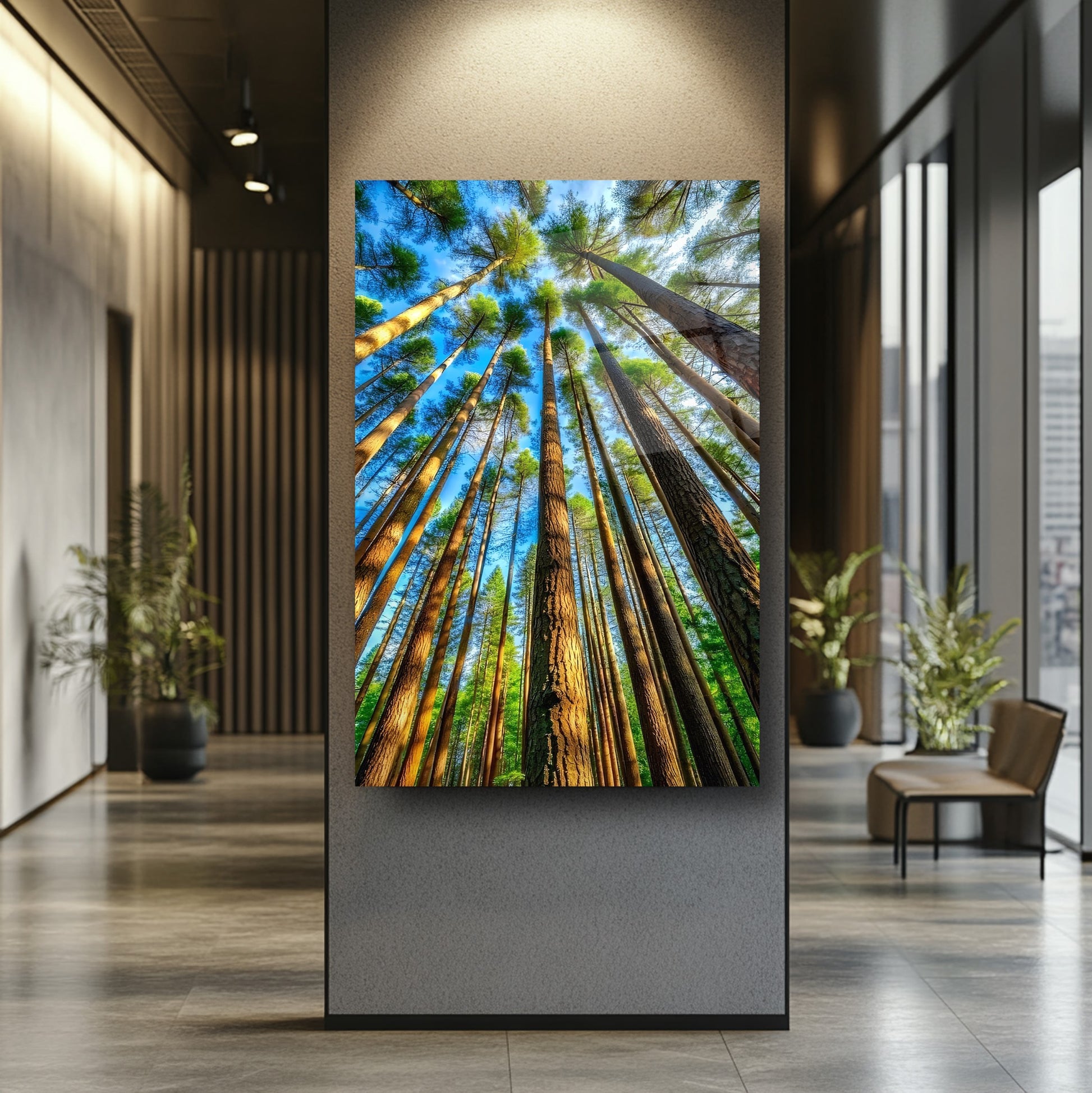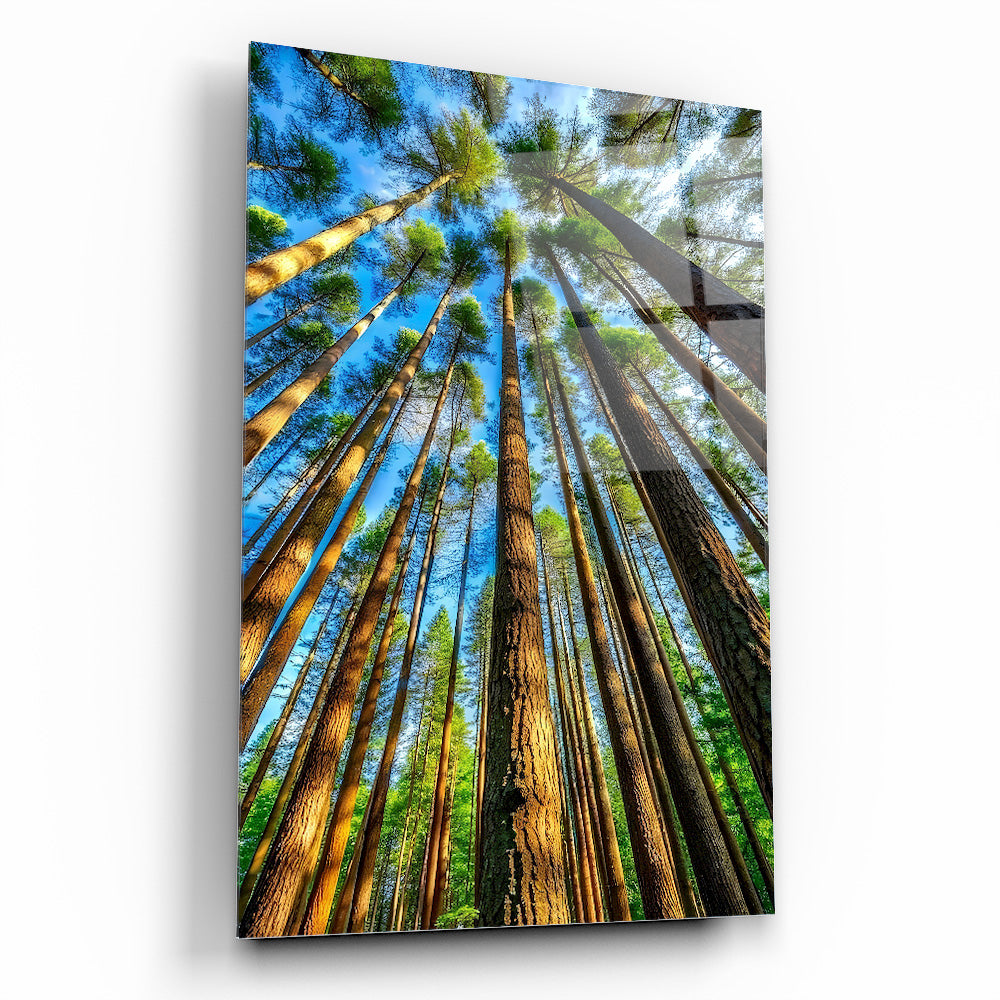 Mekanlarınıza Doğanın Derinliğini Taşıyın: Orman Ağaç Gökyüzü Manzarası Cam Tablo