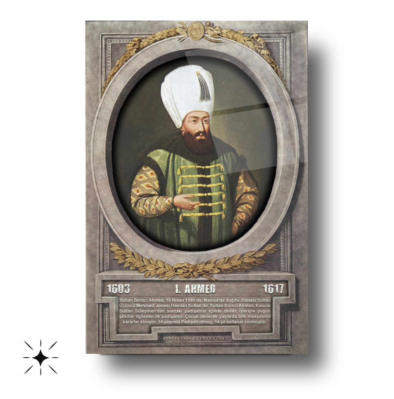 CamDeko'dan Osmanlı İmparatorluğu'nun önemli şahsiyetlerinden biriyle mekanlarınızı zenginleştiren özel bir eser: Osmanlı Padişahı I. Ahmed Modern Kırılmaz Cam Tablo! Sultanahmet Camii'ni yaptıran ve Osmanlı'ya mimari bir miras bırakan I. Ahmed'in görkemli portresiyle okul, makam odası, ofis veya evinize tarihi bir zarafet ve ilham katın.