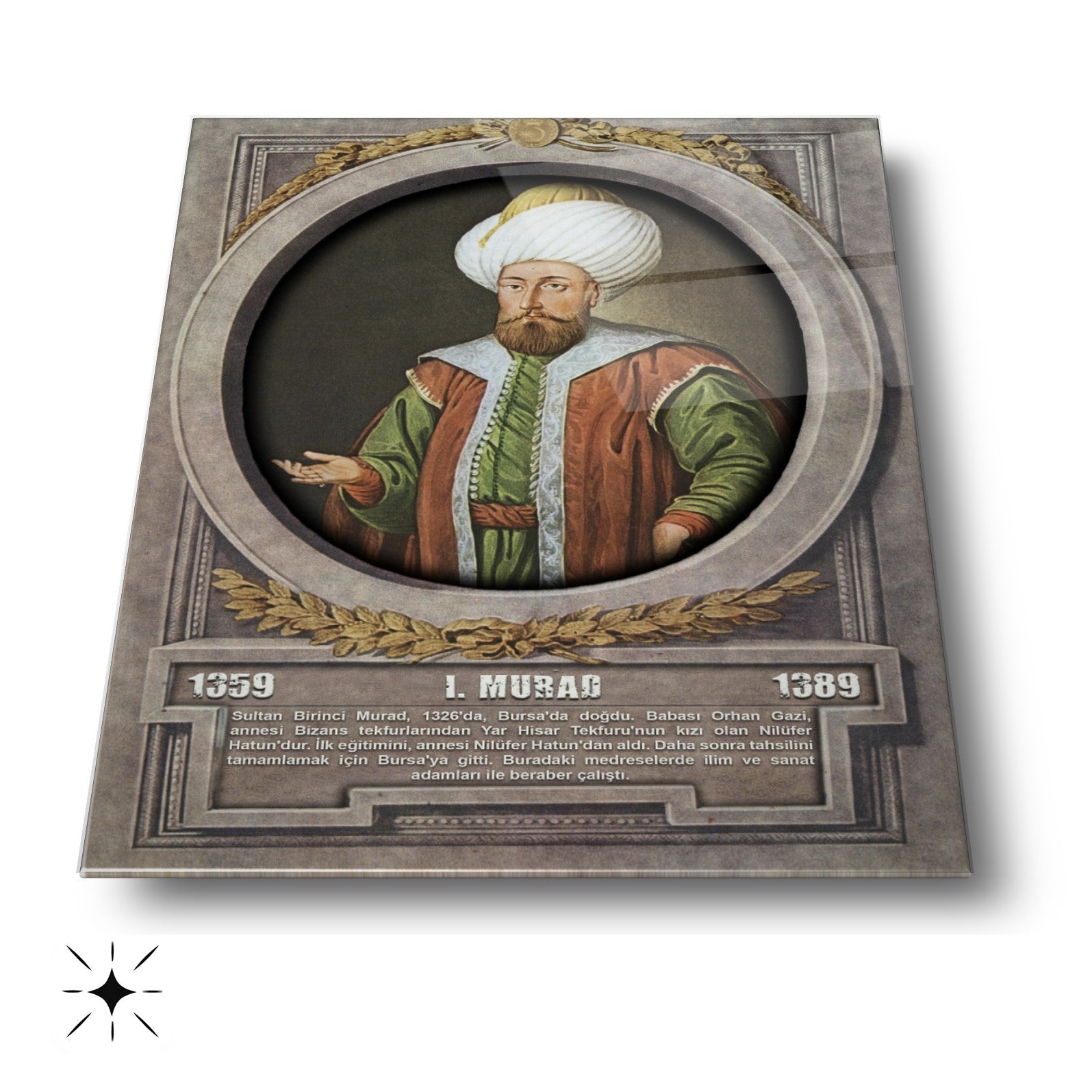 CamDeko'dan tarihimizin önemli figürleriyle buluşan özel bir eser: Osmanlı Padişahı I. Murad Modern Kırılmaz Cam Tablo! Osmanlı Devleti'nin güçlü padişahlarından I. Murad'ın görkemli portresiyle okul duvarlarına, ofis veya evinize asalet ve ilham katın.