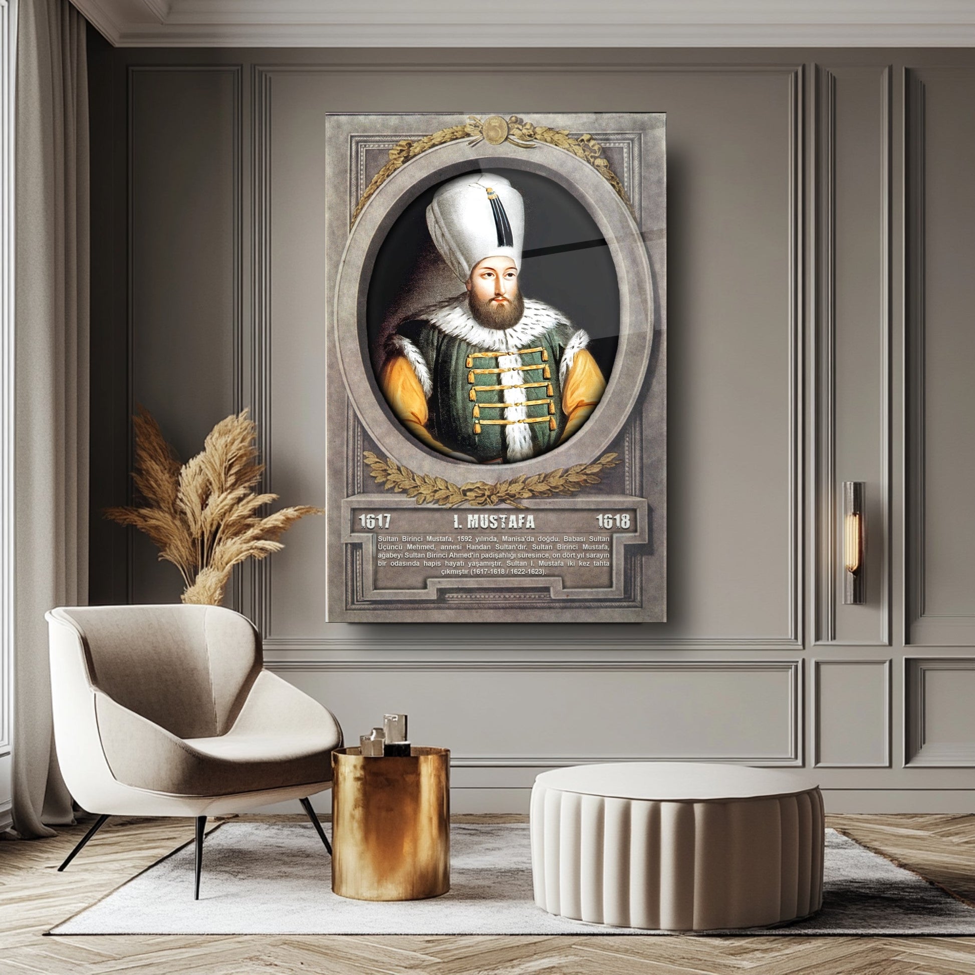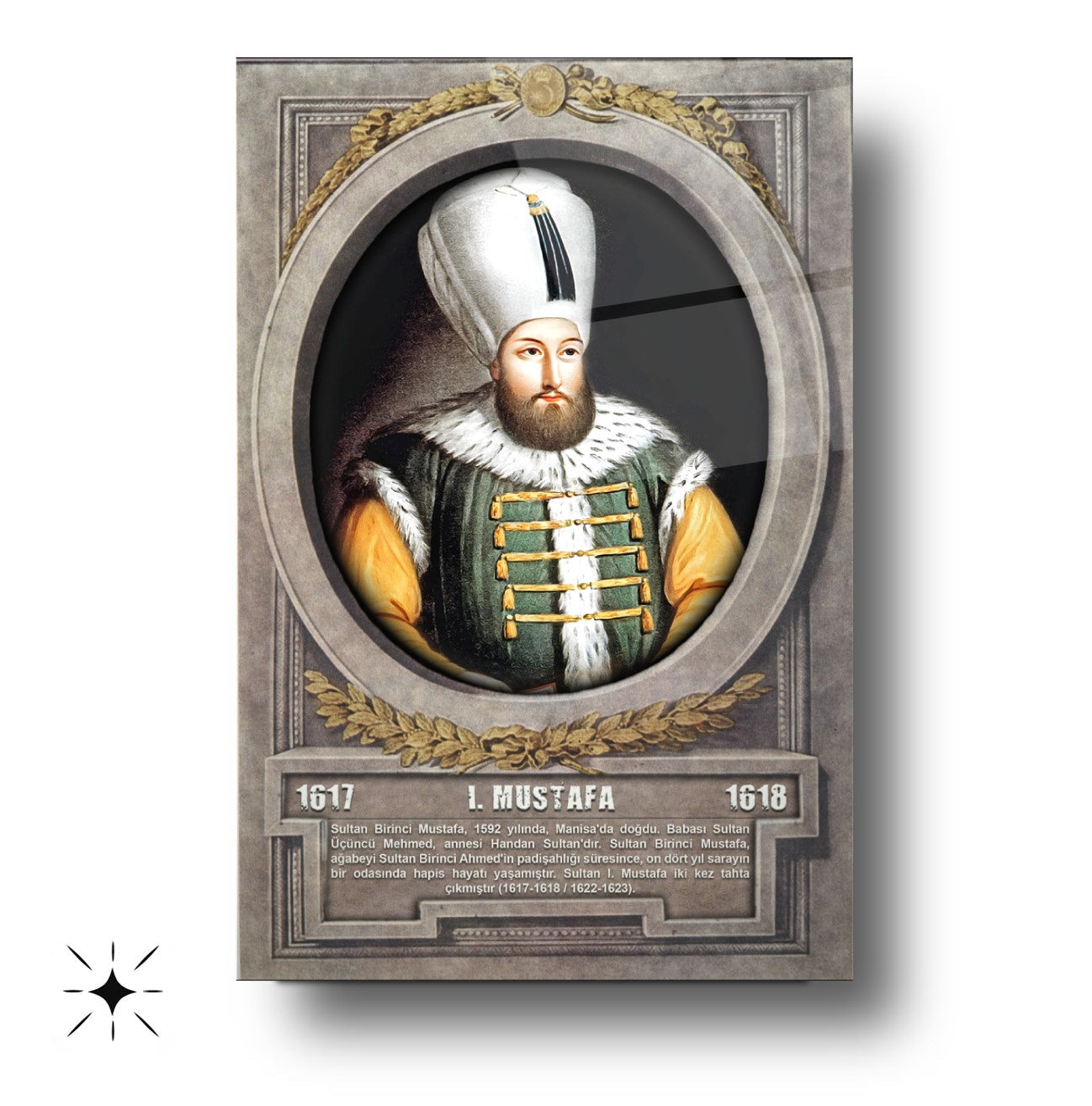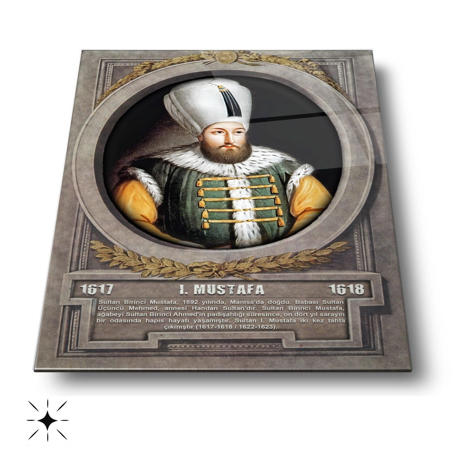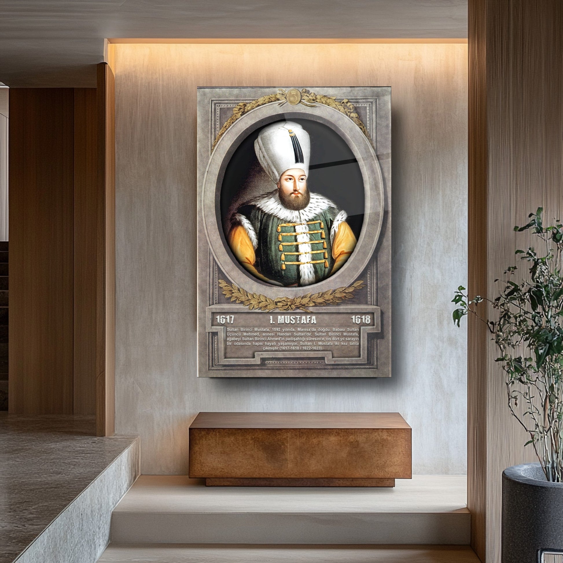 CamDeko'dan Osmanlı İmparatorluğu'nun önemli şahsiyetlerinden biriyle mekanlarınızı zenginleştiren özel bir eser: Osmanlı Padişahı I. Mustafa Modern Kırılmaz Cam Tablo! Tarihimizin özel dönemlerine ışık tutan I. Mustafa'nın portresiyle okul, ofis veya evinize tarihi bir derinlik ve estetik katın.