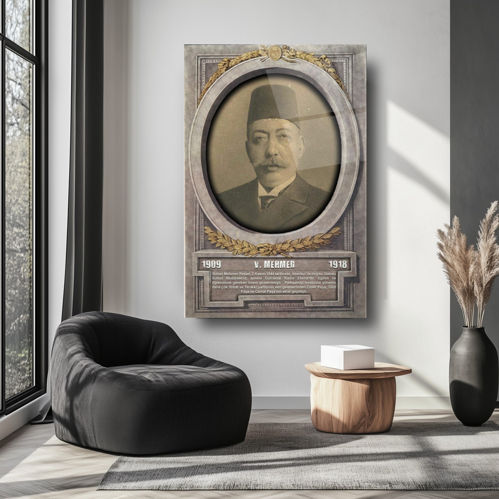 Son Dönem Padişahının Mirası: Sultan Mehmed Reşad Modern Kırılmaz Temperli Cam Tablo