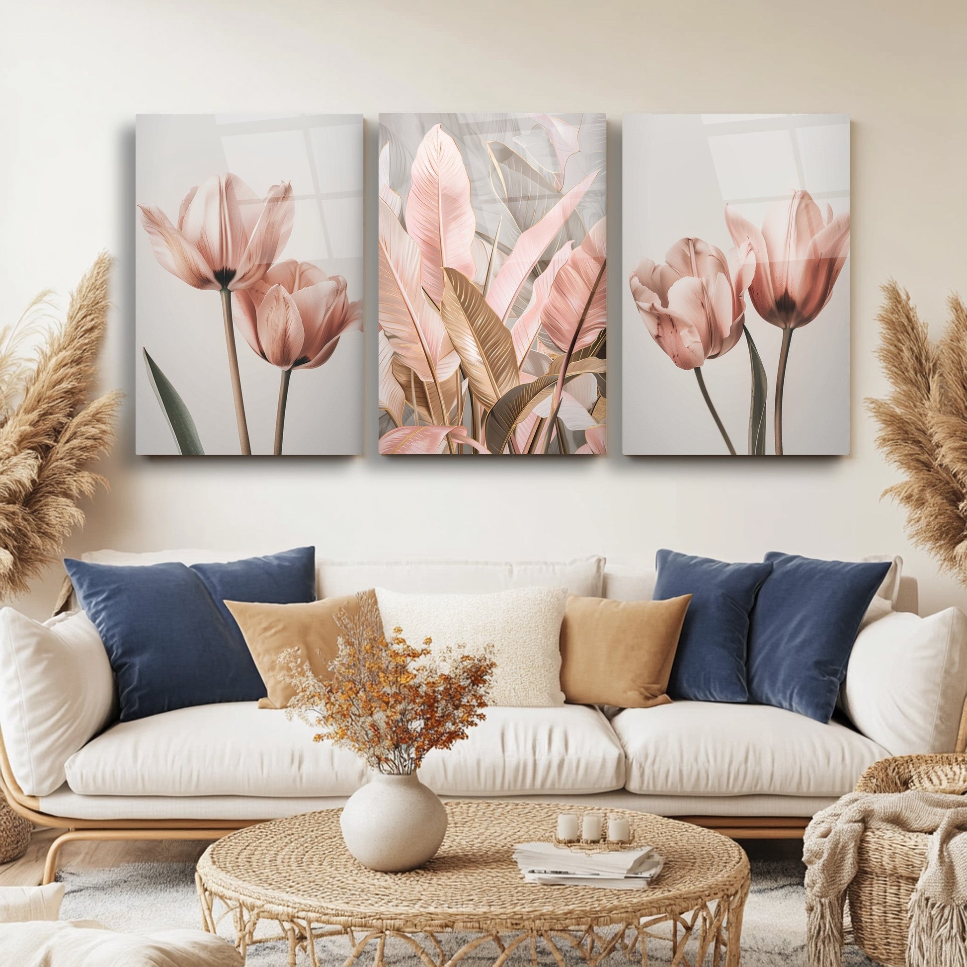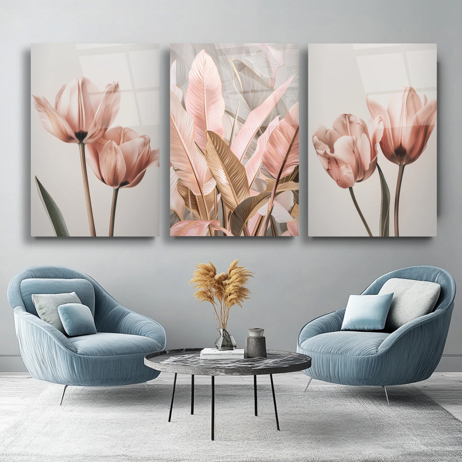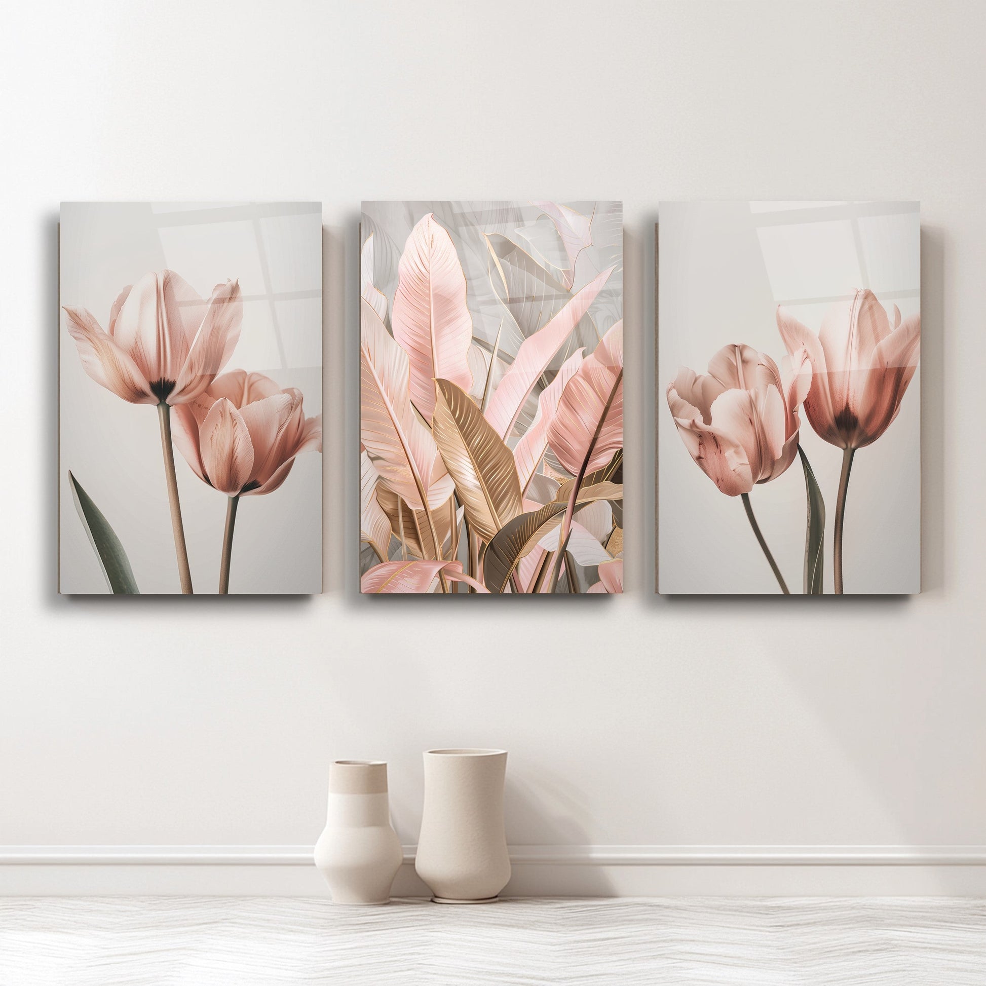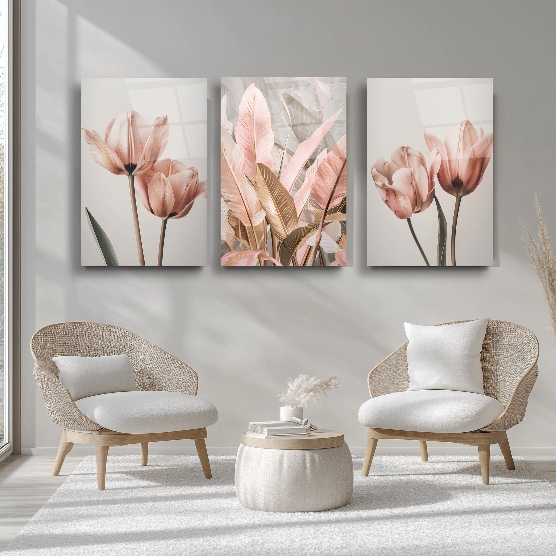 Canlı pembe lale çiçekleri, bu minimal tasarımlı büyük boy kırılmaz cam tablo setine zarif ve romantik bir hava kazandırır. Salon dekorasyonunda tazelik ve pozitif enerji arayanlar için mükemmel bir seçimdir. Temperli cam yüzeyiyle hem dayanıklı hem de göz alıcıdır. Doğallığı ve sadeliği buluşturan bu set, modern yaşam alanlarına estetik bir dokunuş sunar.