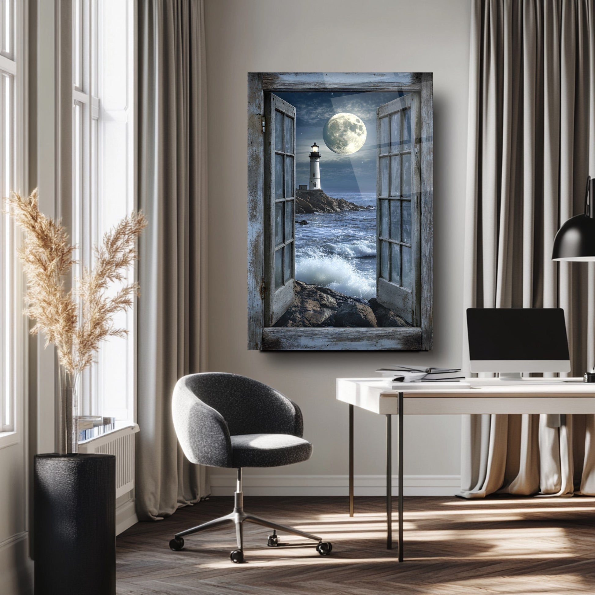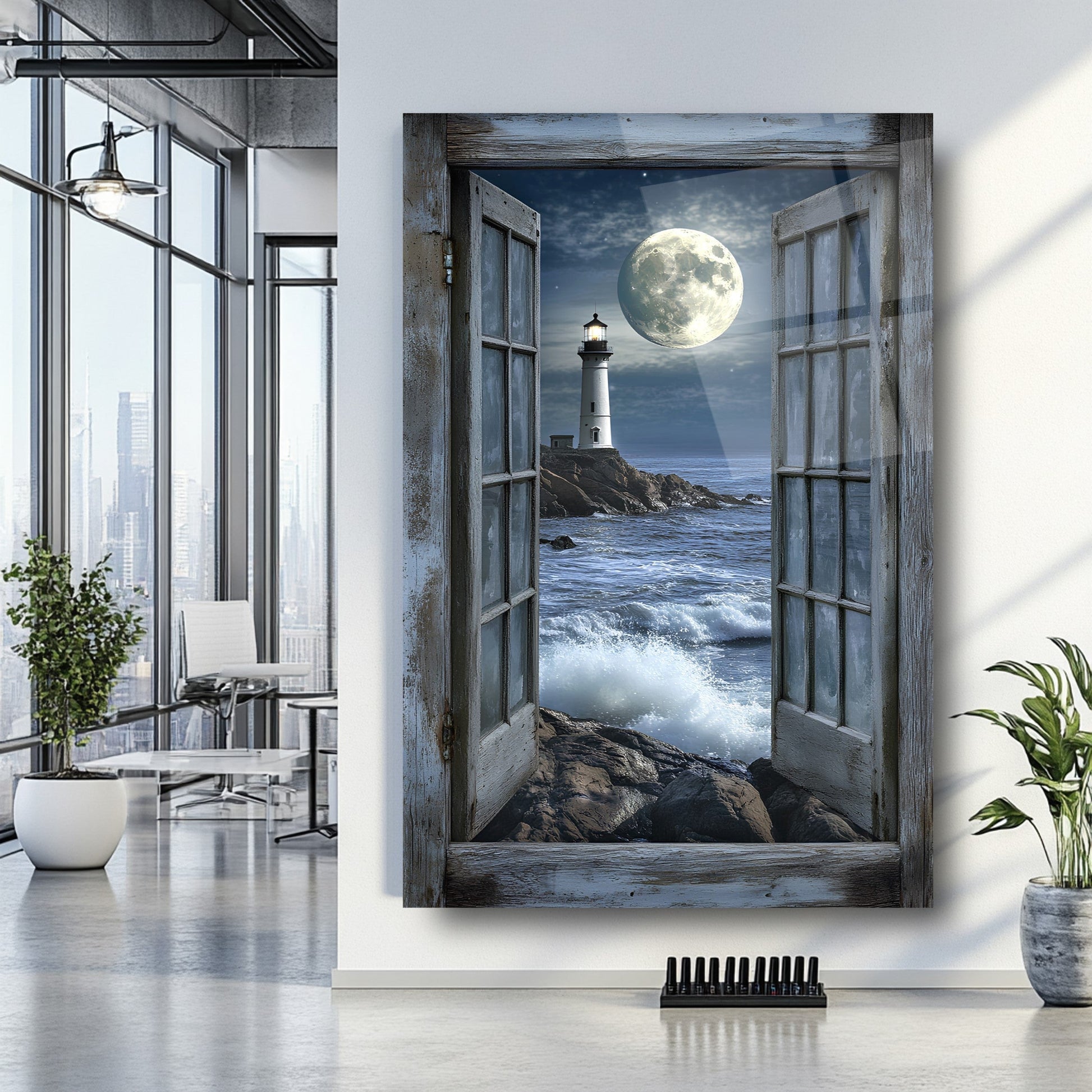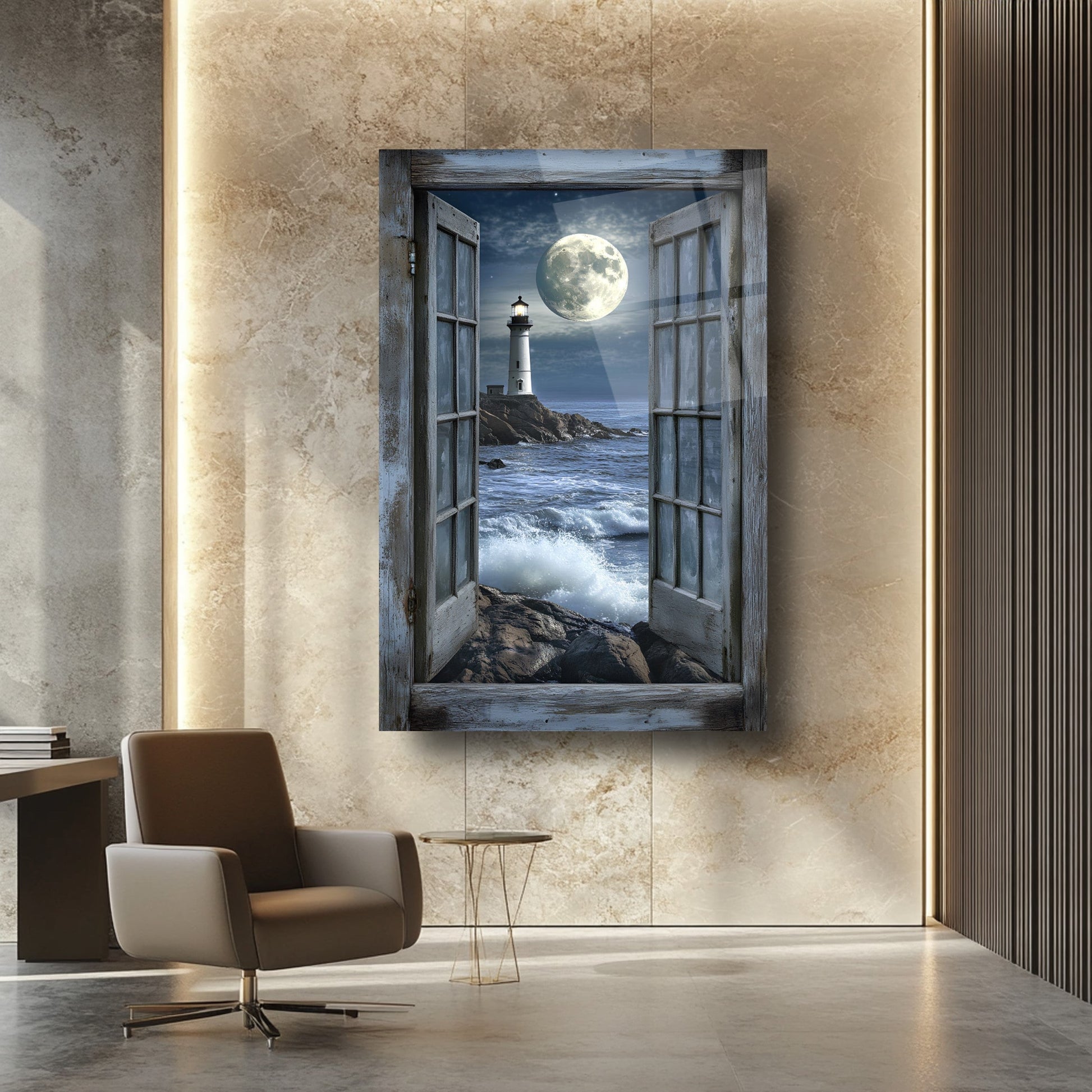 Mekanlarınıza Sonsuz Bir Deniz Manzarası: Pencere Görünümlü Deniz Feneri Cam Tablo