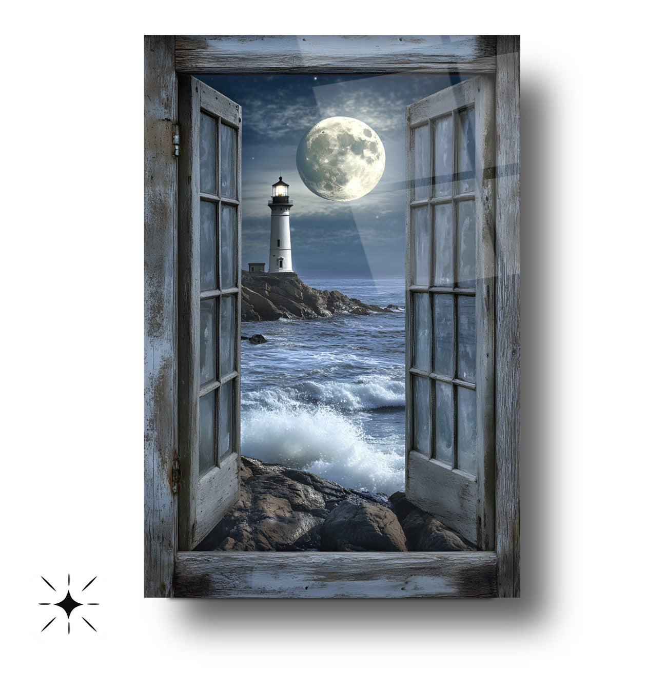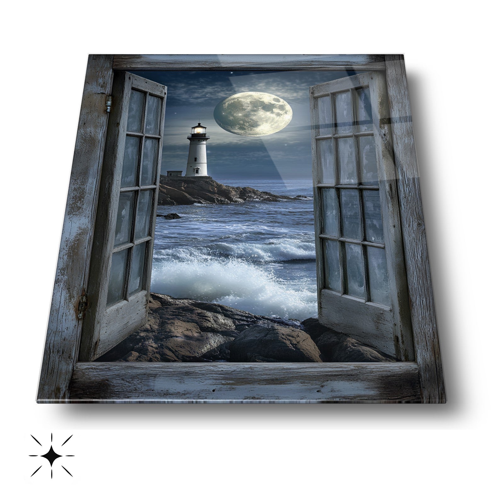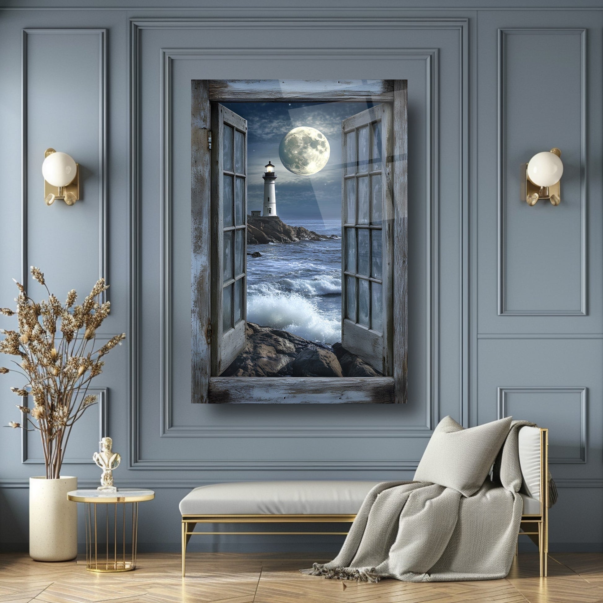 Mekanlarınıza Sonsuz Bir Deniz Manzarası: Pencere Görünümlü Deniz Feneri Cam Tablo