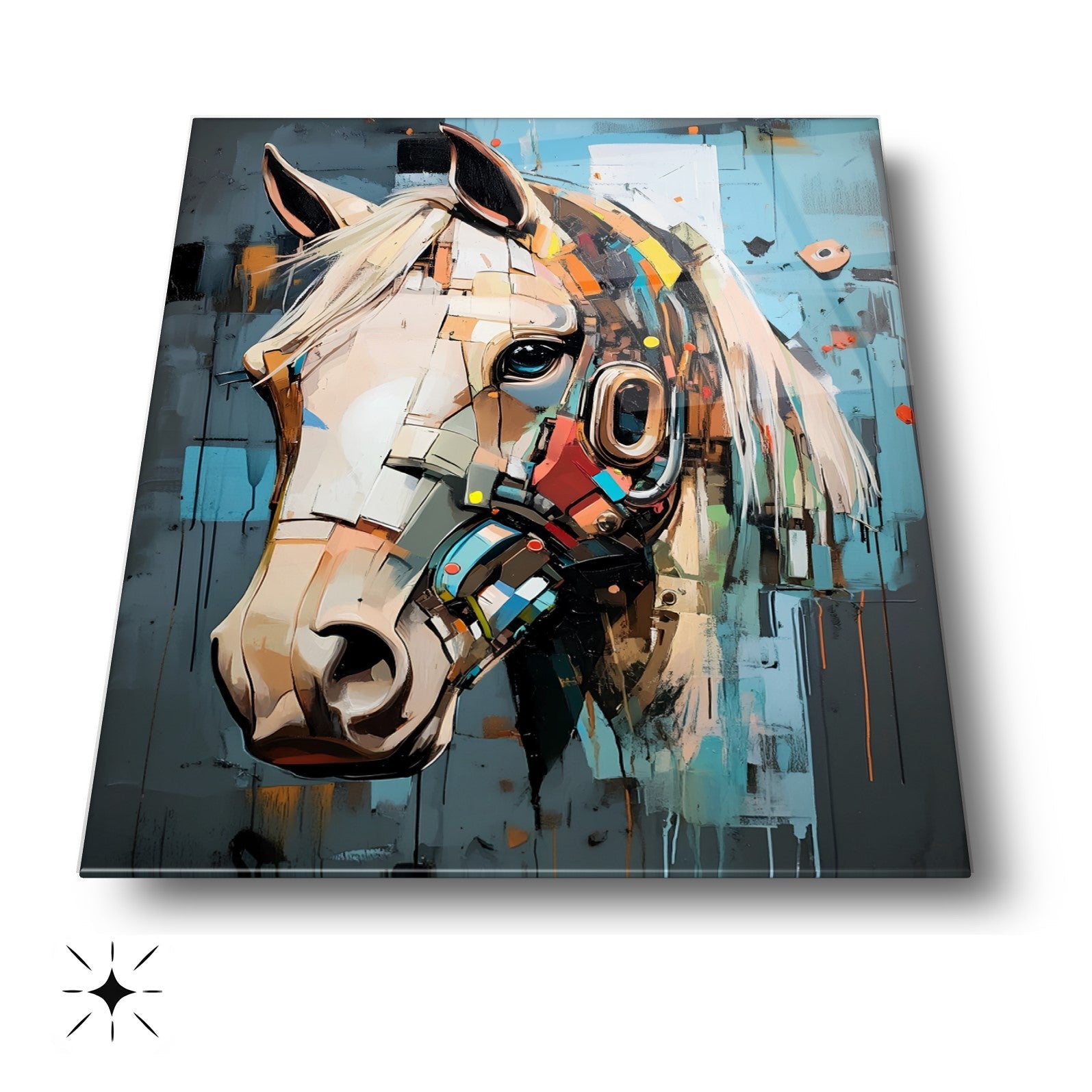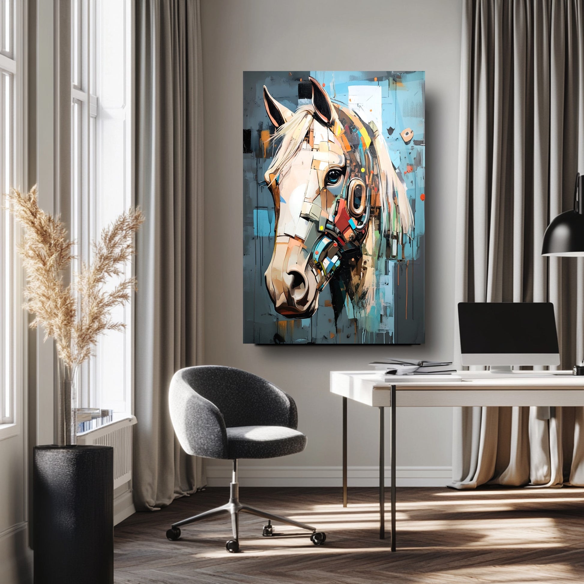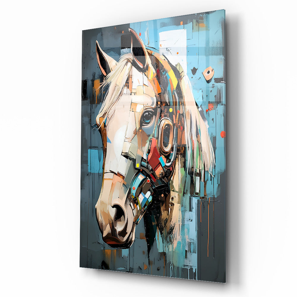 Mekanlarınıza Sanatsal Bir Canlılık Katın: Renkli Çizim At Beyaz Cam Tablo