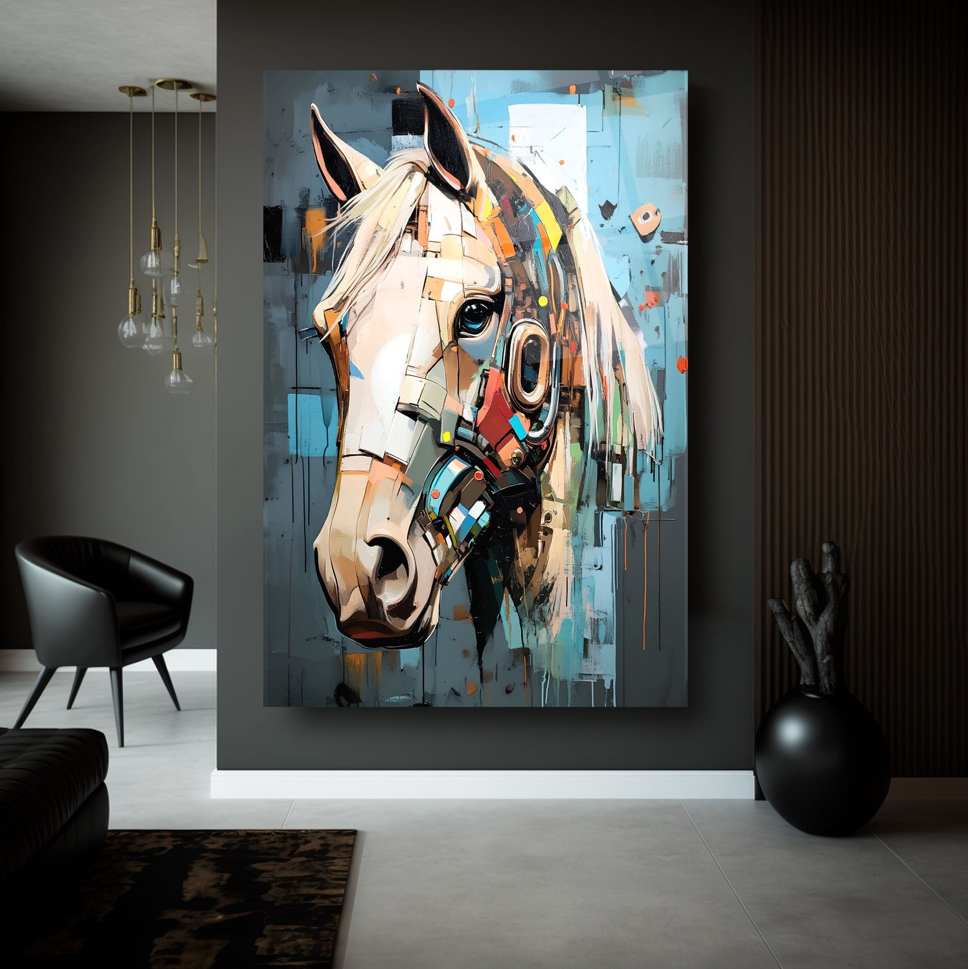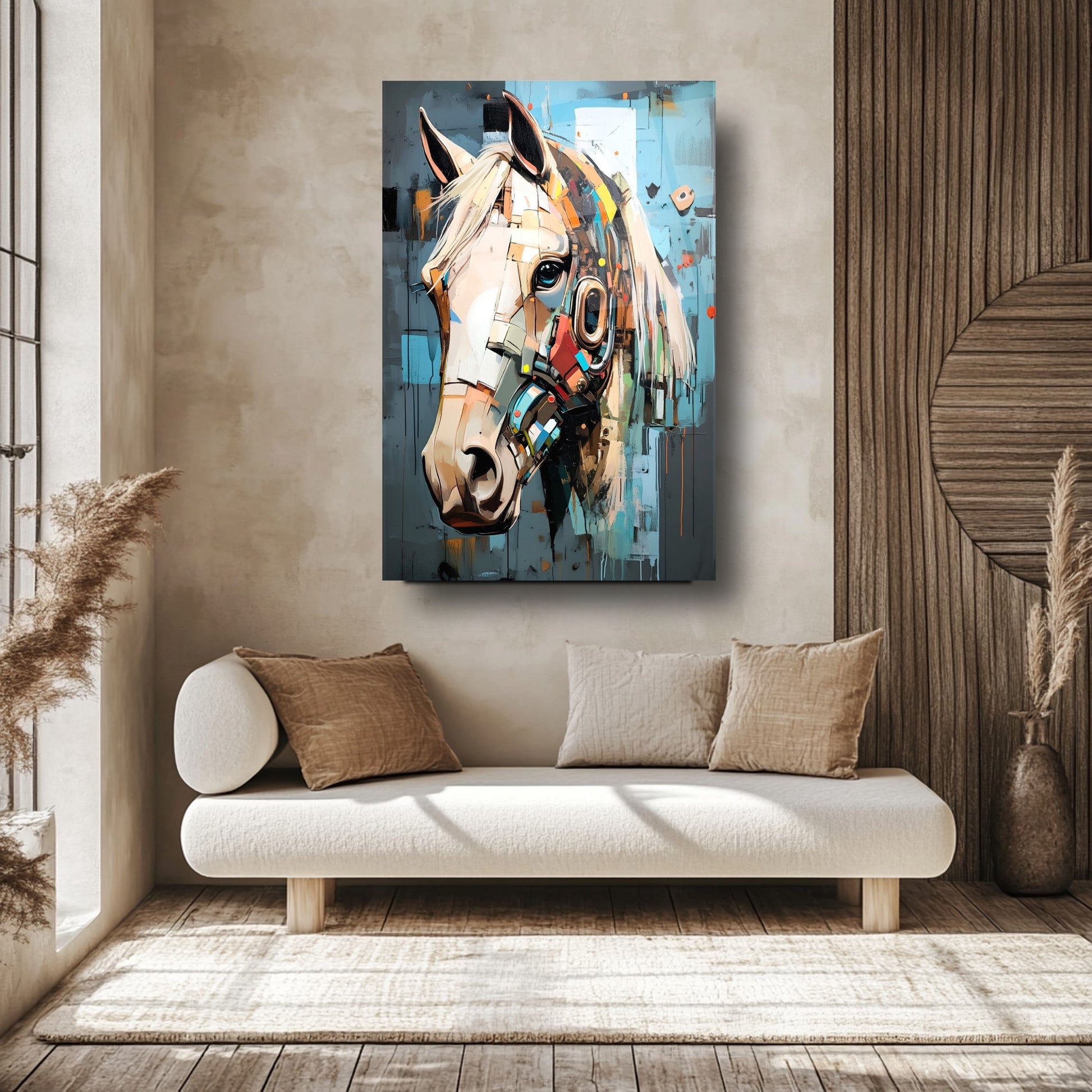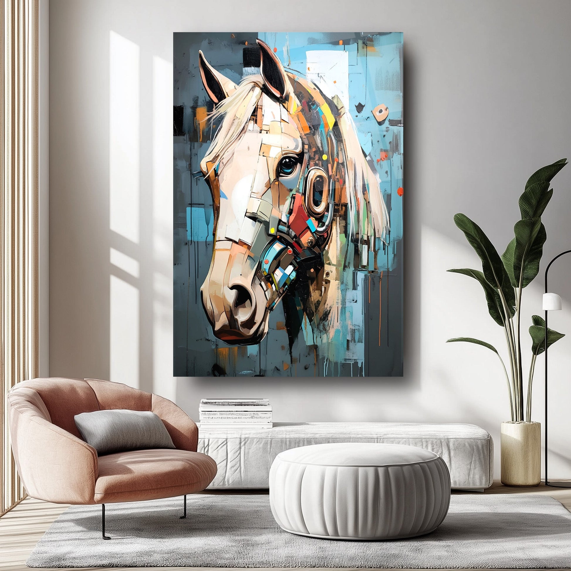 Mekanlarınıza Sanatsal Bir Canlılık Katın: Renkli Çizim At Beyaz Cam Tablo