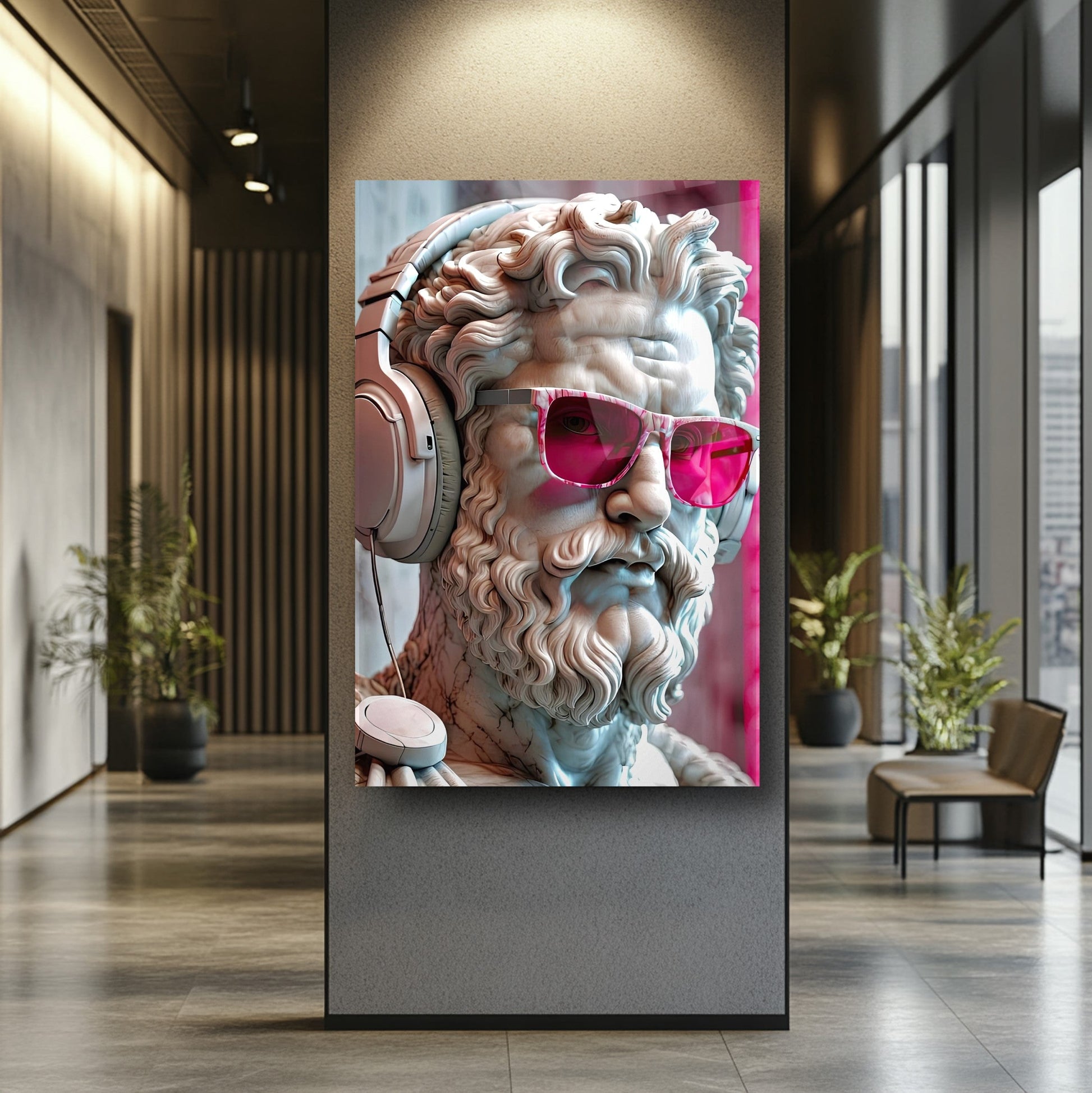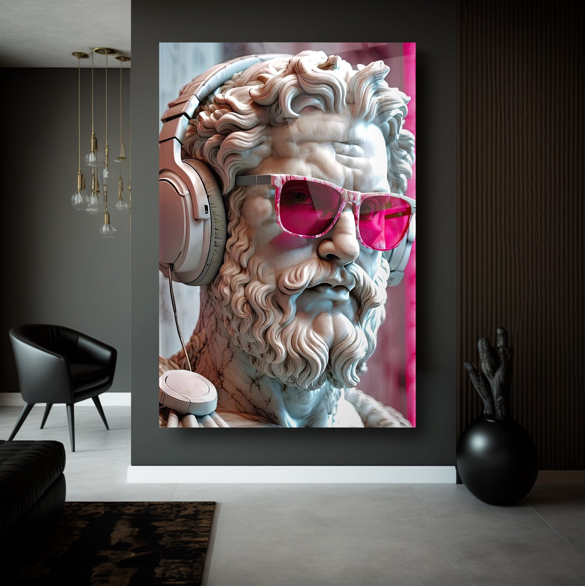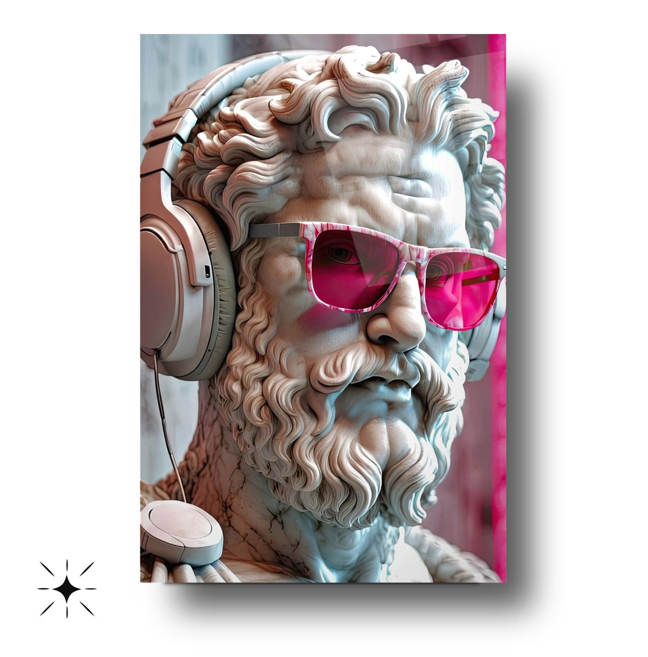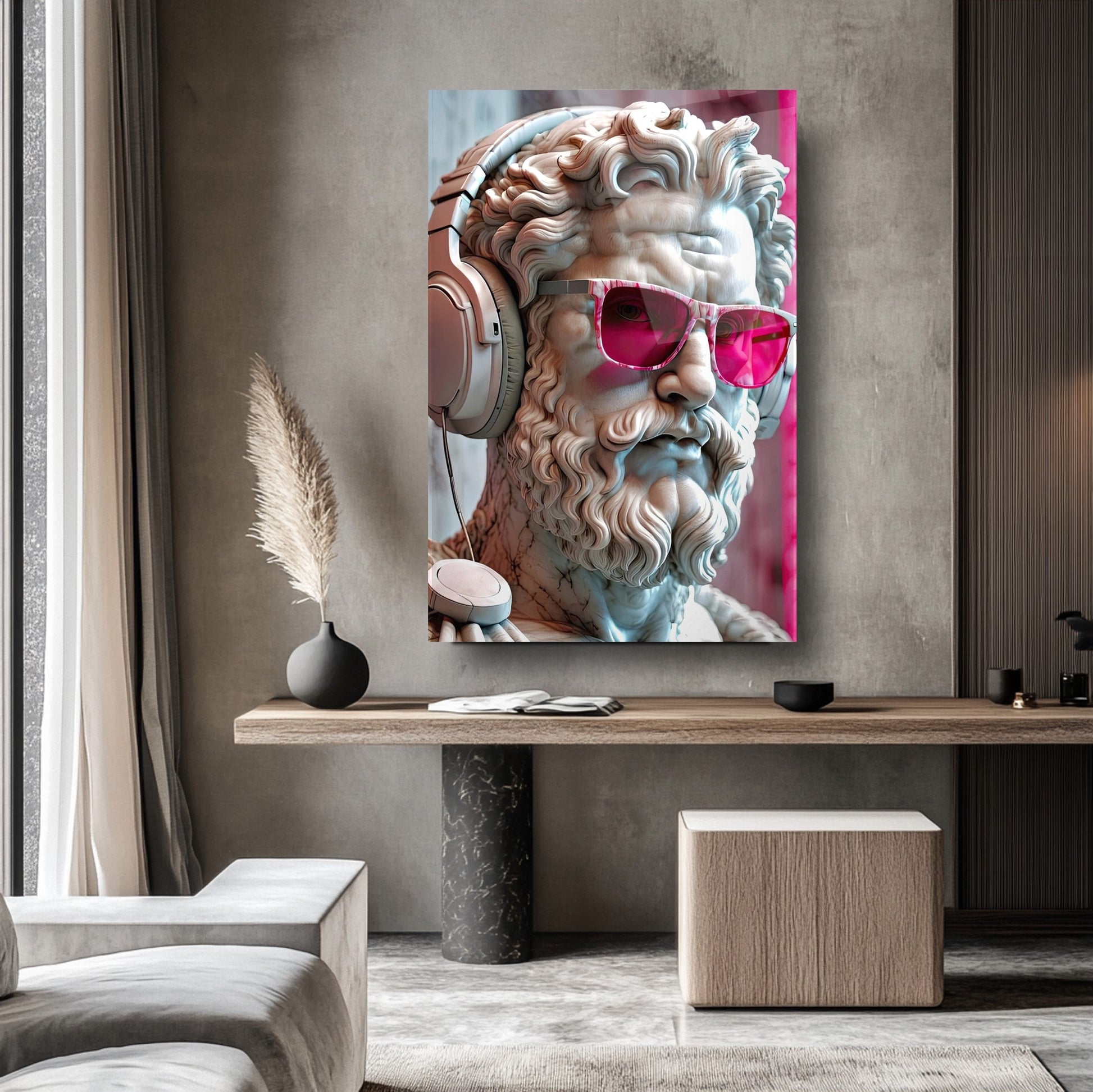 Mekanlarınıza Sanat, Müzik ve Renk Katın: Gözlüklü Kulaklıklı Heykel Cam Tablo