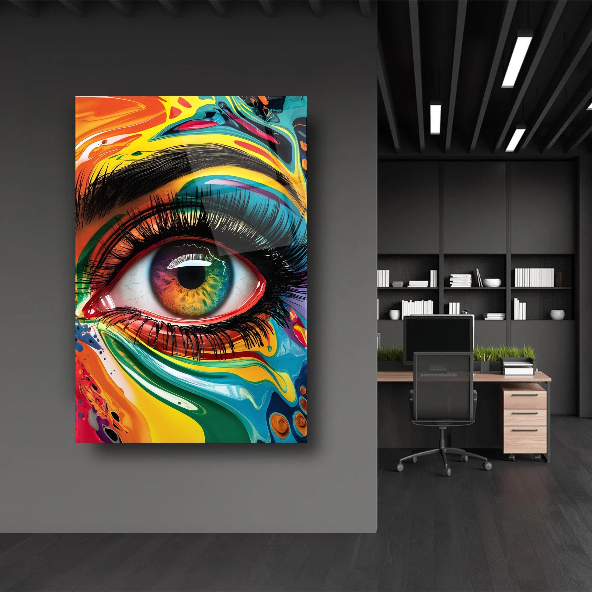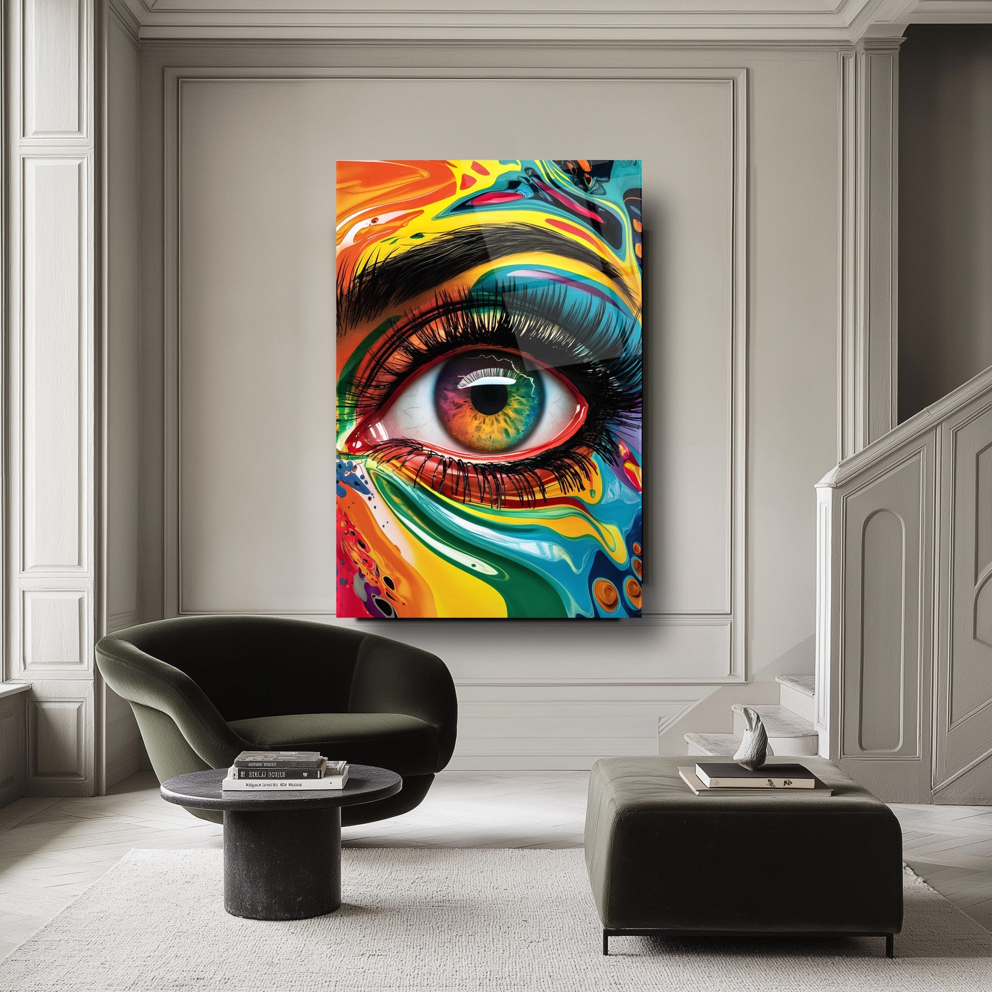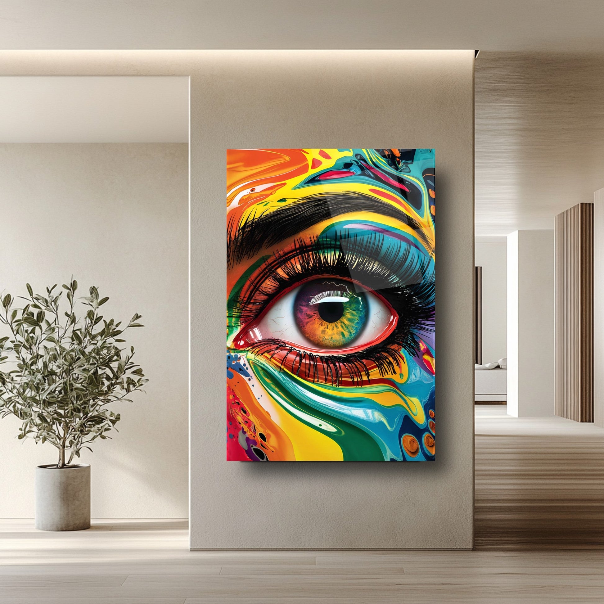 Mekanlarınıza Sanatsal Bir Bakış: Renkli İris Göz Bebeği Cam Tablo
