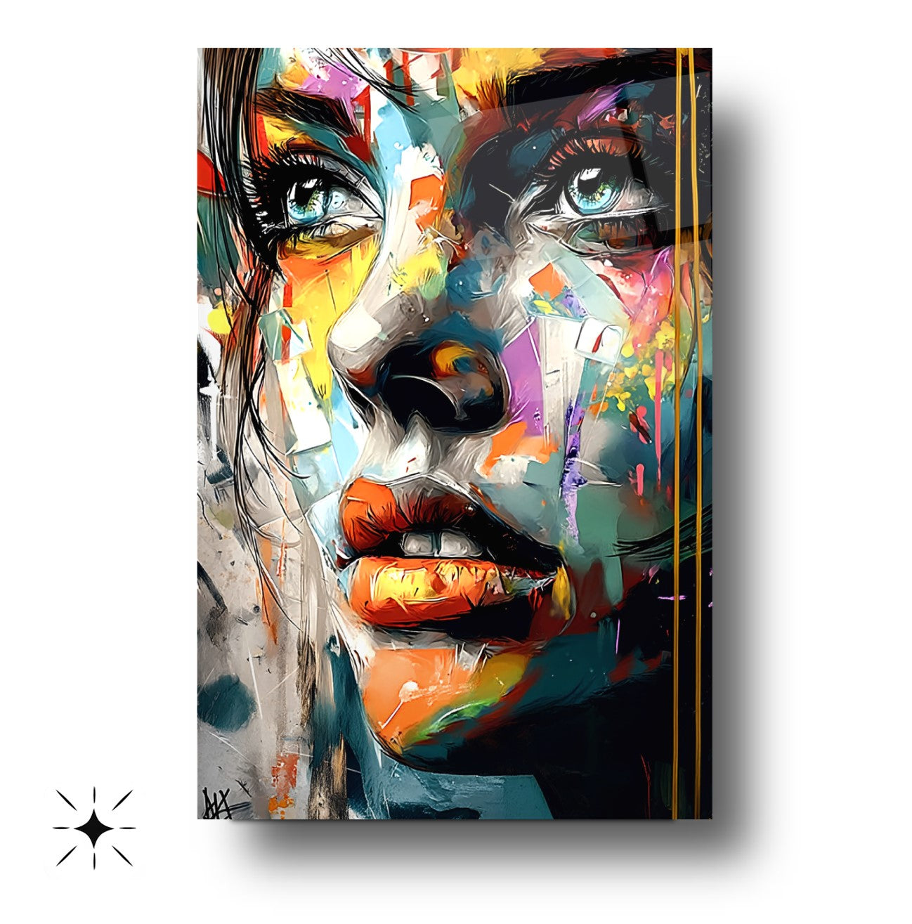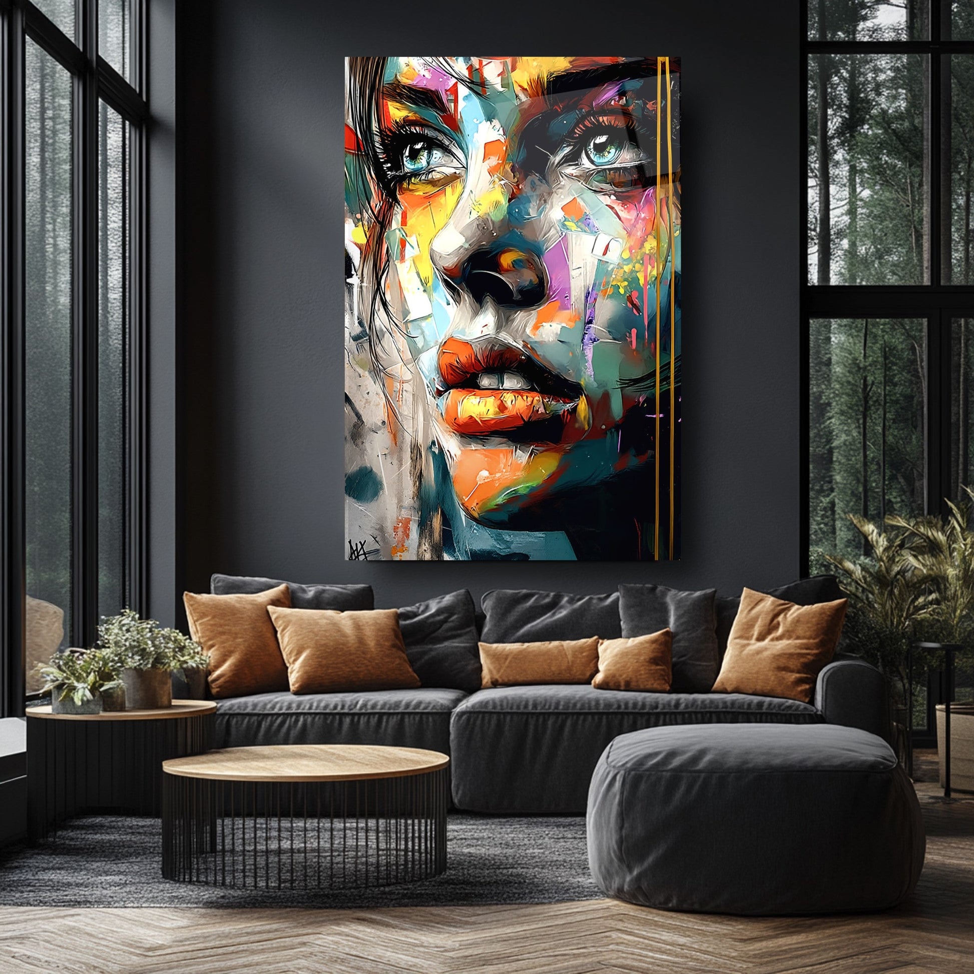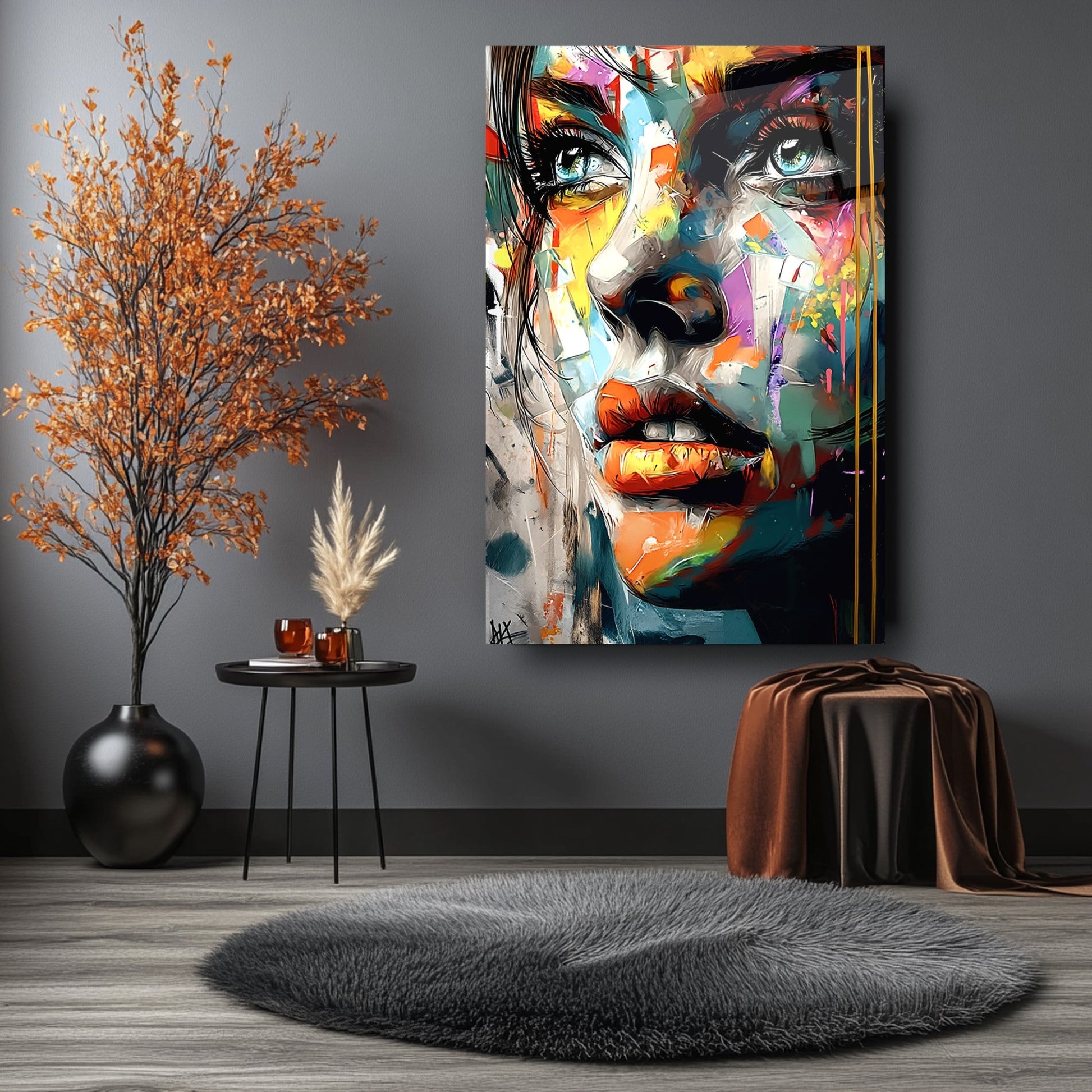 Güzellik Mekanlarınıza Sanatsal Bir Canlılık: Renkli Kadın Boyalı Portre Cam Tablo