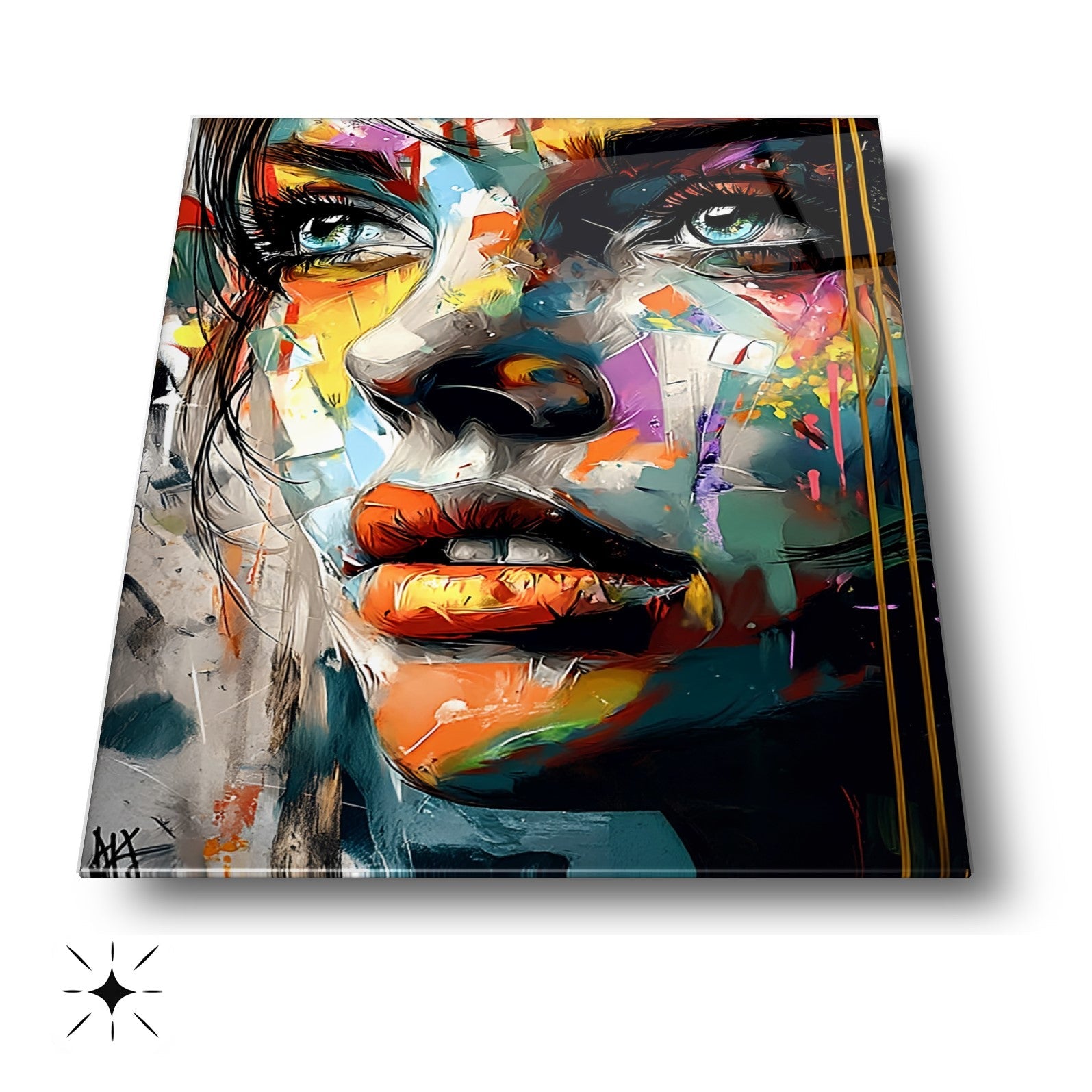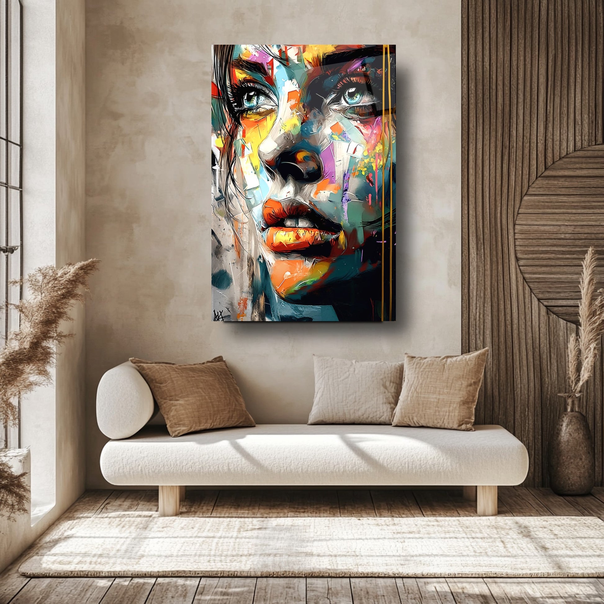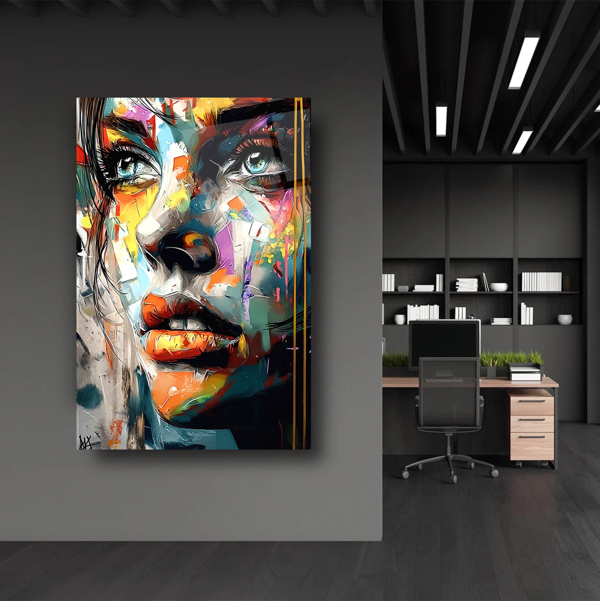 Güzellik Mekanlarınıza Sanatsal Bir Canlılık: Renkli Kadın Boyalı Portre Cam Tablo