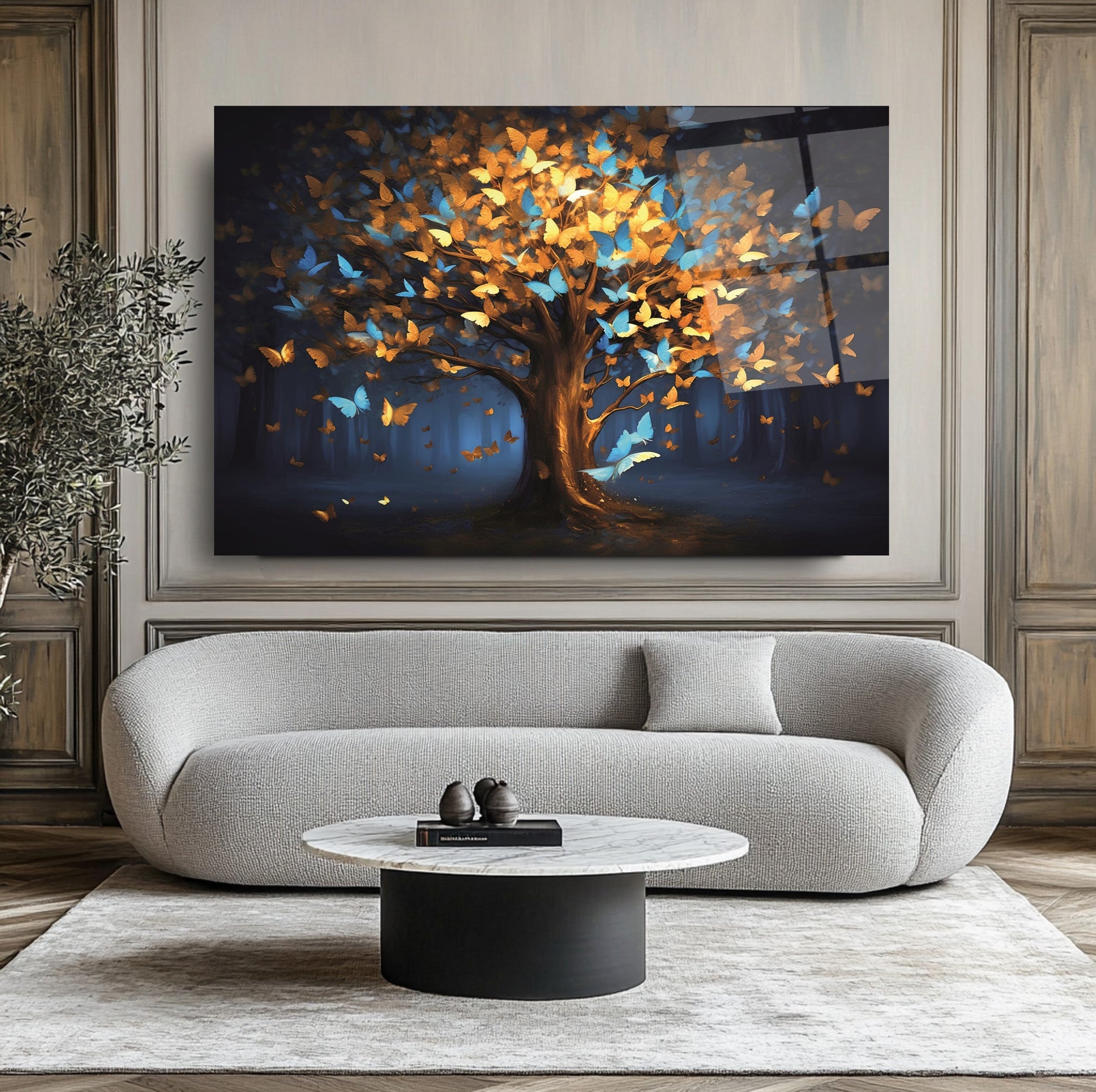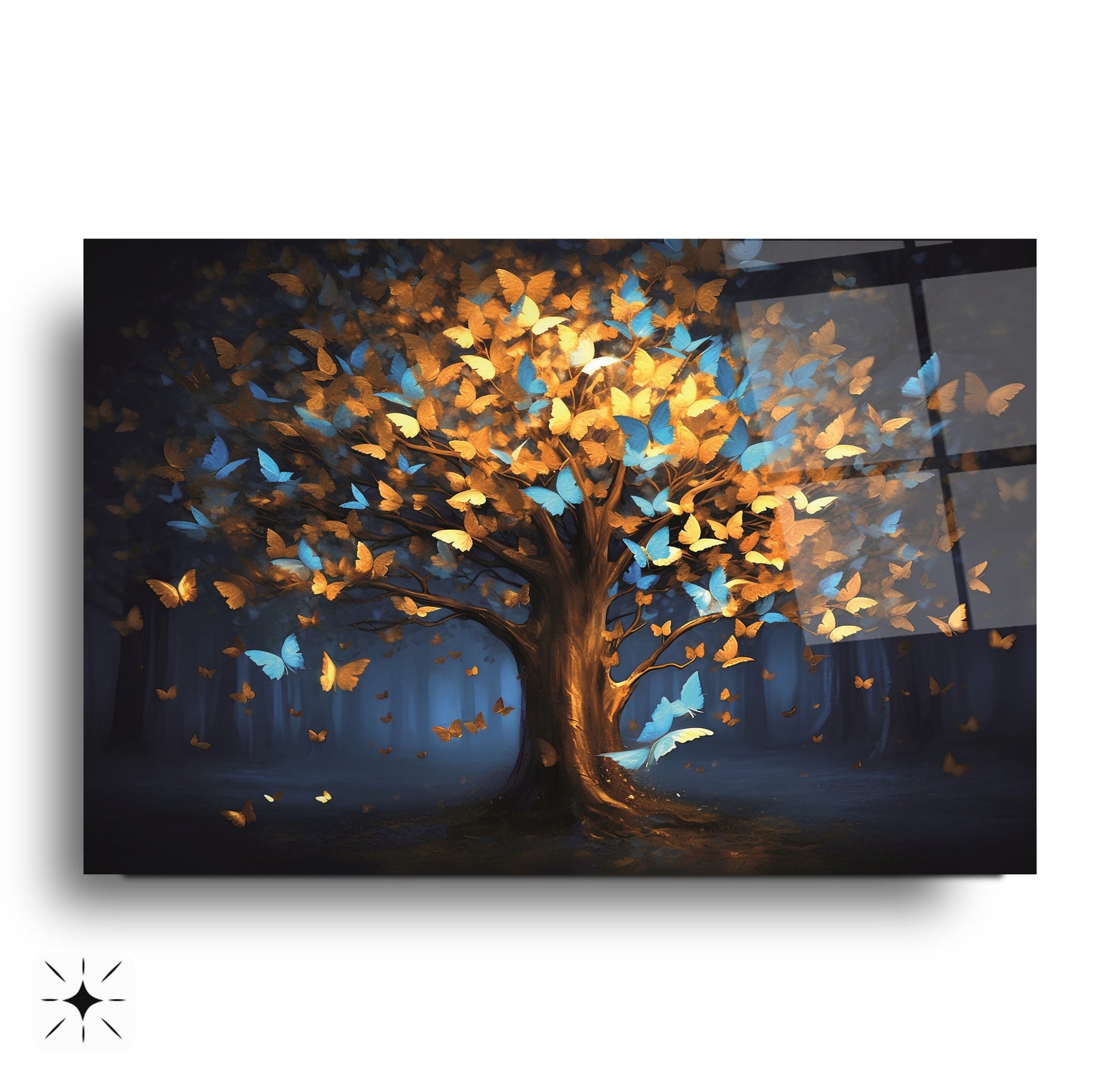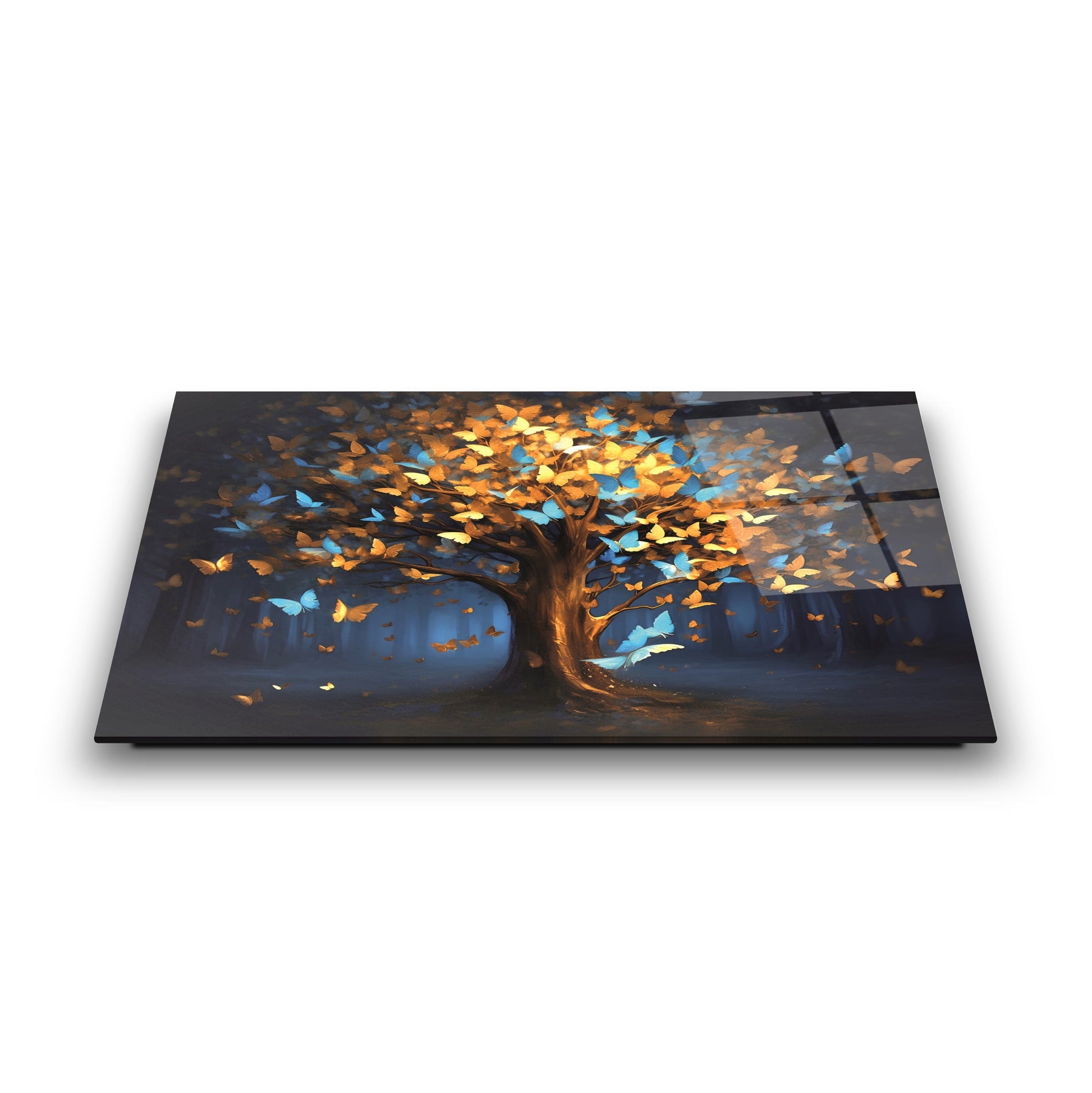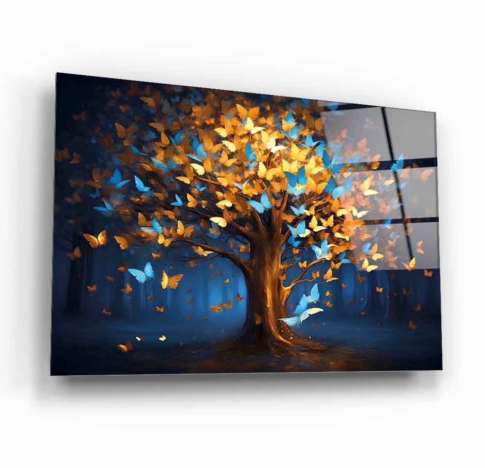 Mekanlarınıza Canlılık ve Dönüşüm Katın: Renkli Kelebekli Hayat Ağacı Cam Tablo