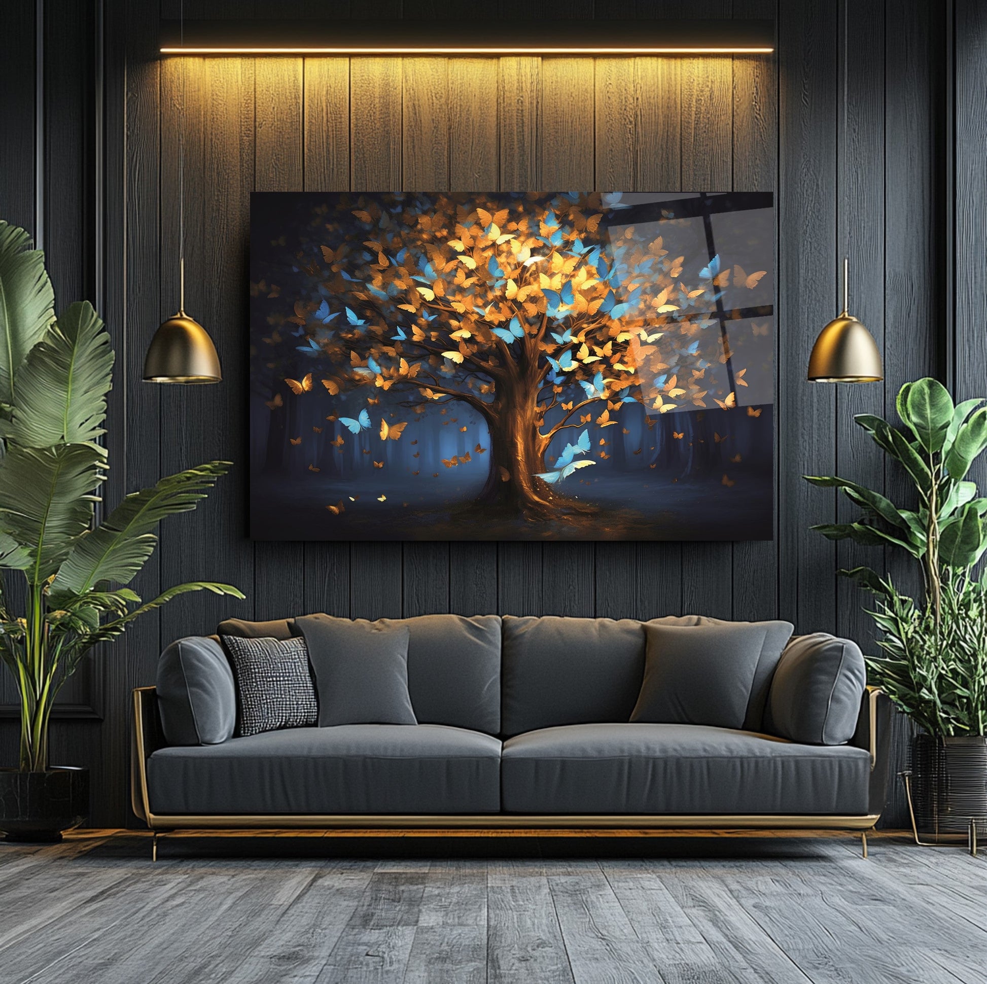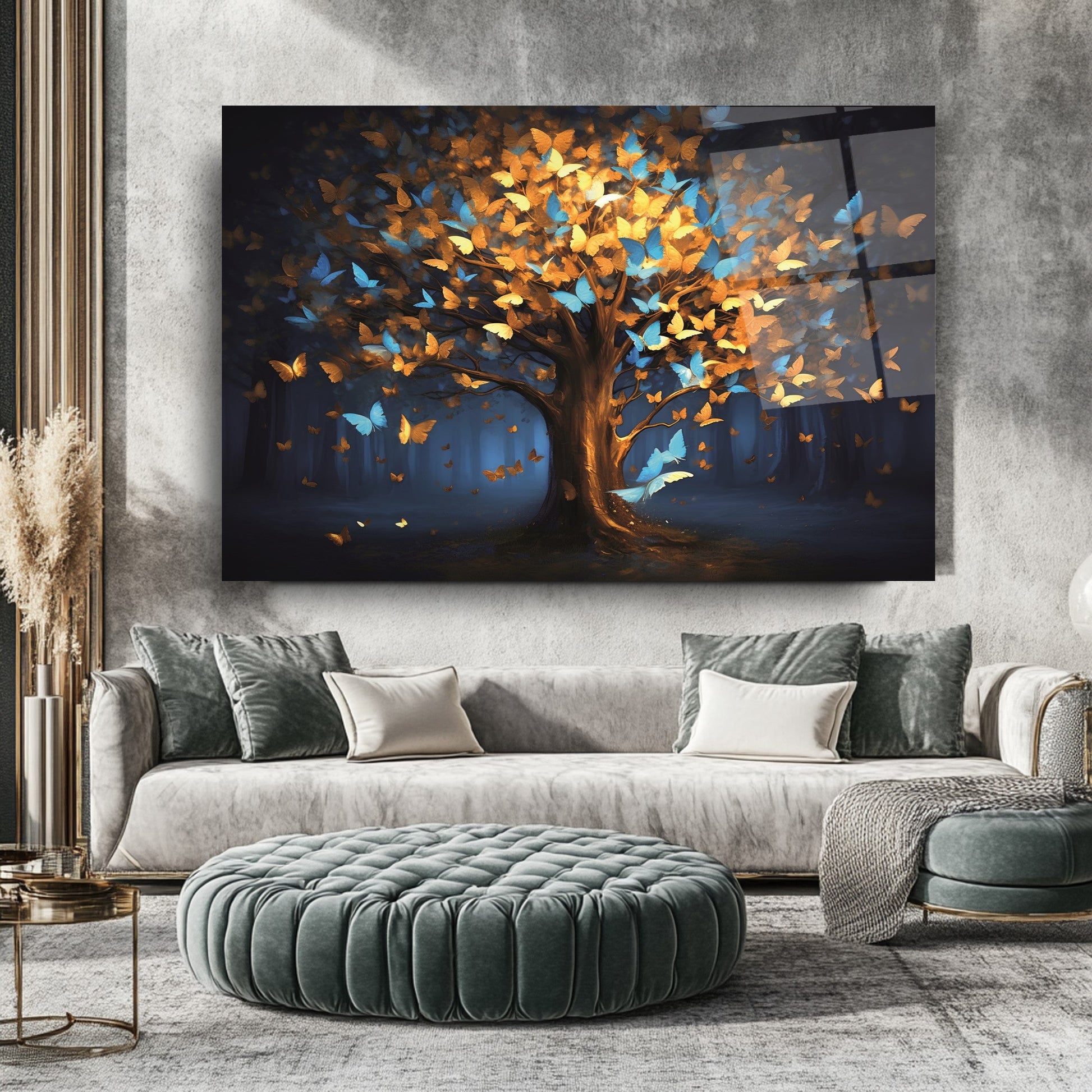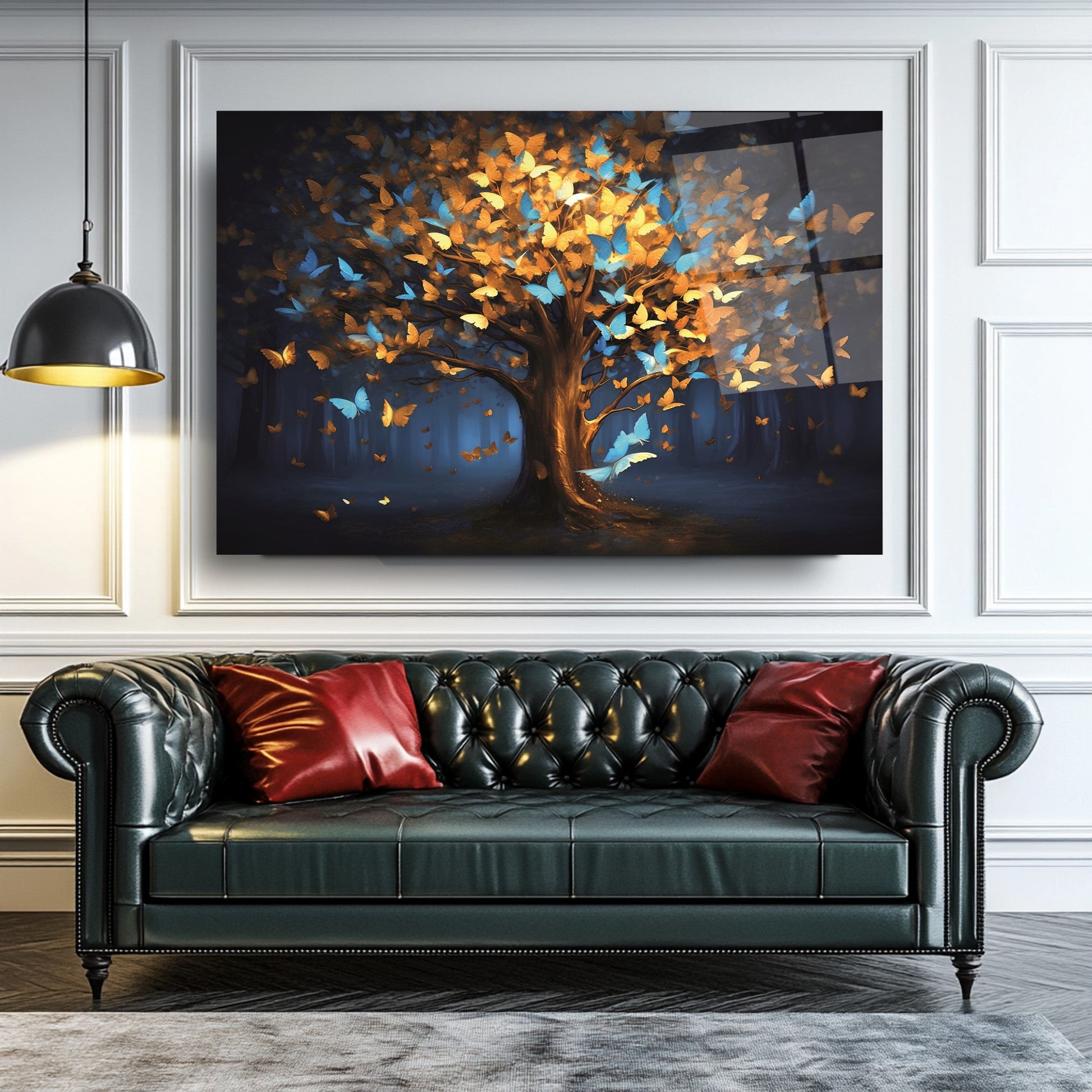 Mekanlarınıza Canlılık ve Dönüşüm Katın: Renkli Kelebekli Hayat Ağacı Cam Tablo
