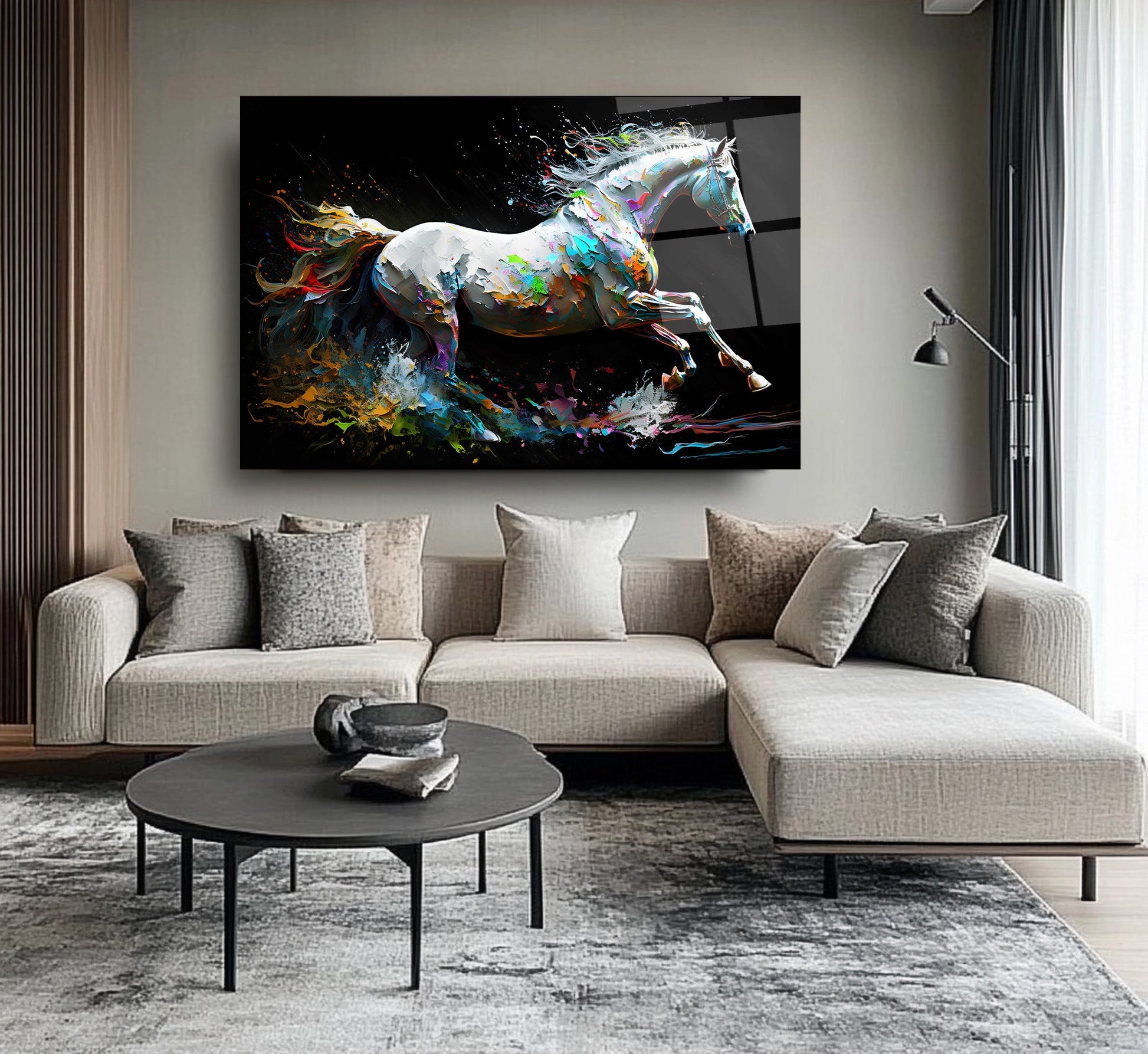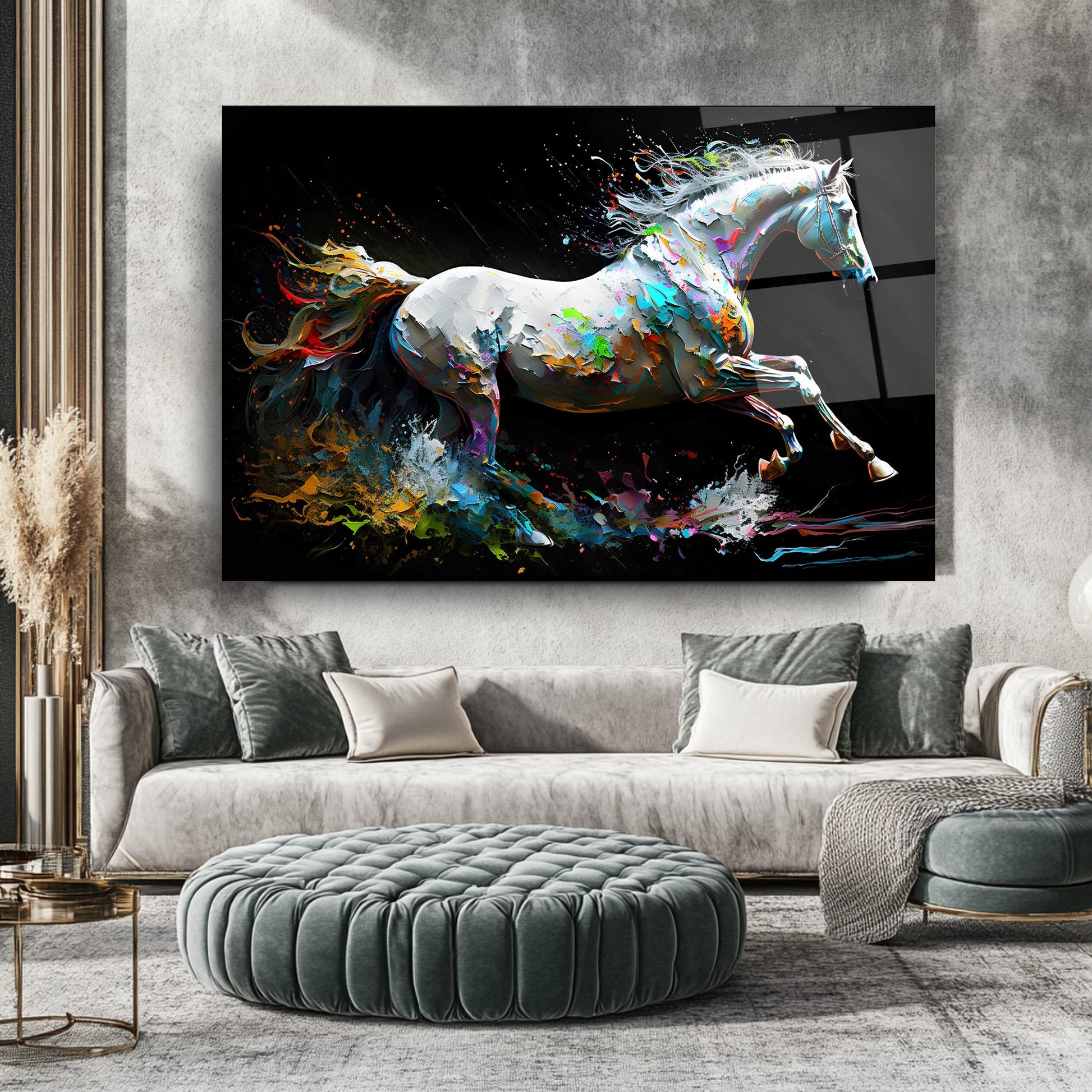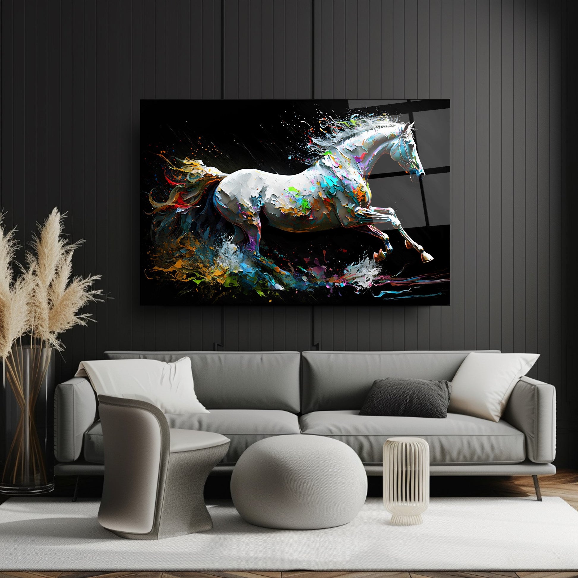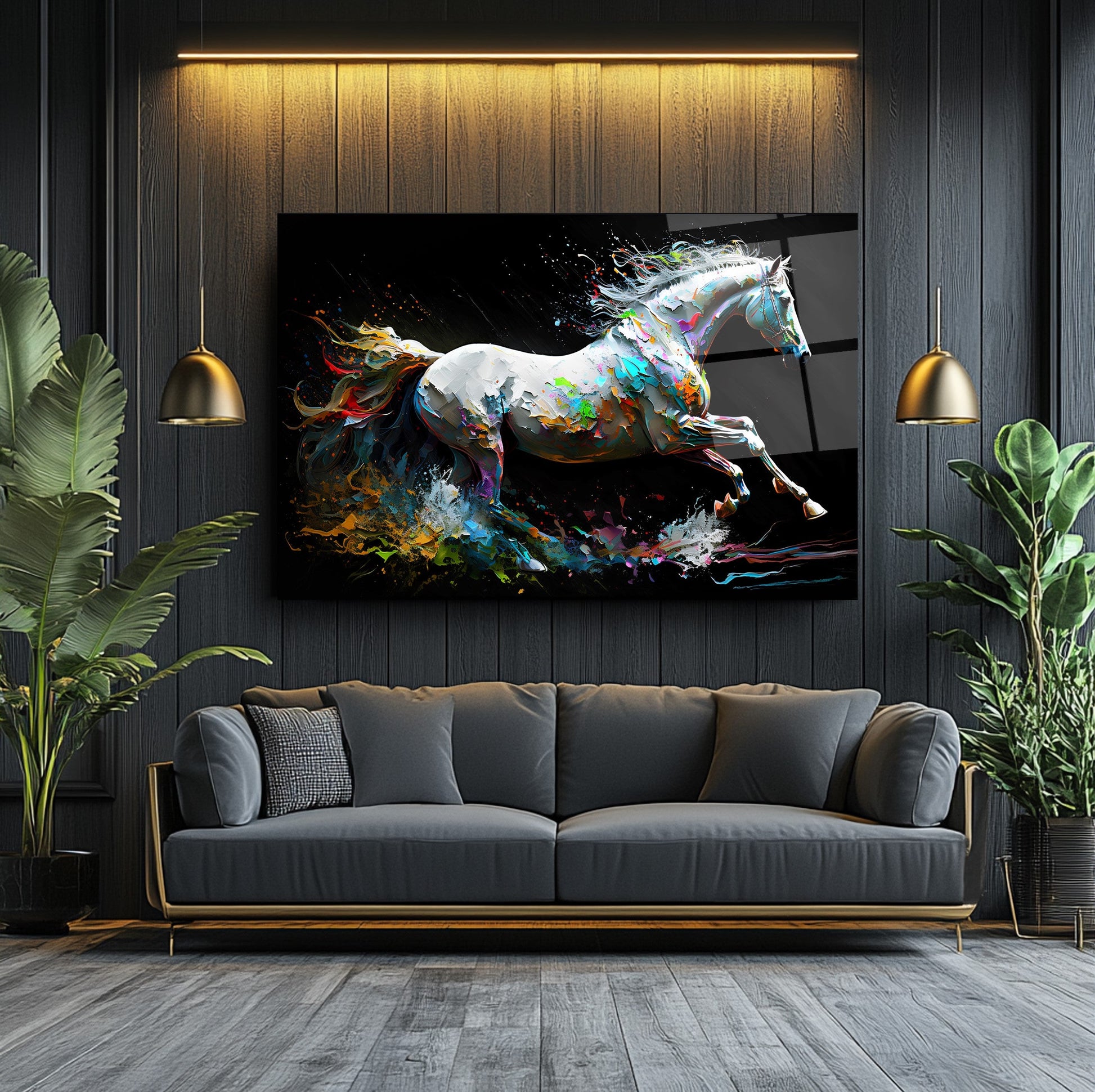 Bu modern cam tablo, hareketli ve enerjik bir tasarımla, mekânınıza dinamik bir atmosfer katıyor. Beyaz at figürü, neon renklerle vurgulanmış kuyruğuyla dikkat çekiyor ve soyut arka planla birleşerek sanatsal bir bütünlük oluşturuyor. 4 mm kalınlığında ultra-clear temperli cam üzerine uygulanan HD UV baskı, renklerin solmadan uzun süre canlı kalmasını sağlıyor. Çerçevesiz tasarımı sayesinde salon, ofis veya antre gibi alanlarda estetik bir odak noktası sunuyor. Suya, neme ve çizilmeye dayanıklı yüzeyiyle uzun ömürlü kullanım imkânı tanıyor. Kolay montaj için tüm aksesuarlar kutuda yer alıyor ve güvenli paketleme ile sigortalı kargo avantajı sunuluyor. Modern ve enerjik bir dekorasyon arayanlar için ideal bir tercih.