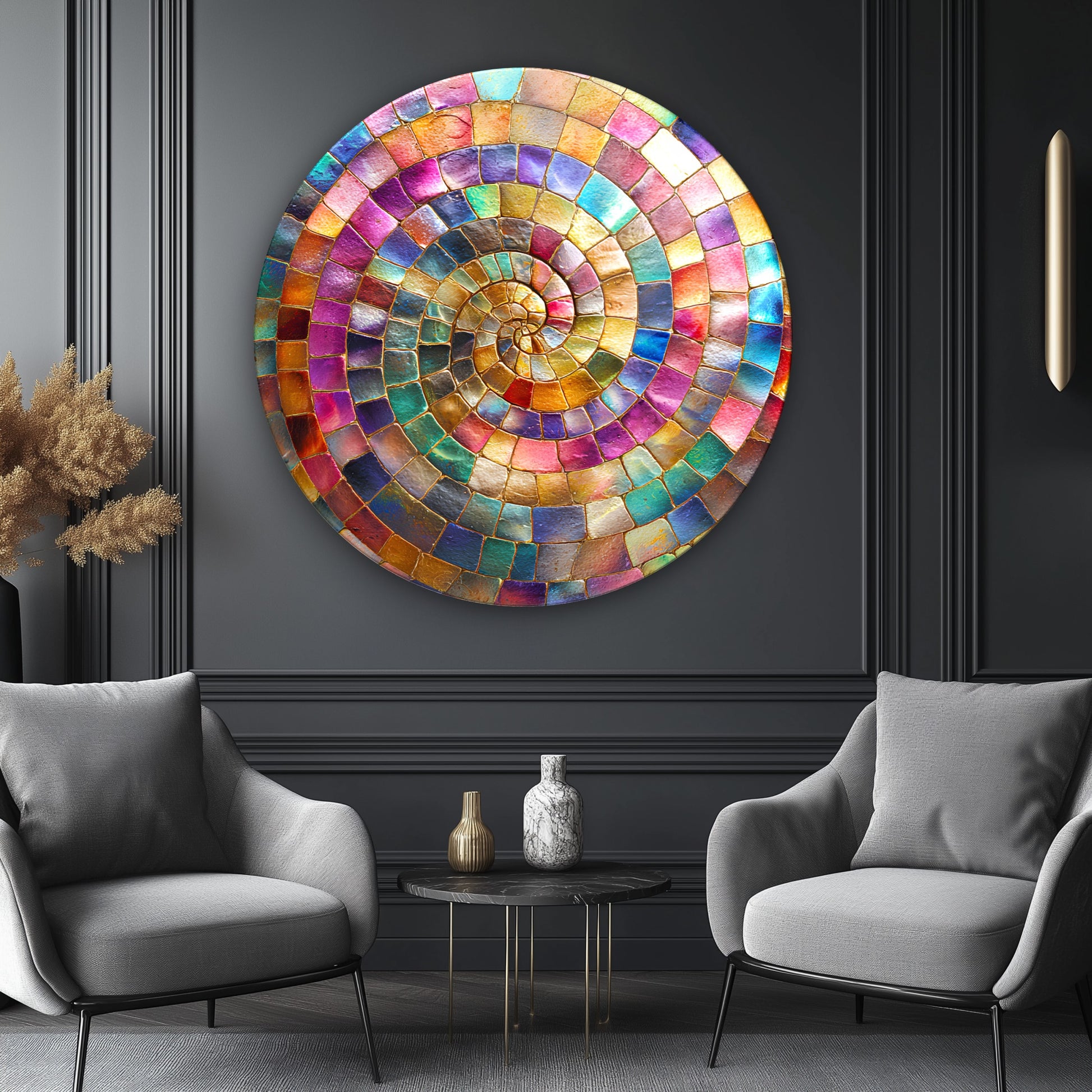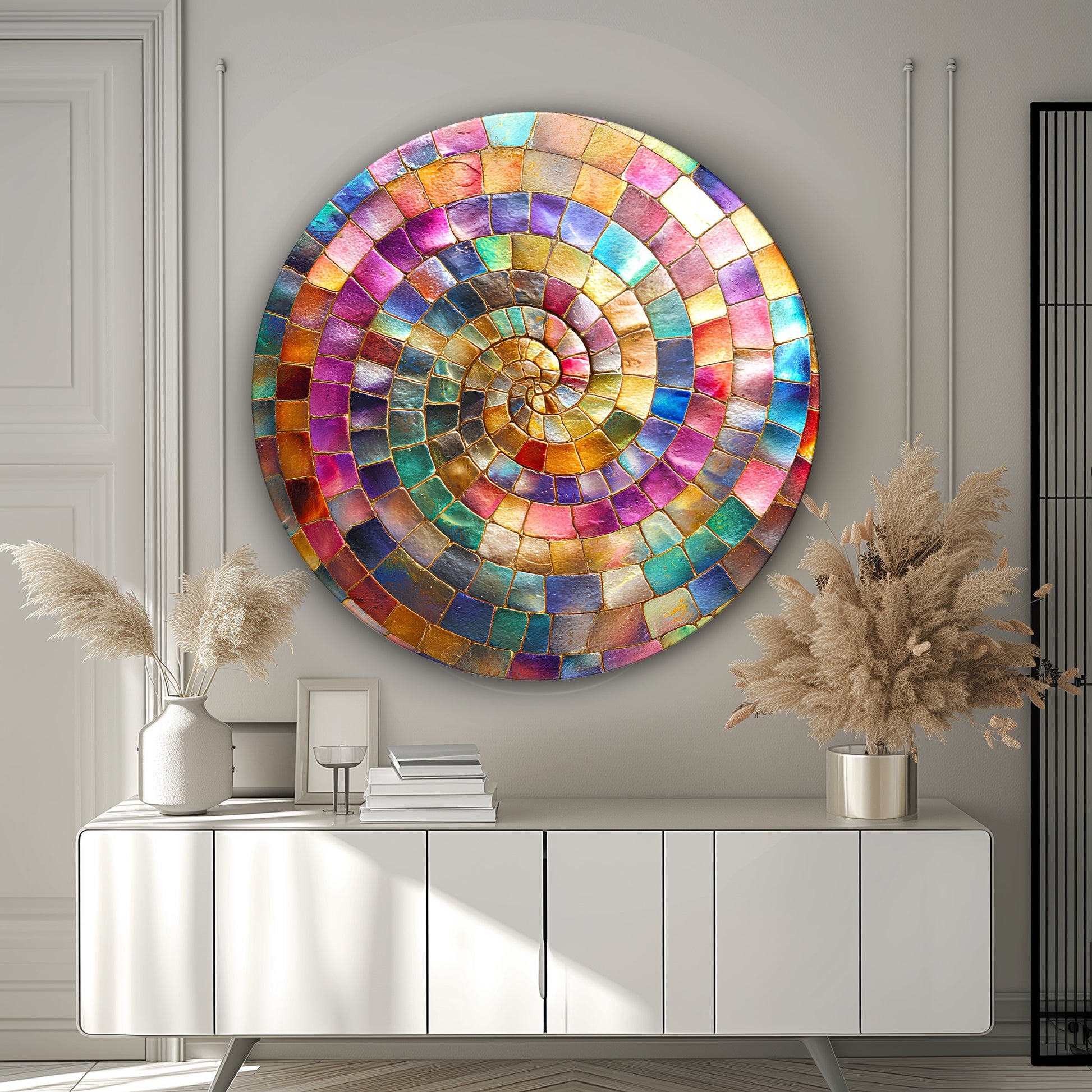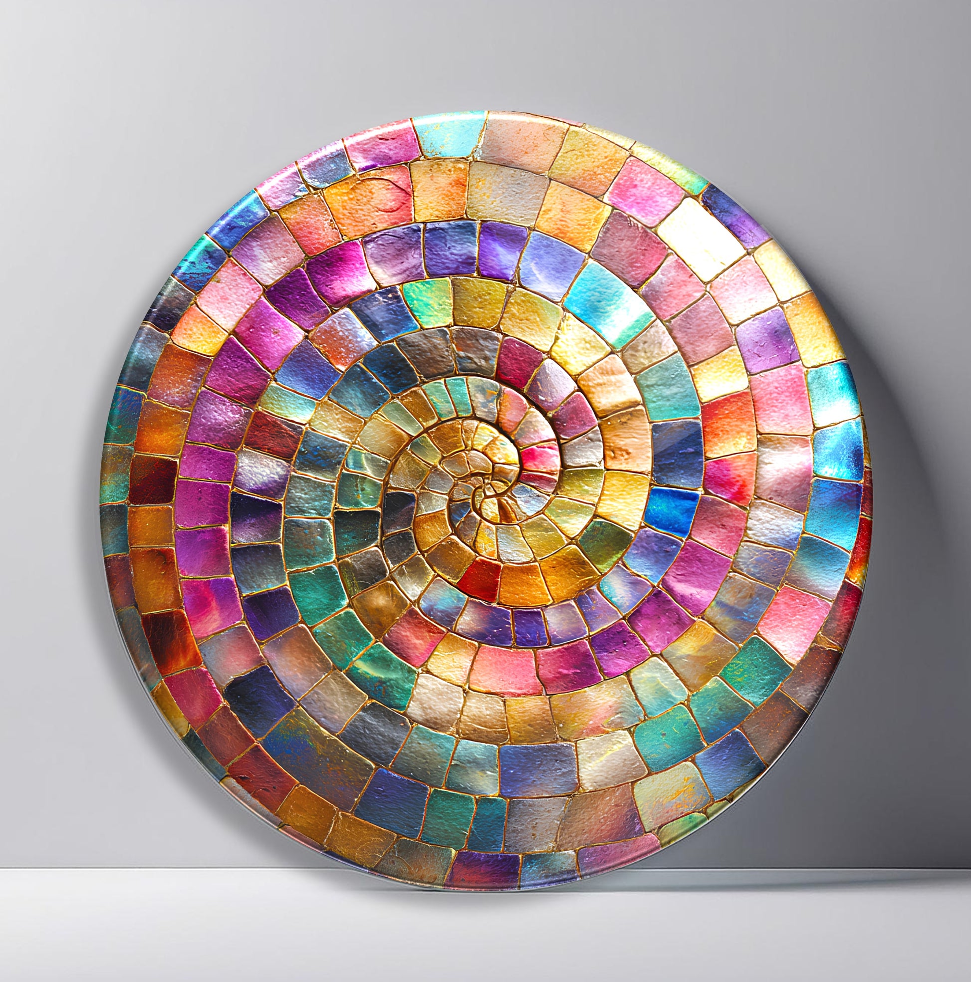 Renkli Soyu Mozaik Yuvarlak Cam Tablo