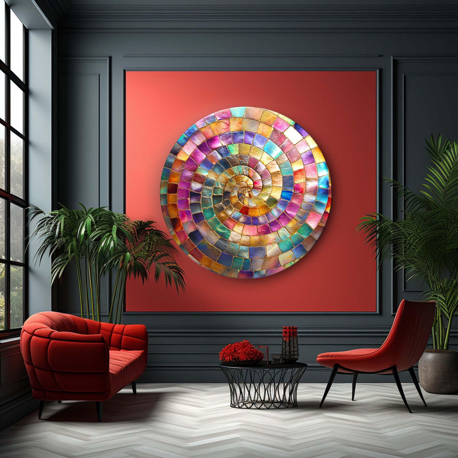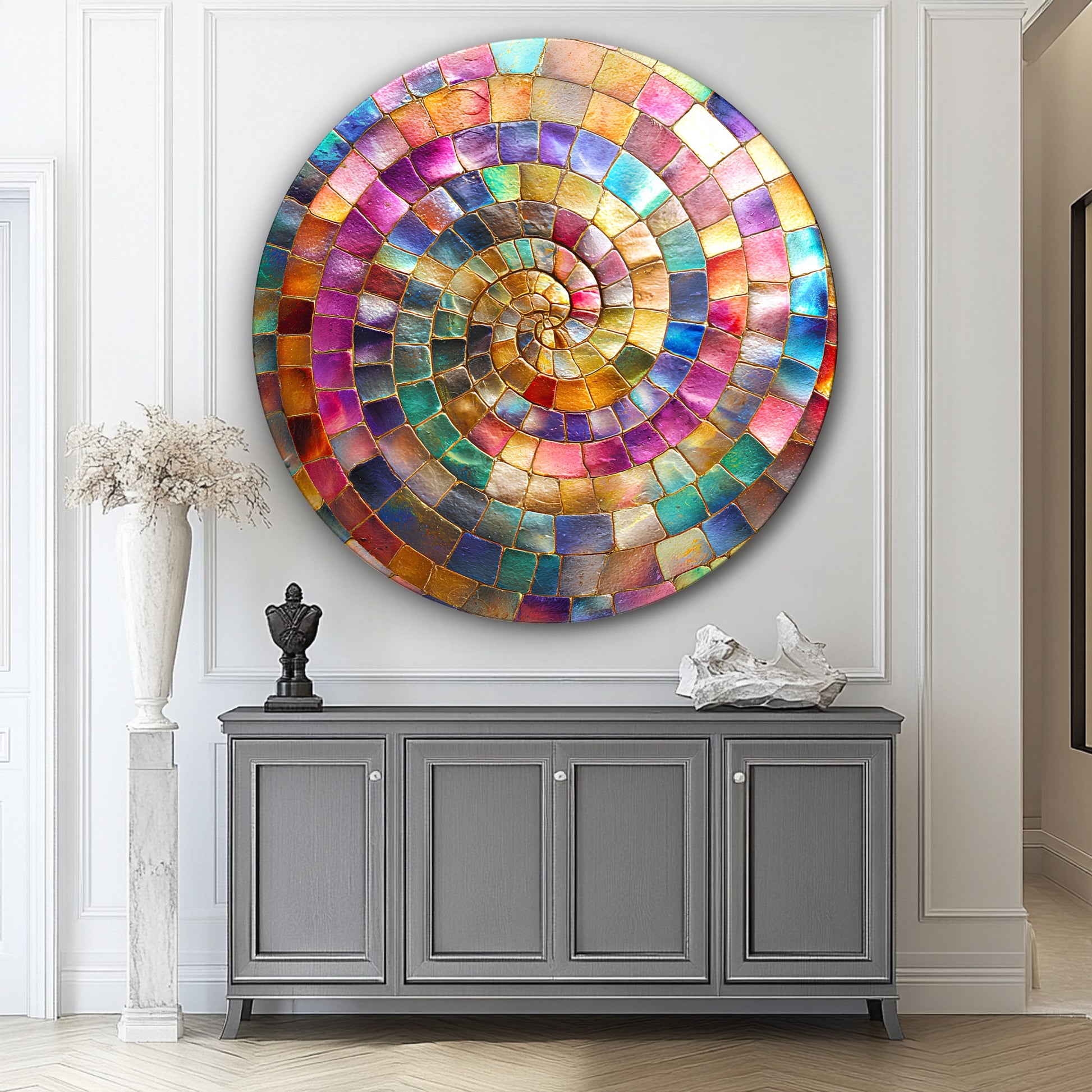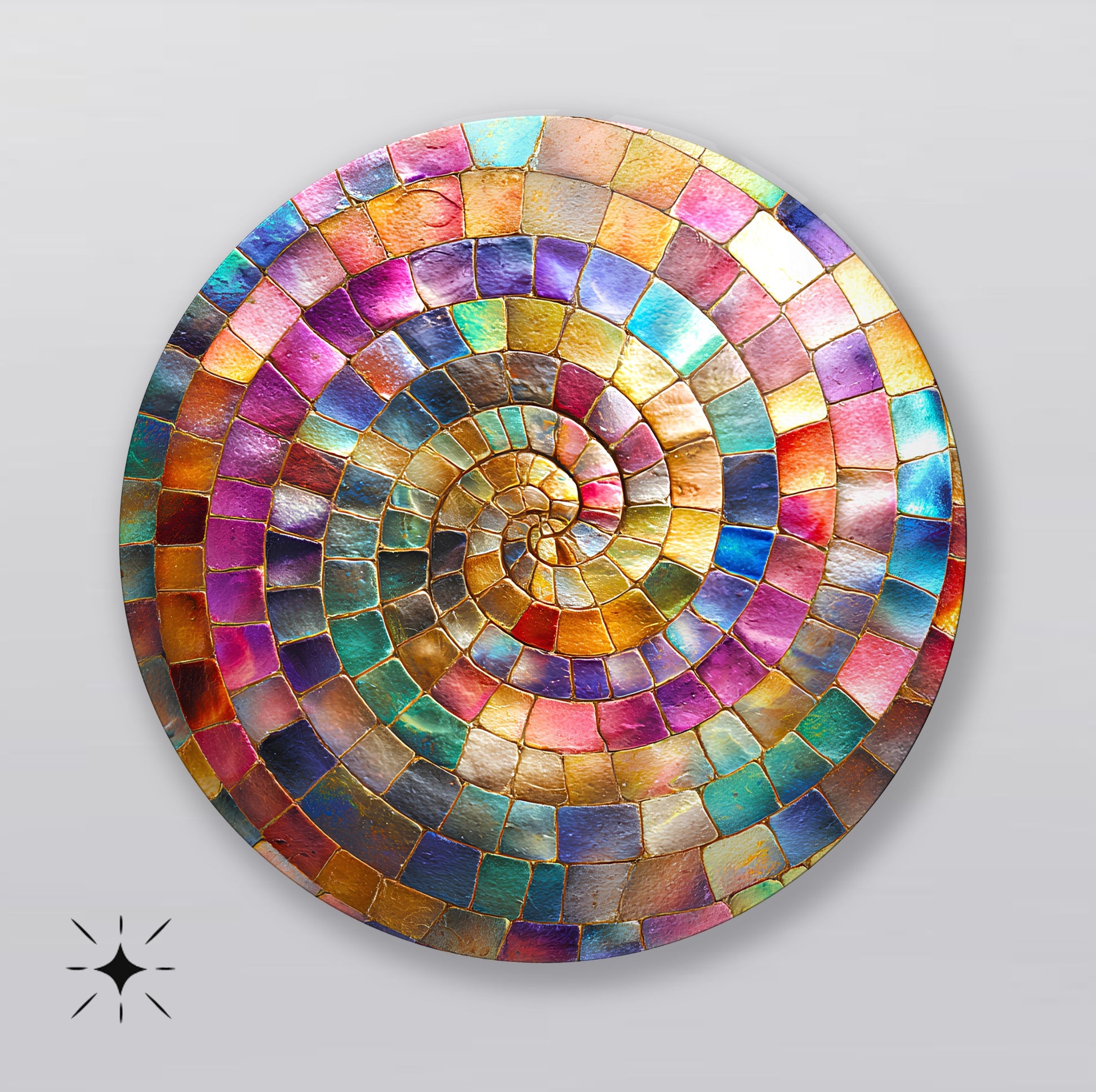 Renkli Soyu Mozaik Yuvarlak Cam Tablo