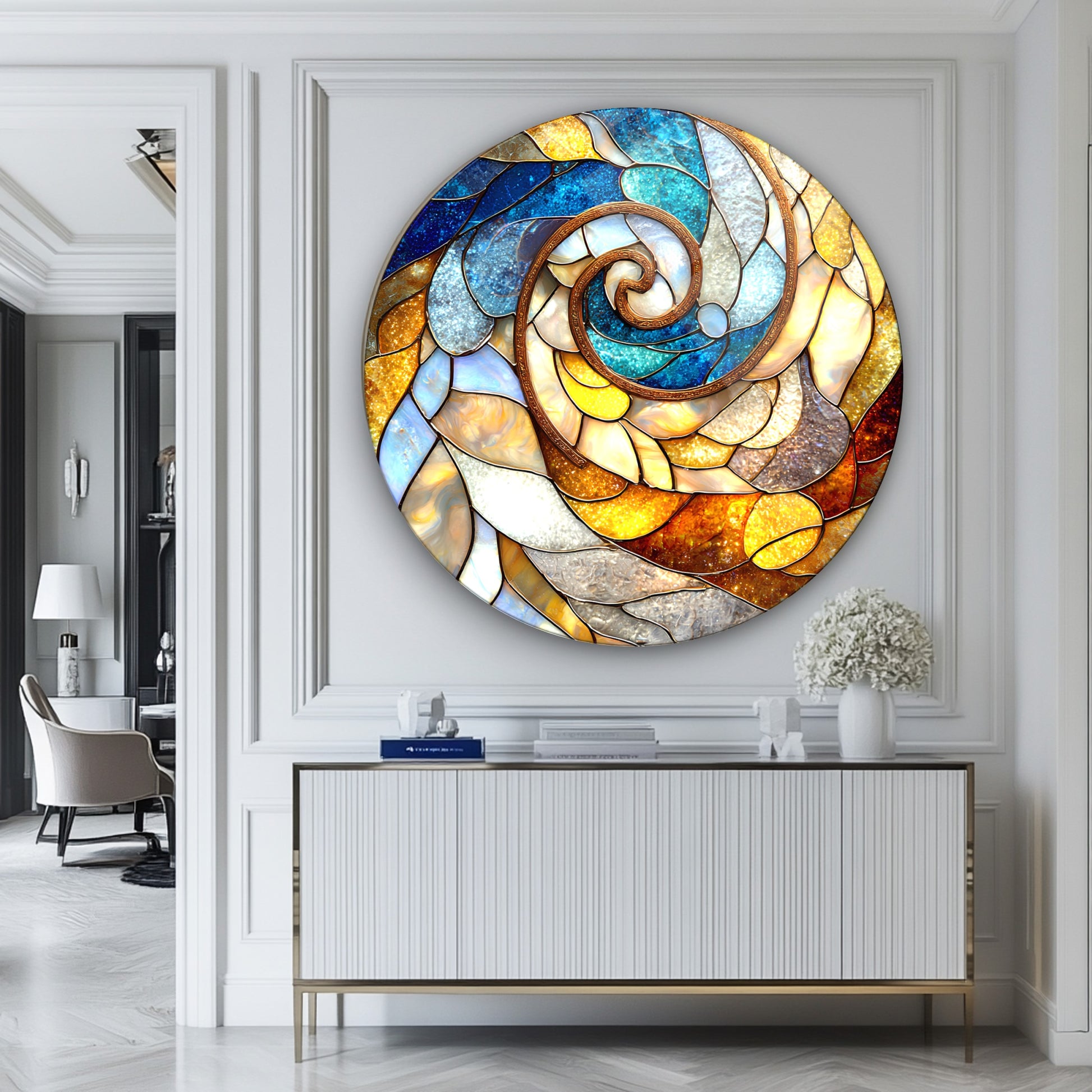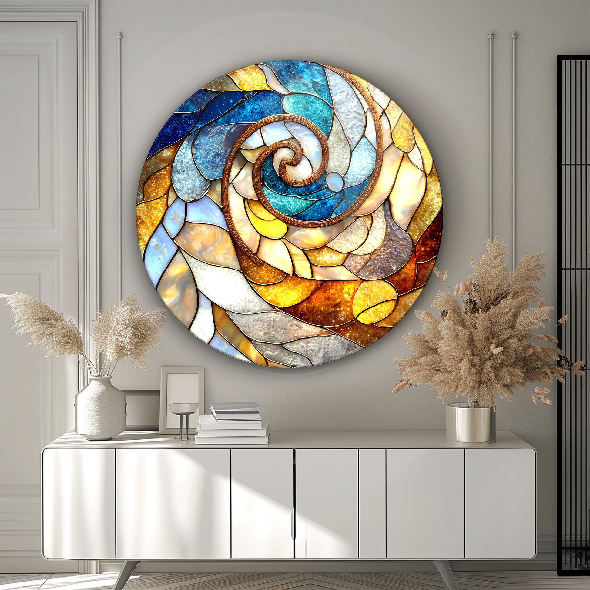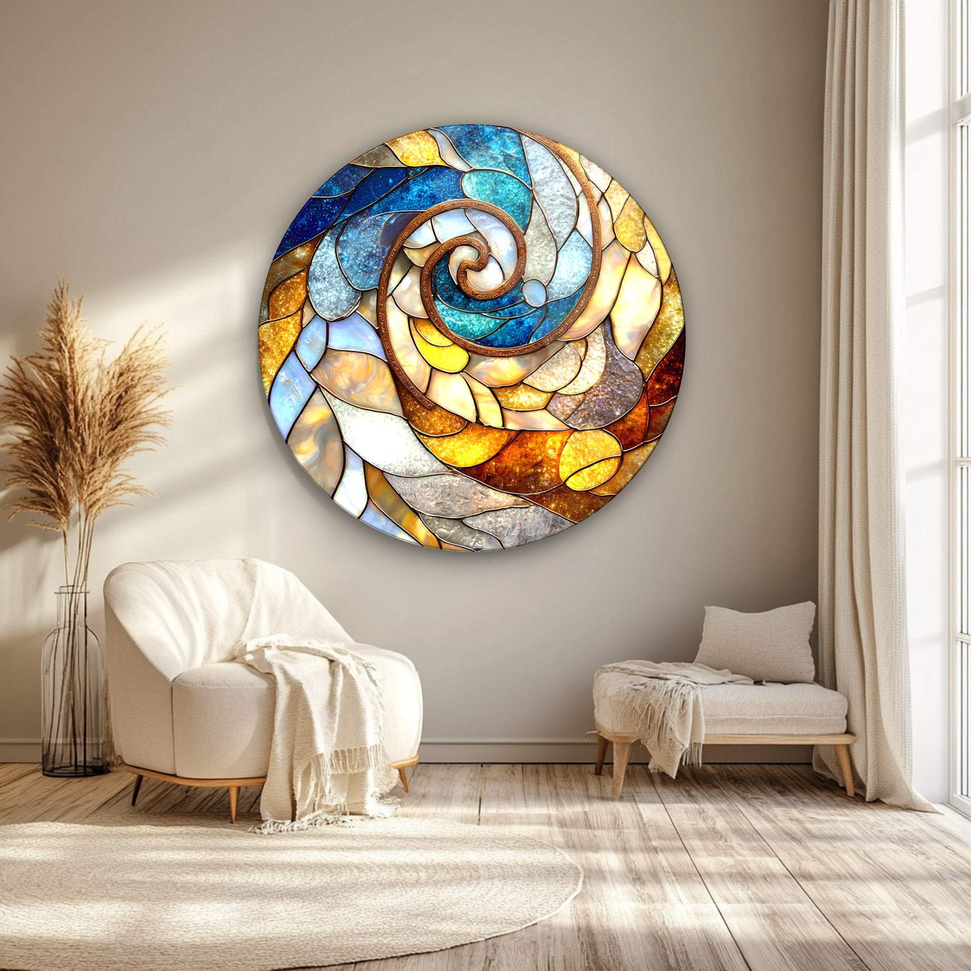 Renkli Soyut Döngü Yuvarlak Cam Tablo