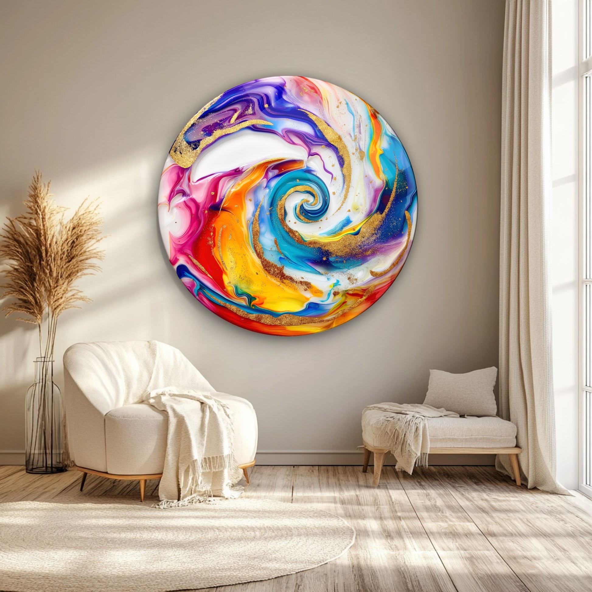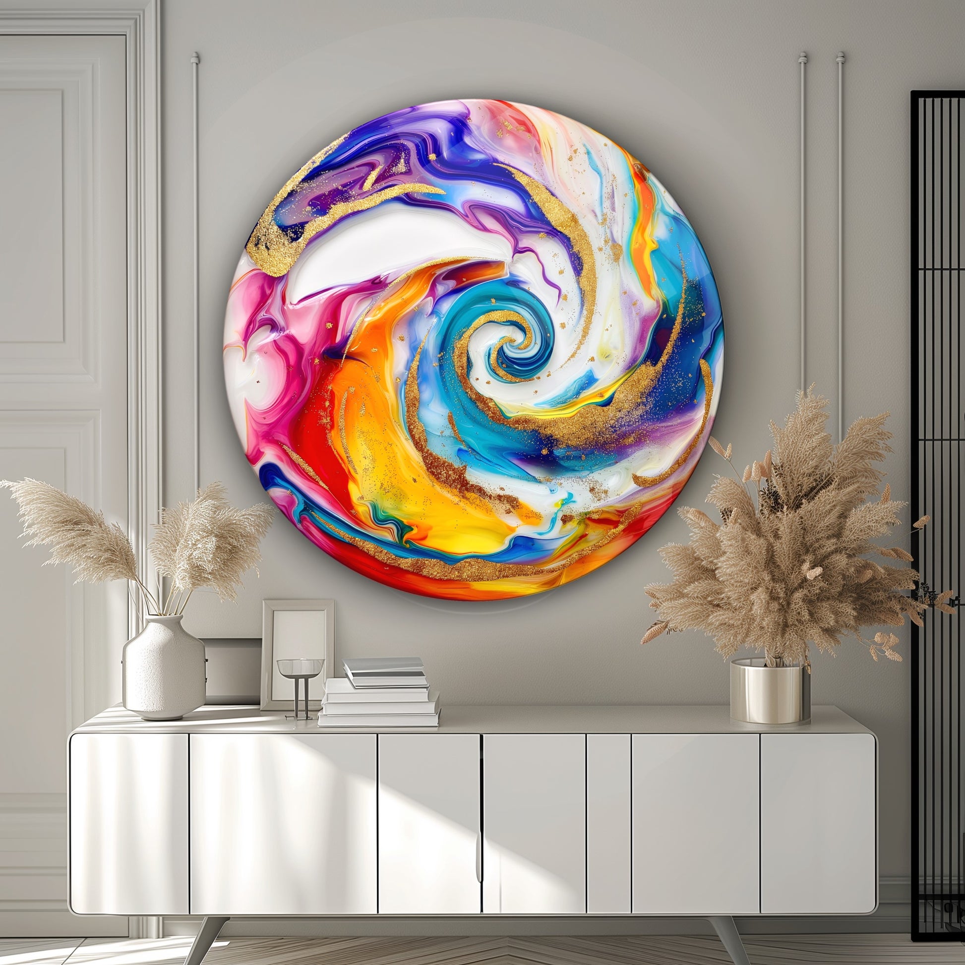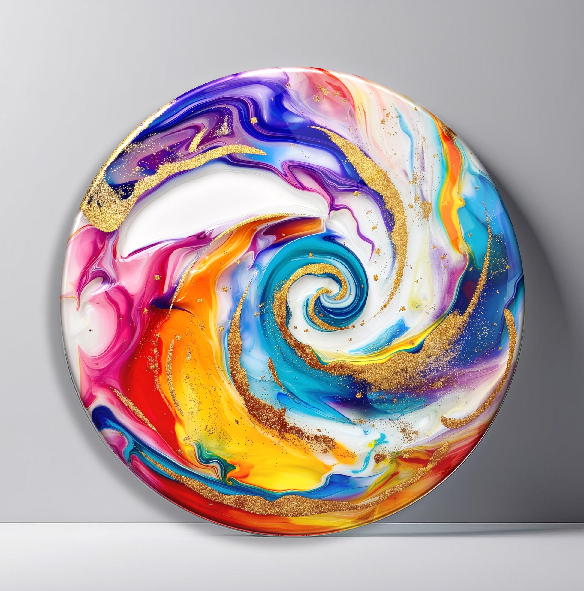 Renkli Soyut Döngü Yuvarlak Cam Tablo