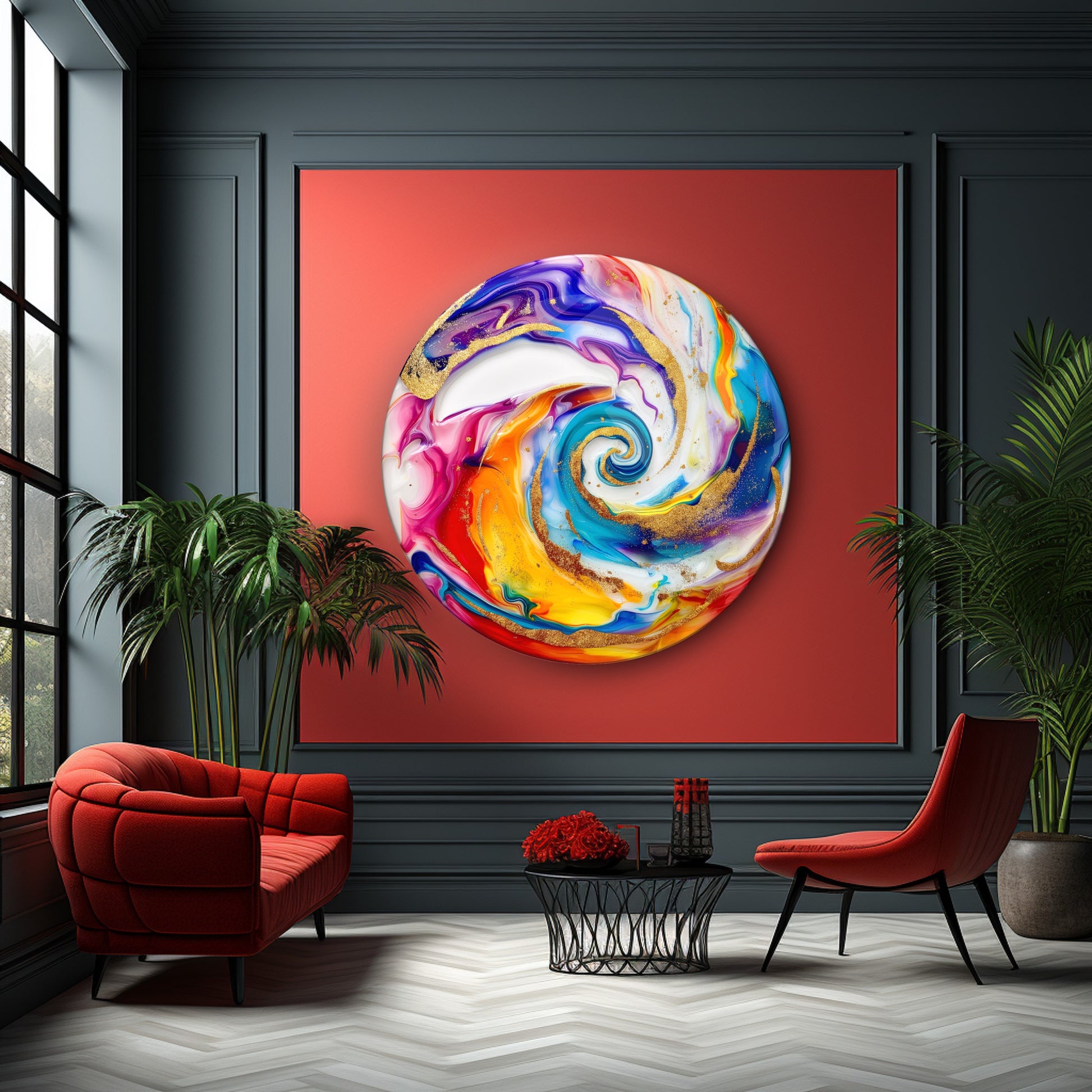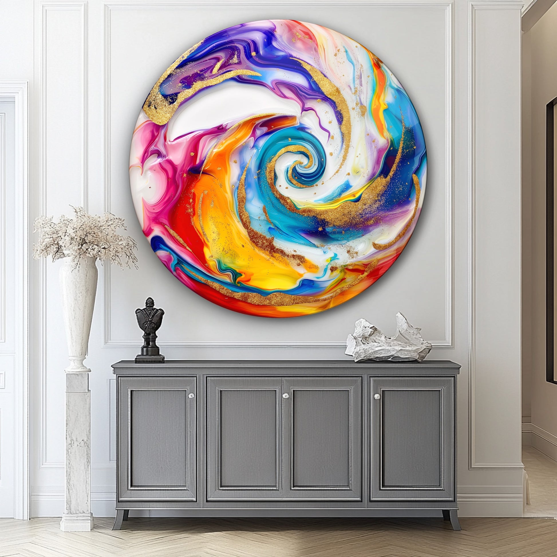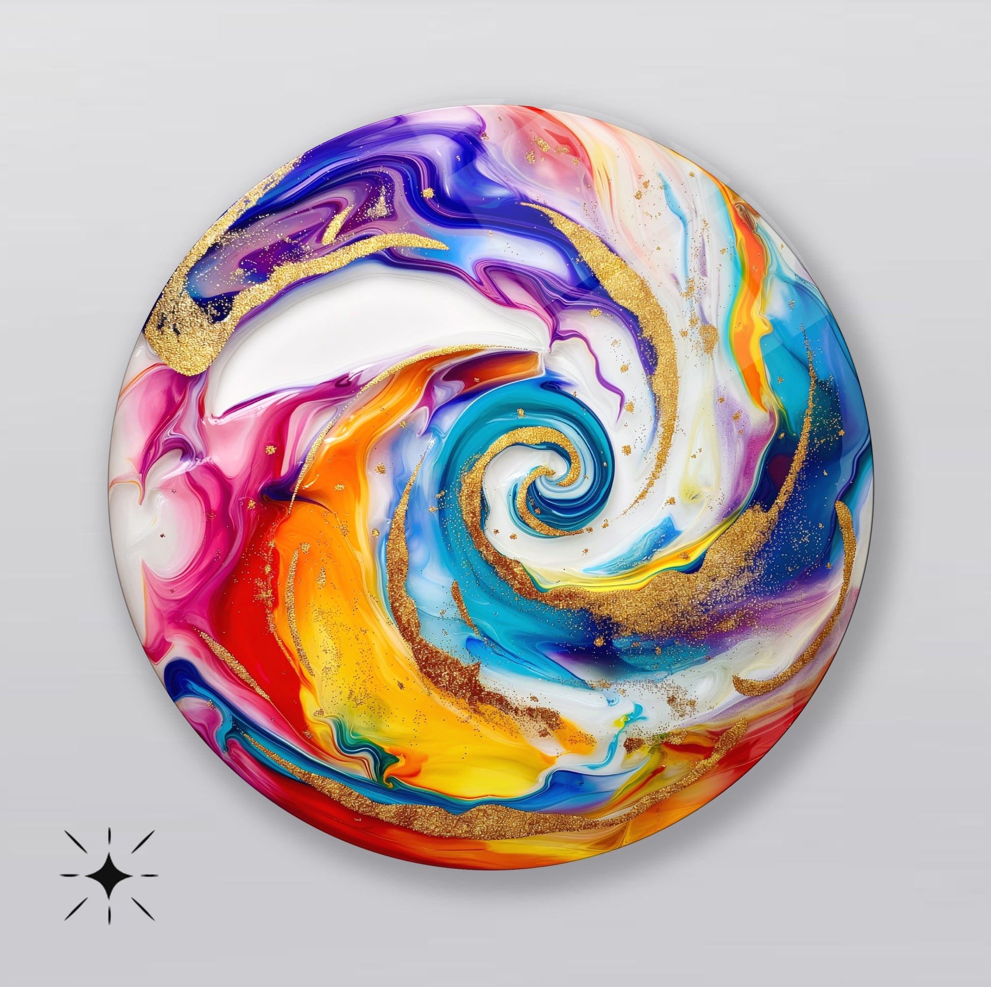 Renkli Soyut Döngü Yuvarlak Cam Tablo