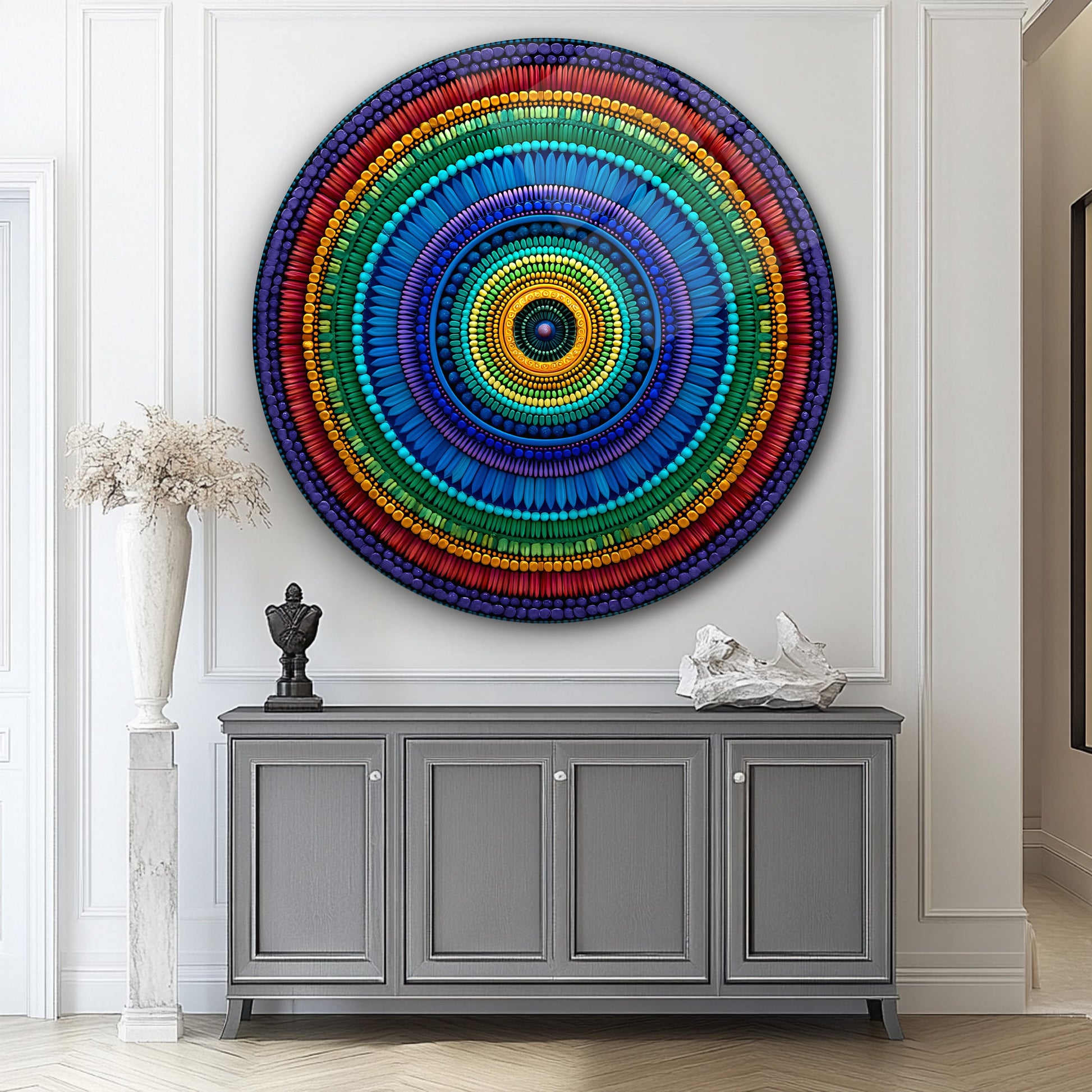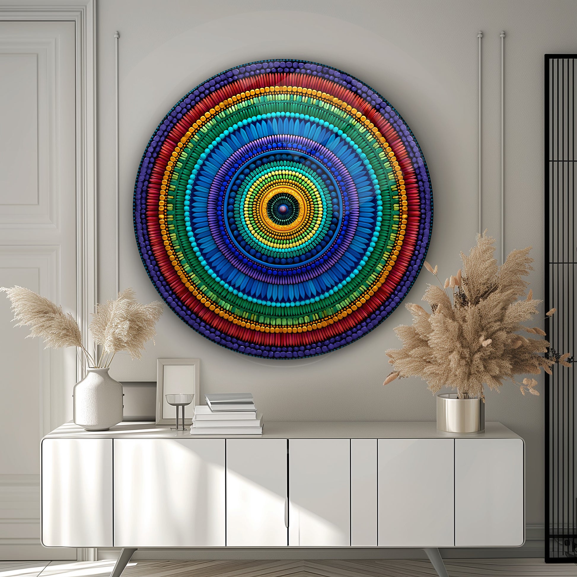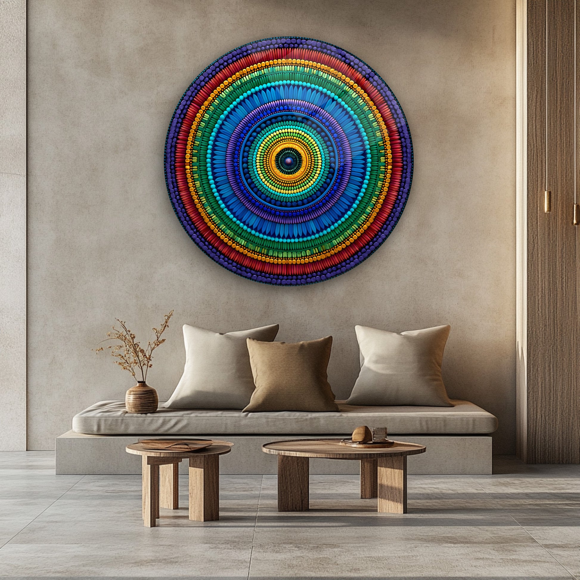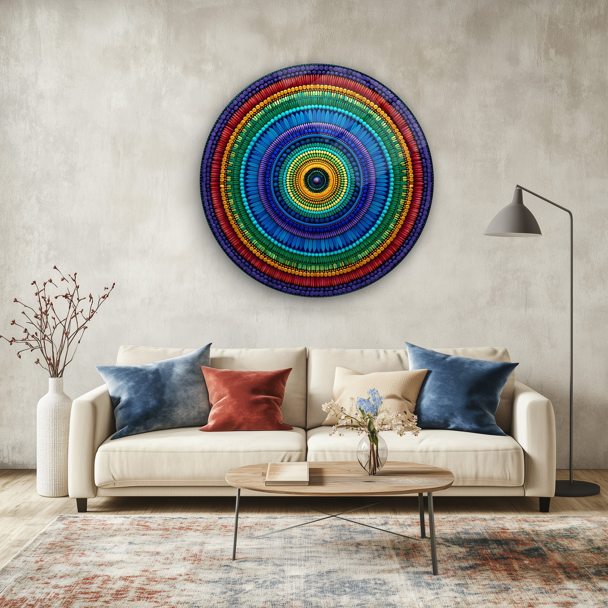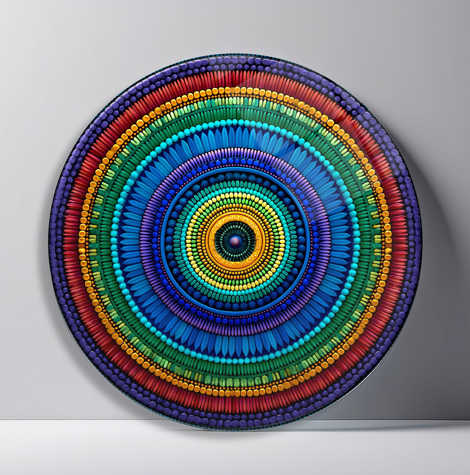 Renkli Mozaik Taşlar Yuvarlak Cam Tablo