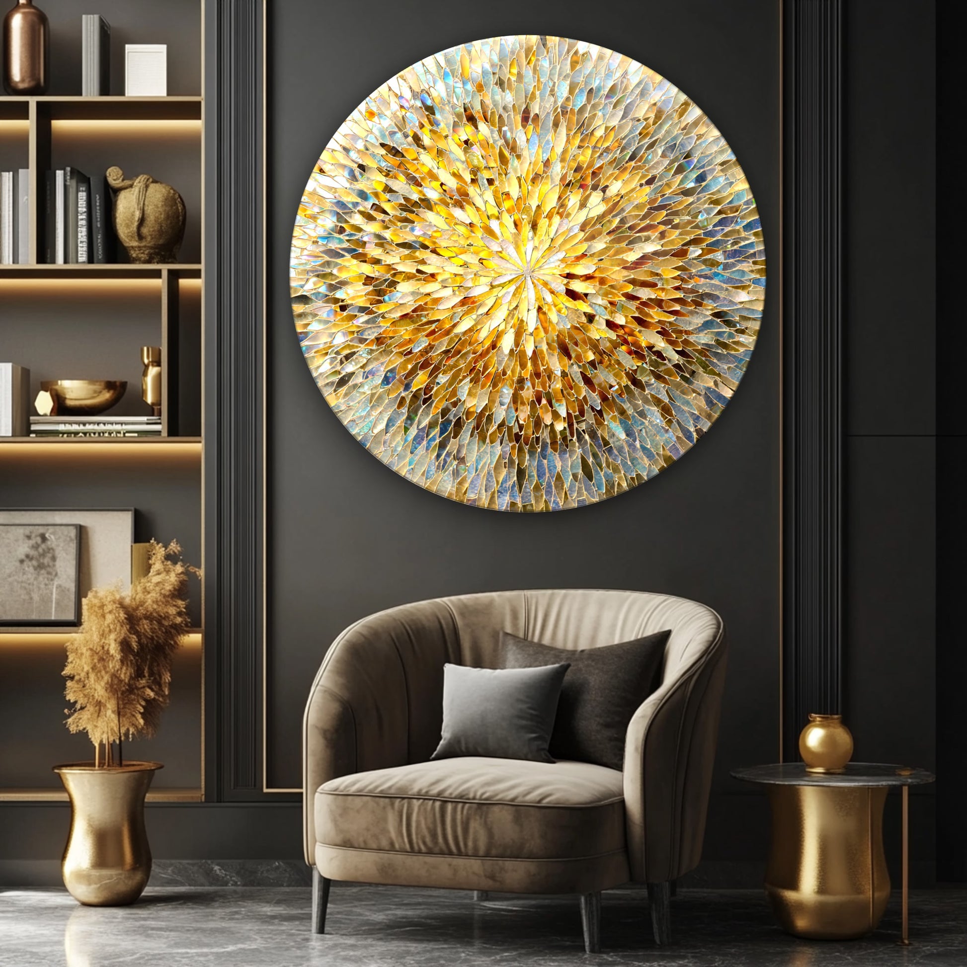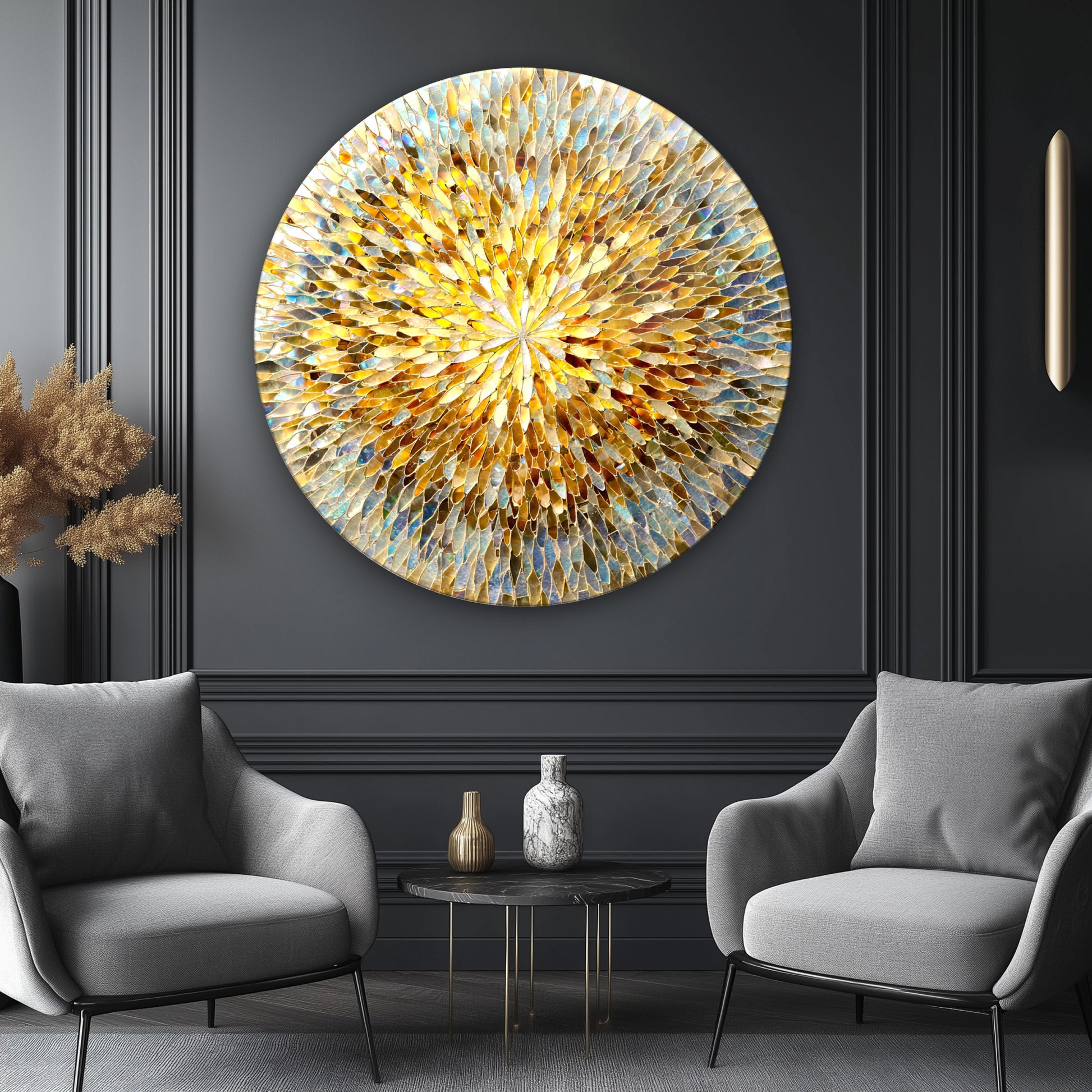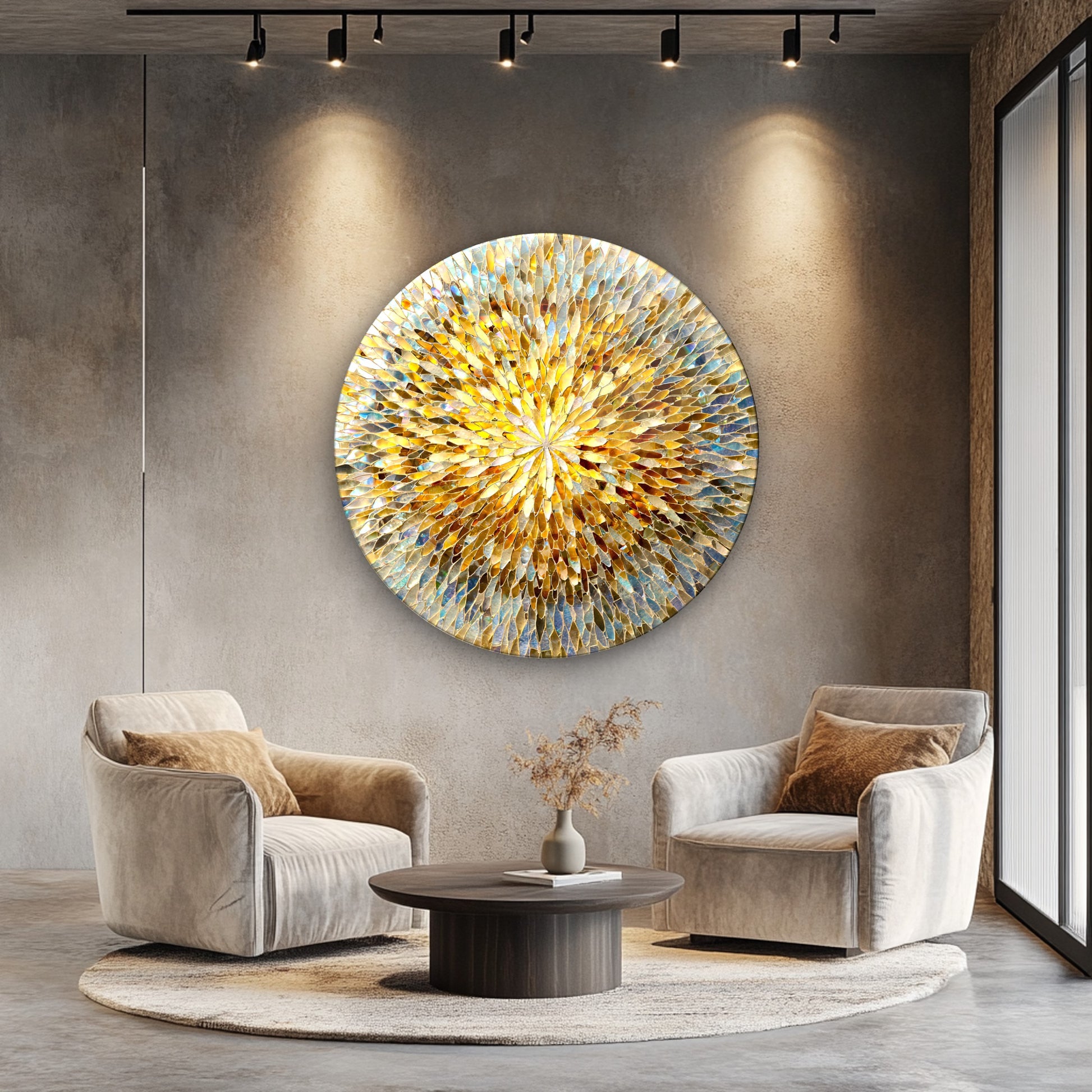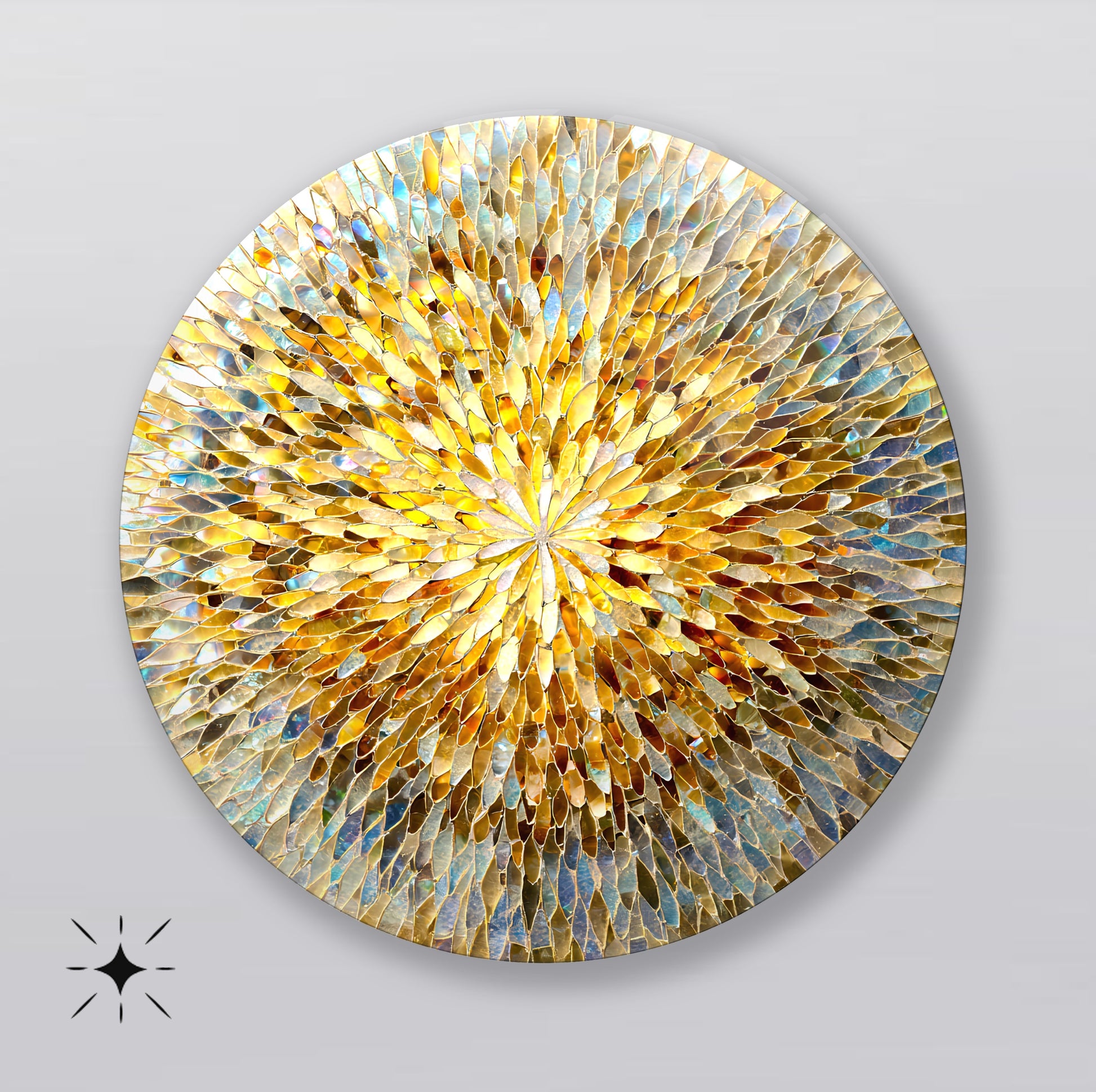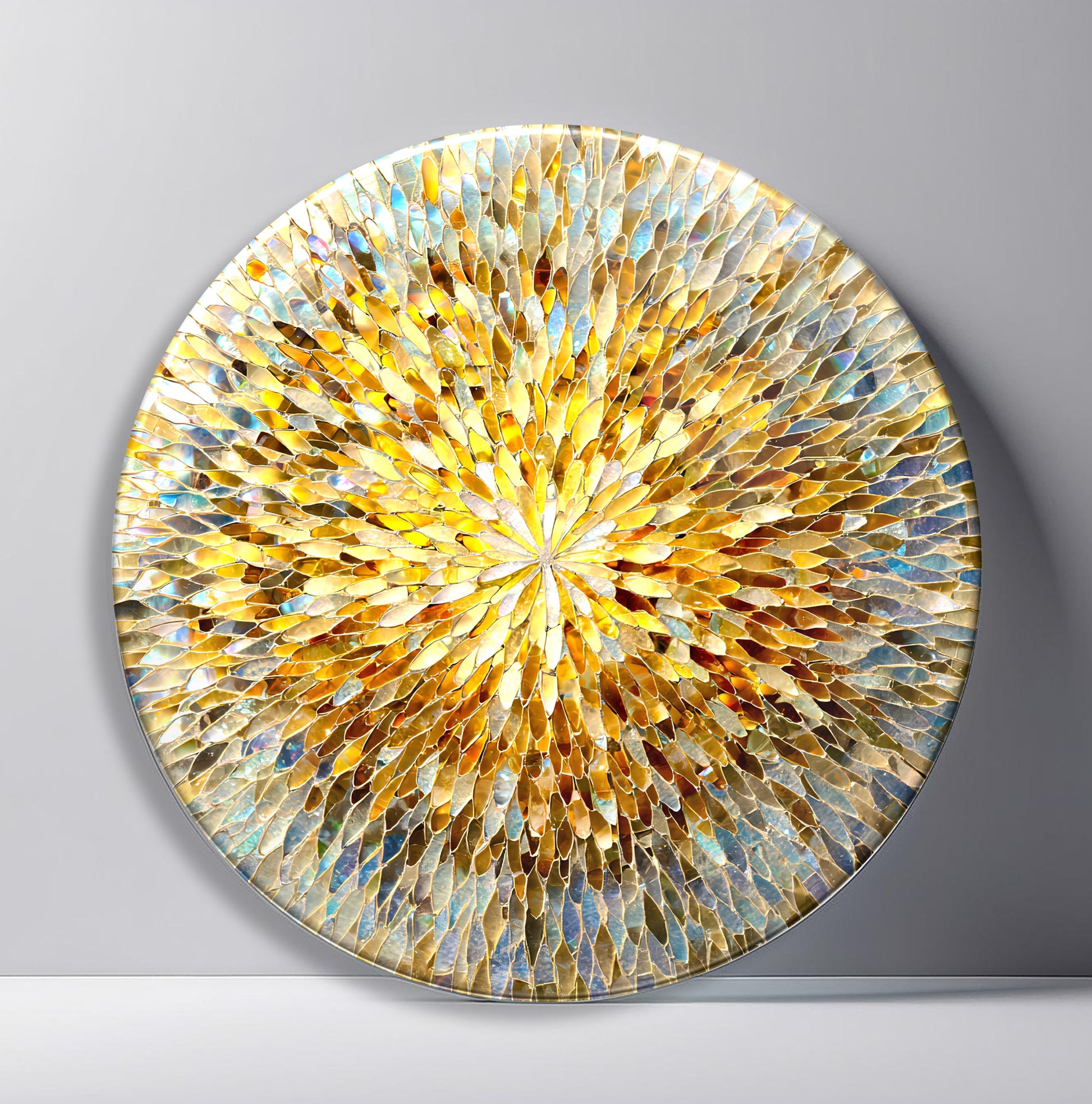 Renkli Soyut Mozaik Desen Yuvarlak Cam Tablo